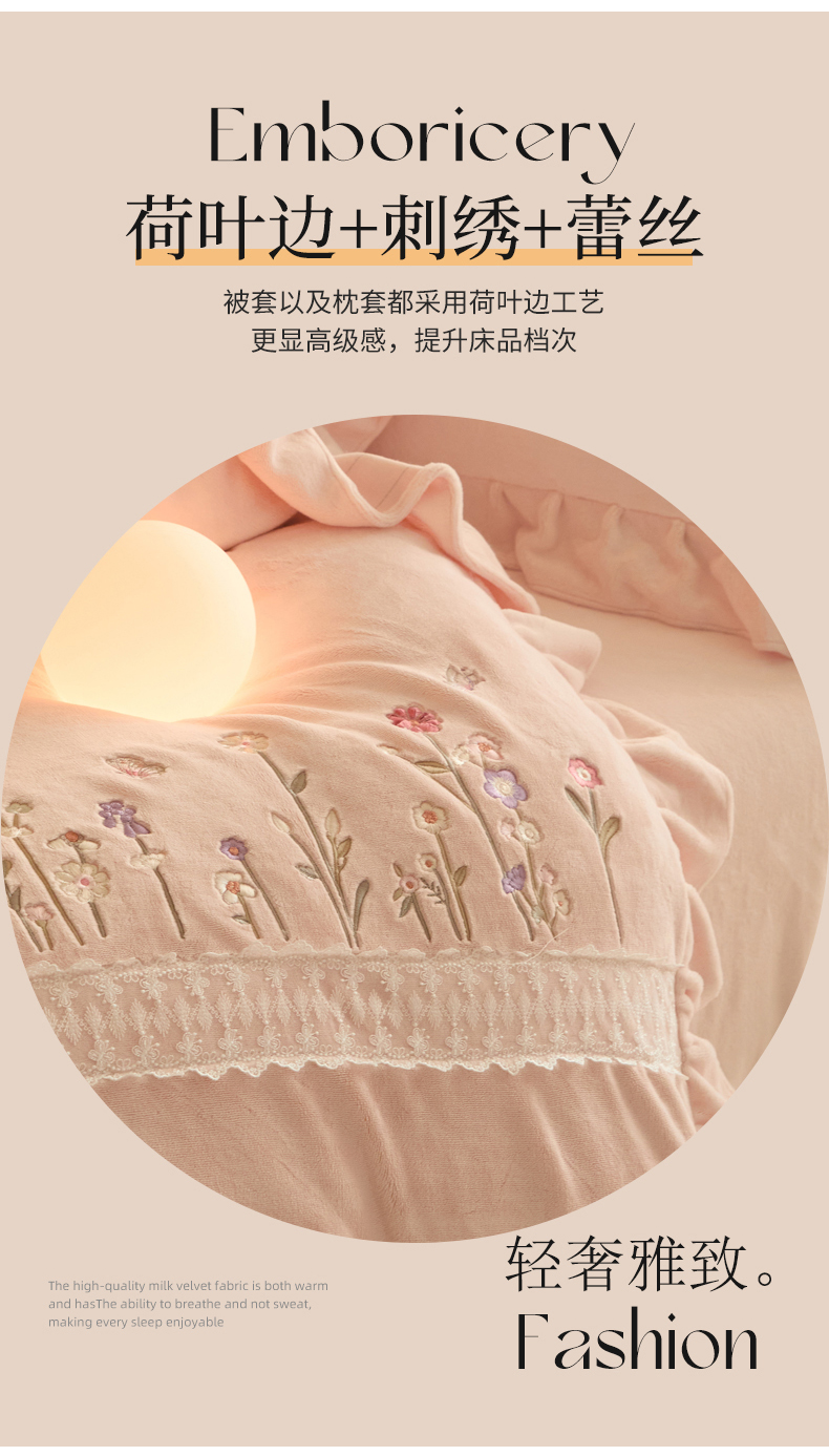(总)艾唯希家纺 2025新款韩版全消光雕花绒花边四件套牛奶绒-铃兰花边系列,铃兰-绿,铃兰-米,铃兰-粉,铃兰-浅紫,铃兰-蓝