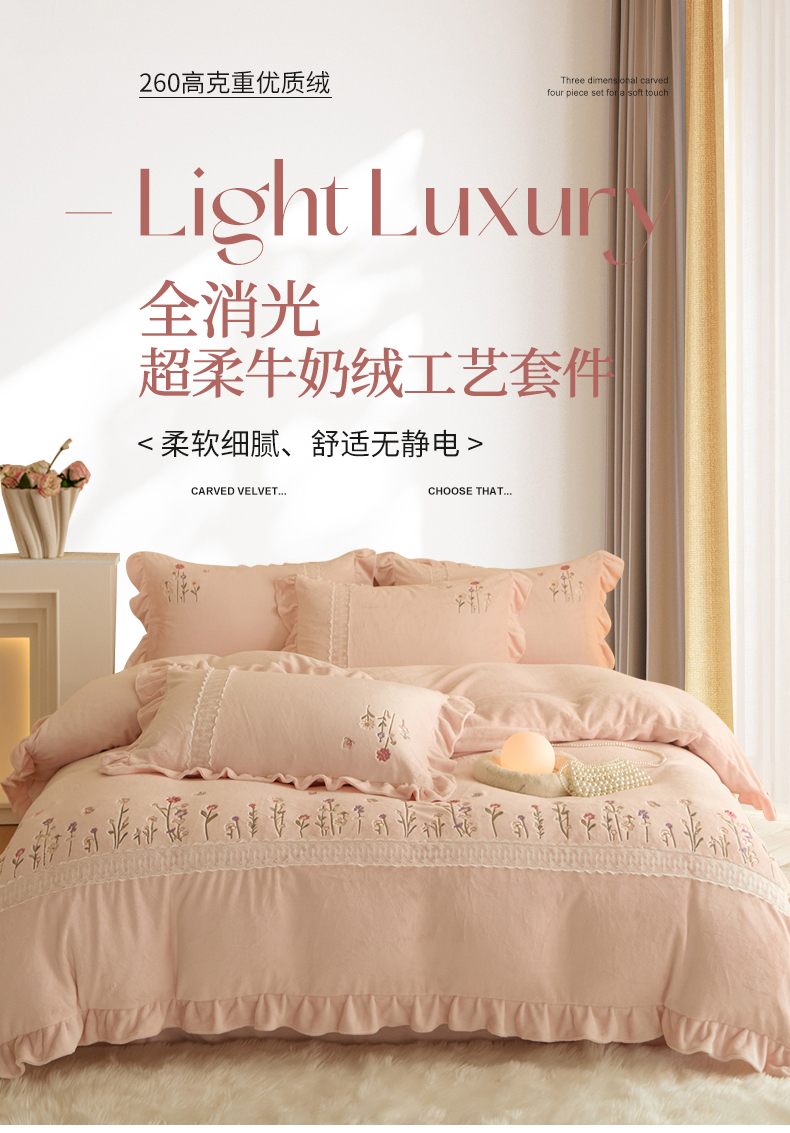 (总)艾唯希家纺 2025新款小兔毛全消光牛奶绒工艺四件套-绒樱桃系列,绒樱桃-粉,绒樱桃-驼