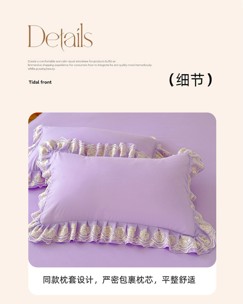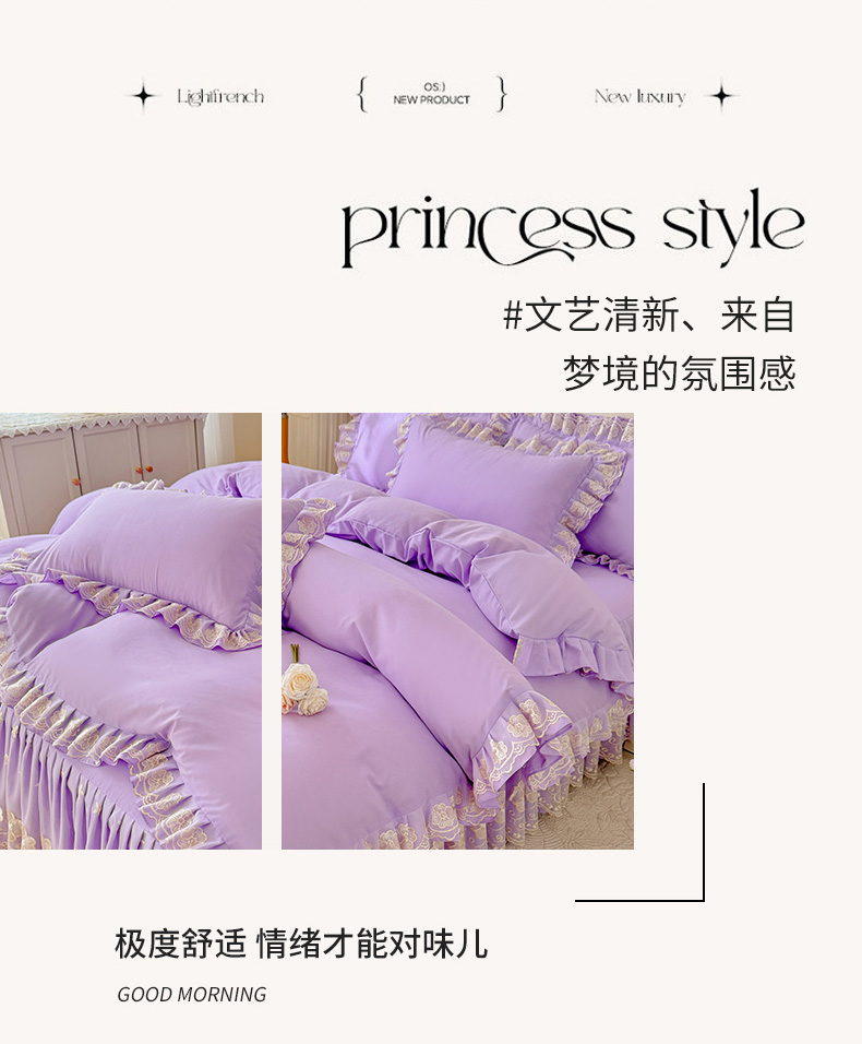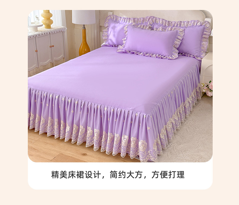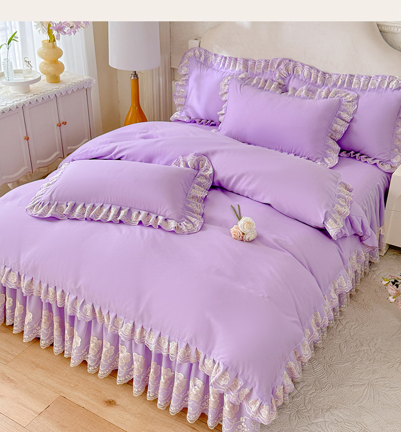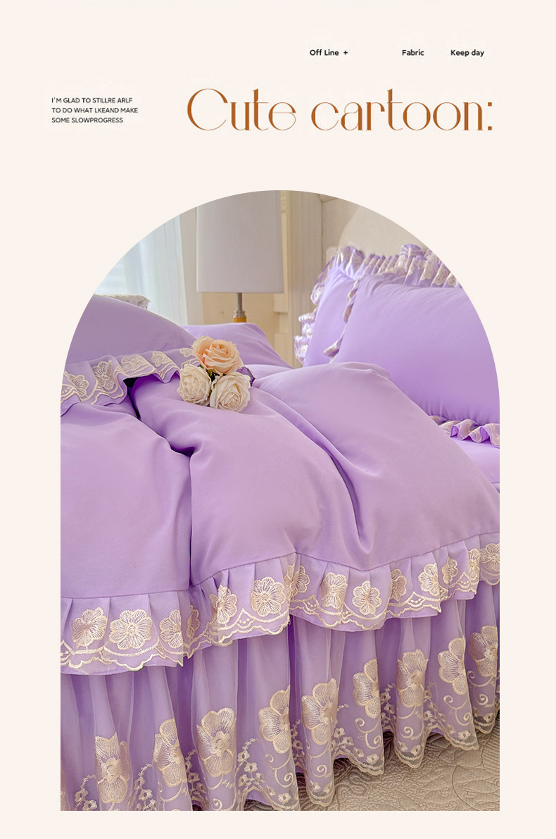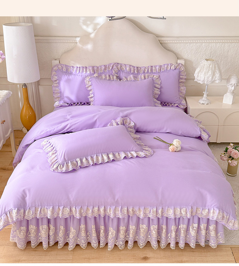 商品名称:后庭寝室 2025新款亲肤花边蕾丝床裙四件套-繁花似锦系列 繁花似锦-浅紫