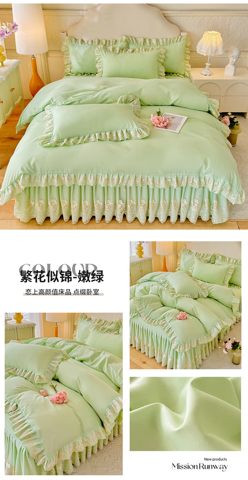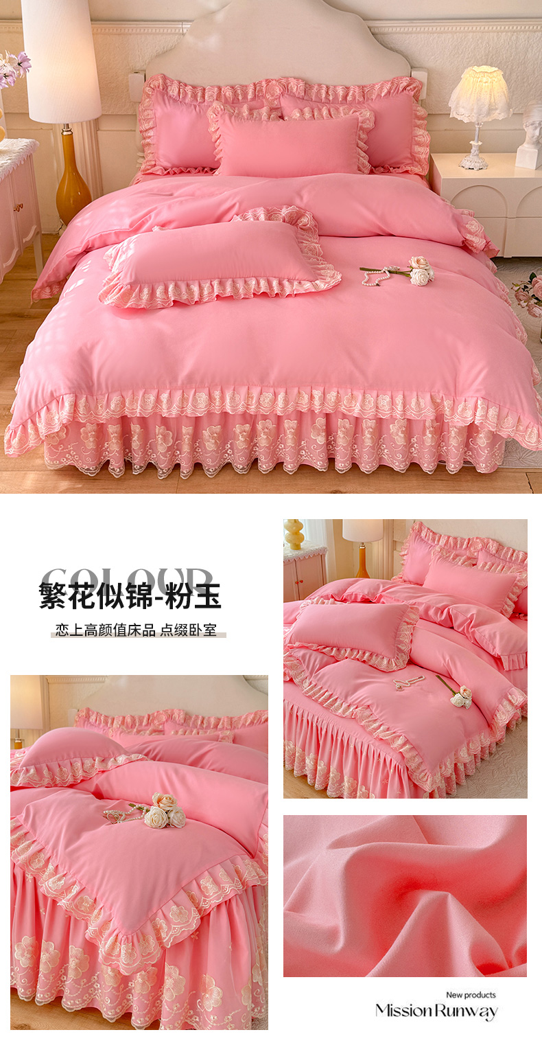 (总)后庭寝室 2025新款韩式花边牛奶绒四件套-香香公主系列,香香公主-嫩玉,香香公主-粉色,香香公主-豆沙,香香公主-粉玉,香香公主-湖蓝,香香公主-暖黄,香香公主-浅灰,香香公主-浅蓝,香香公主-浅紫,香香公主-玉色