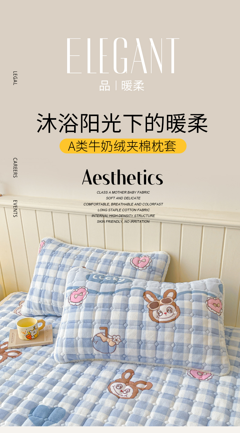 商品名称:LIFE.丽芙 2025秋冬新款A类牛奶绒加厚保暖夹棉枕套-包边款 布布乐园