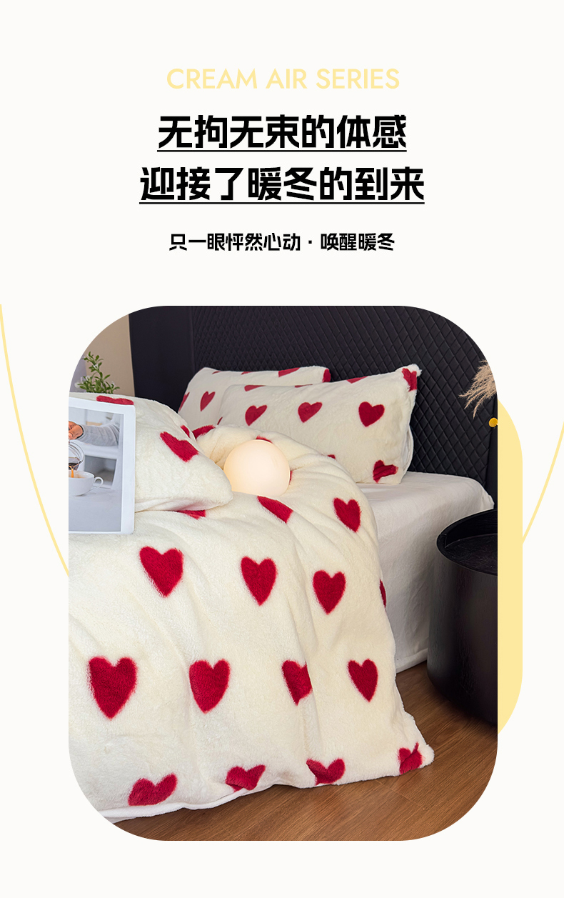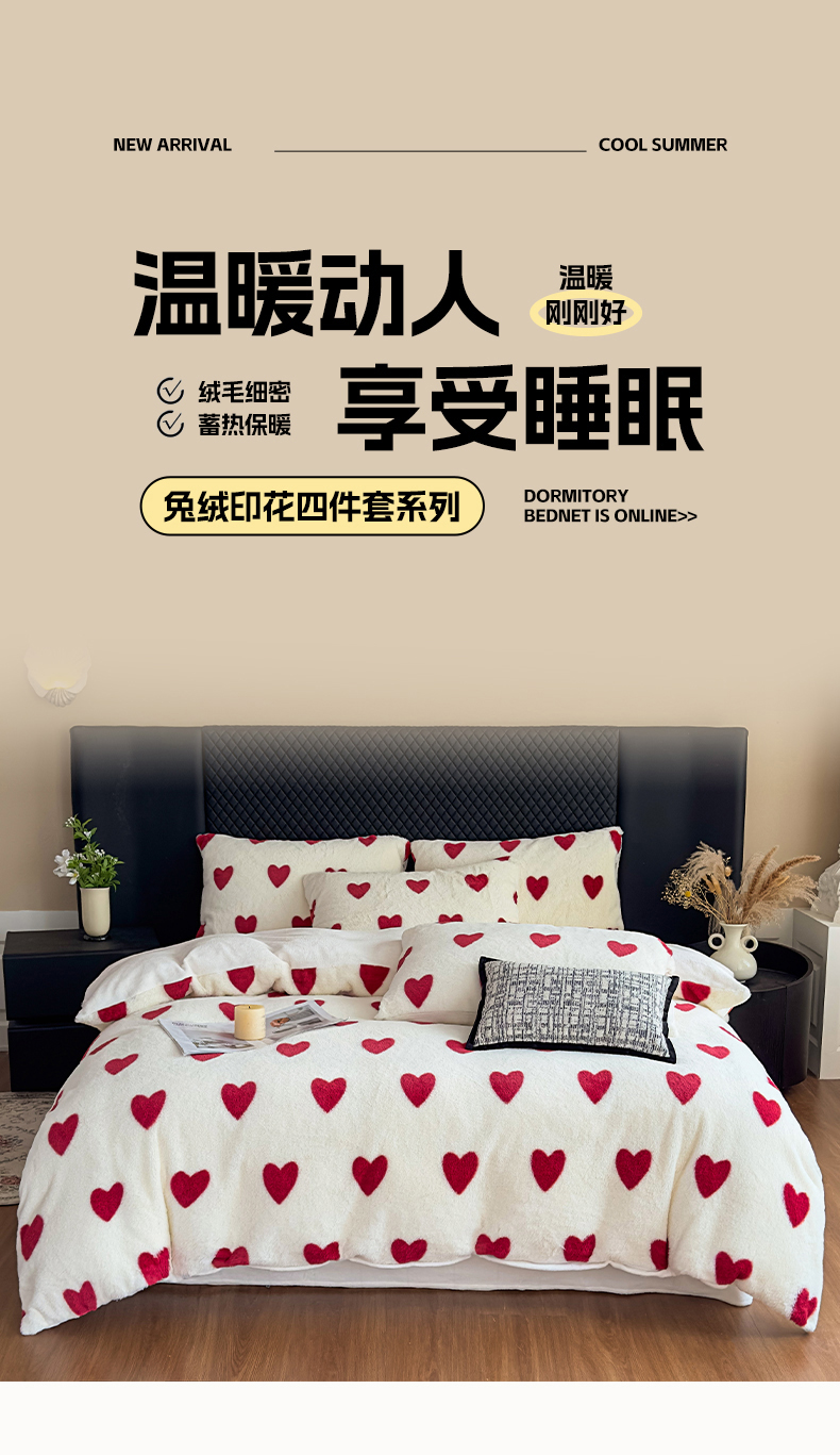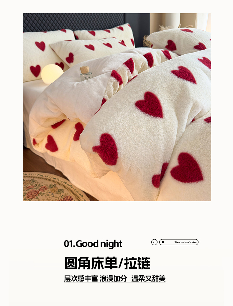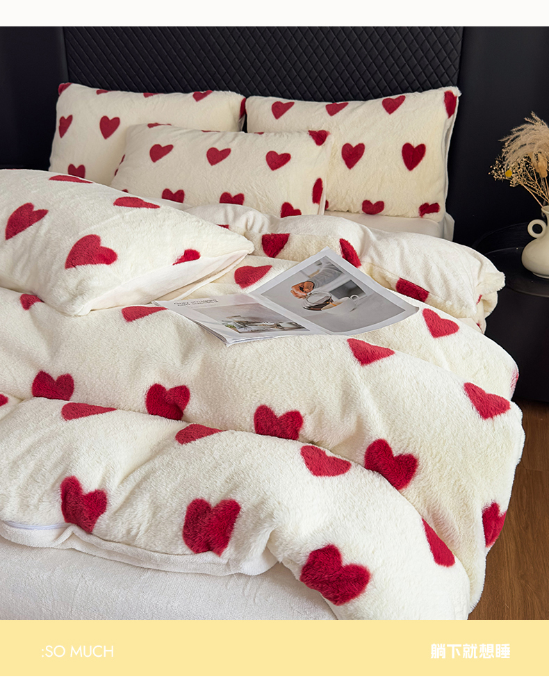 当前位置: 91家纺网 > 商品网购 > 床品套件 > 四件套 > 其它四件套 > 璐维斯 2025 A类舒适兔毛绒印花四件套卡通花卉牛奶绒秋冬保暖床上用品单被套三件套 浪漫爱心