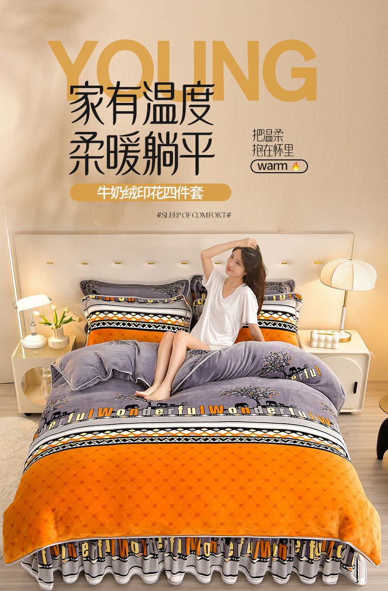 缘莉娜家纺 2025高克重8斤牛奶绒四件套金貂绒法莱绒加厚保暖直播电商爆款 万象之旅