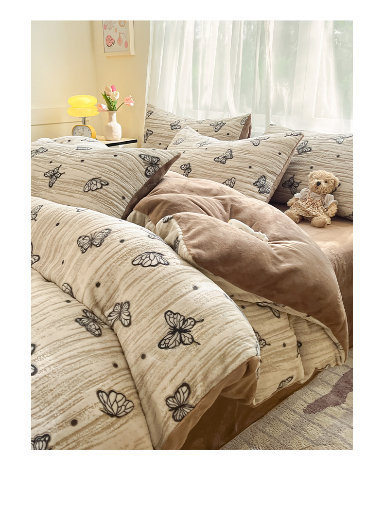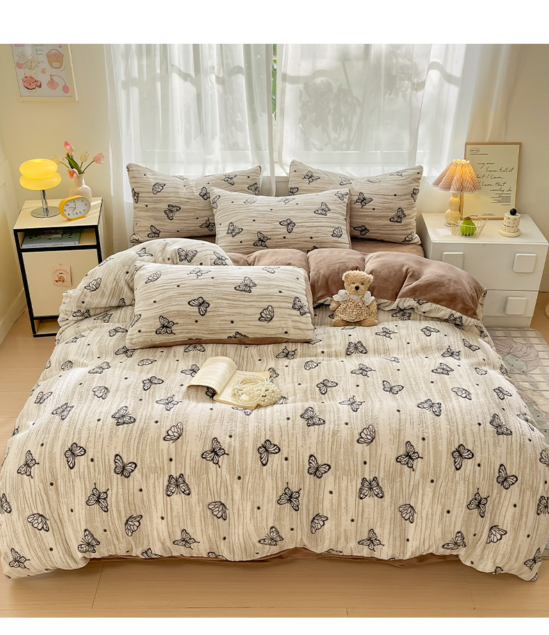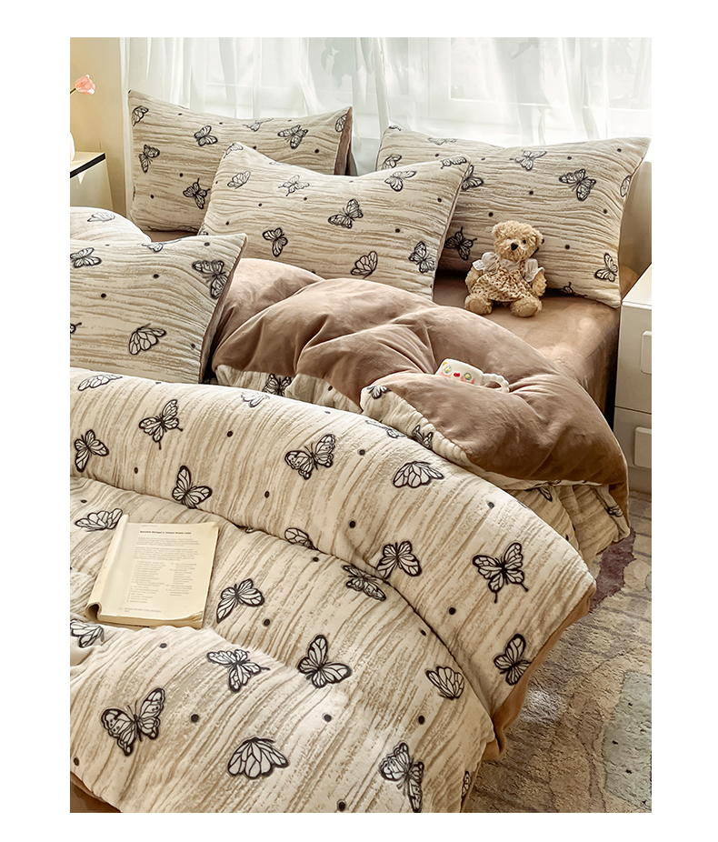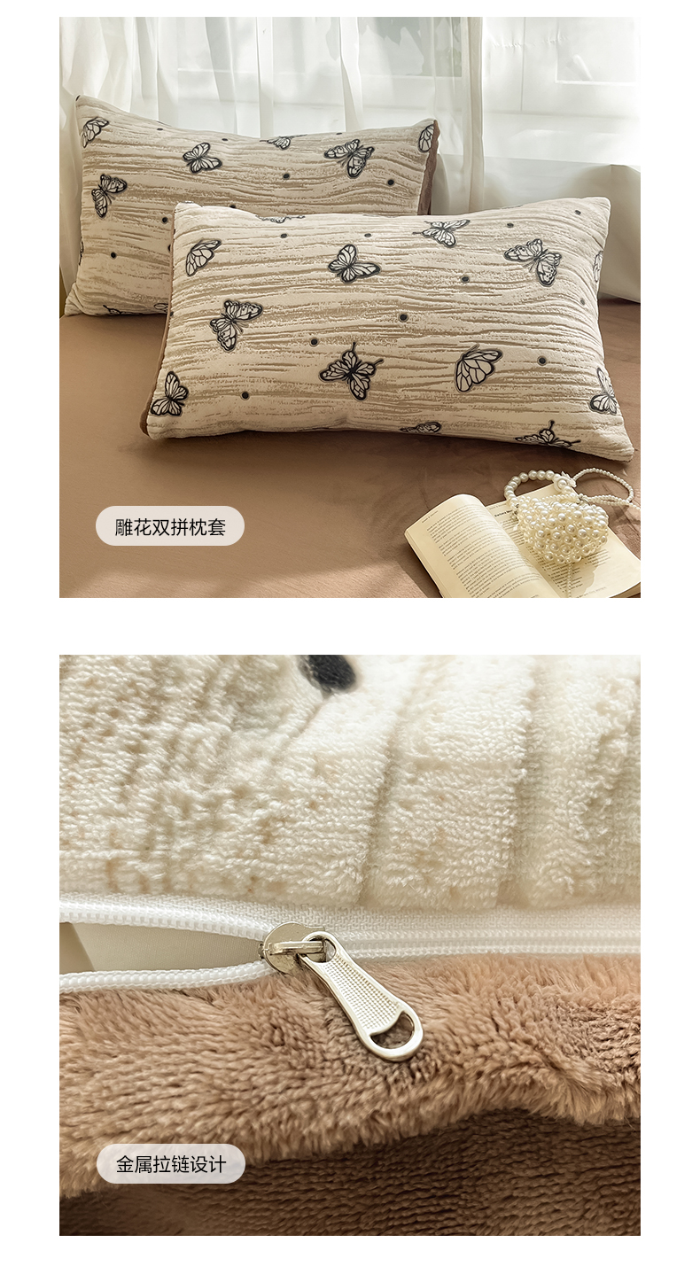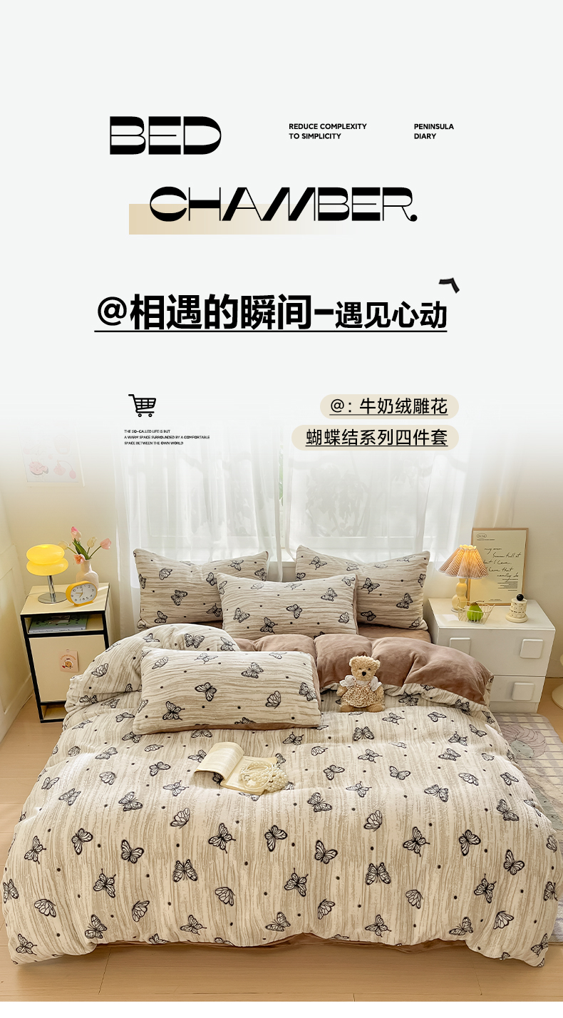 当前位置: 91家纺网 > 商品网购 > 床品套件 > 四件套 > 牛奶绒四件套 > 雅居纺家纺 2025新款雕花牛奶绒四件套-蝴蝶系列 蝶恋-咖