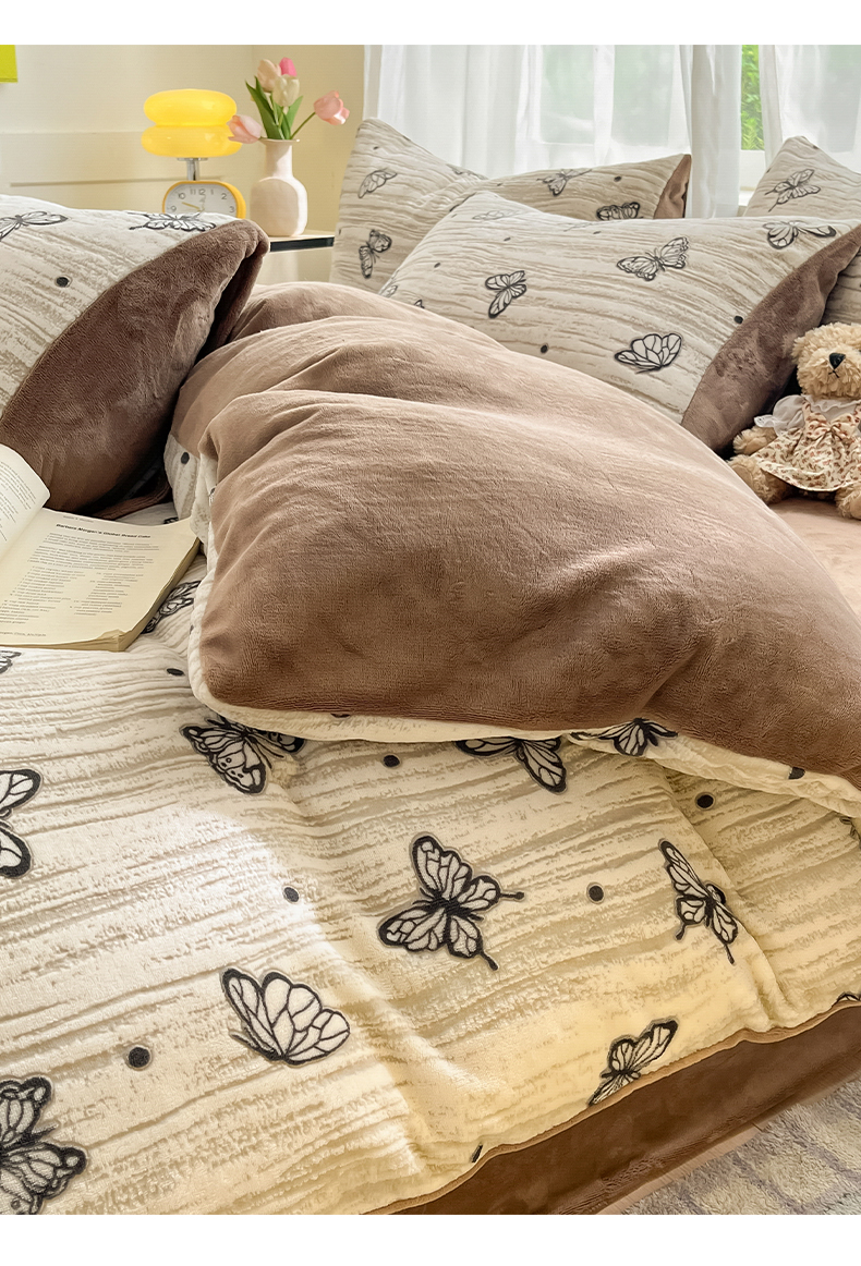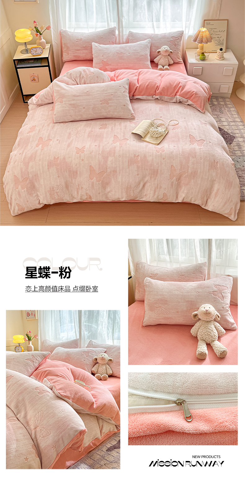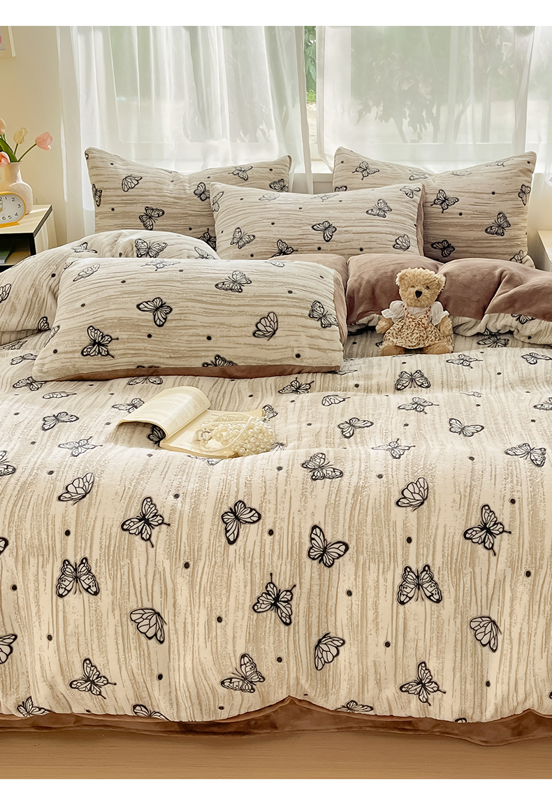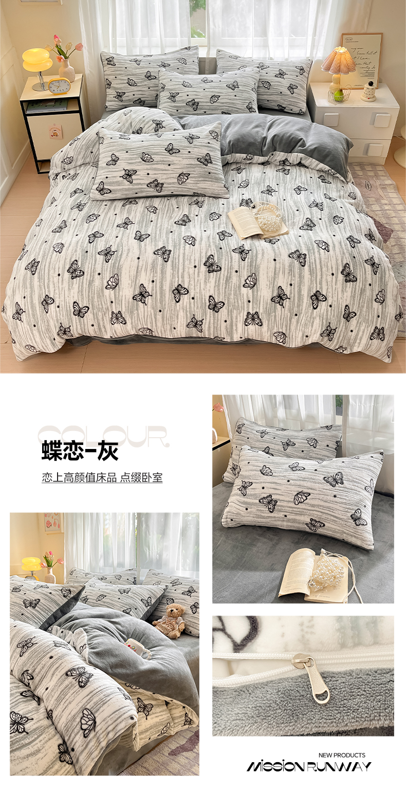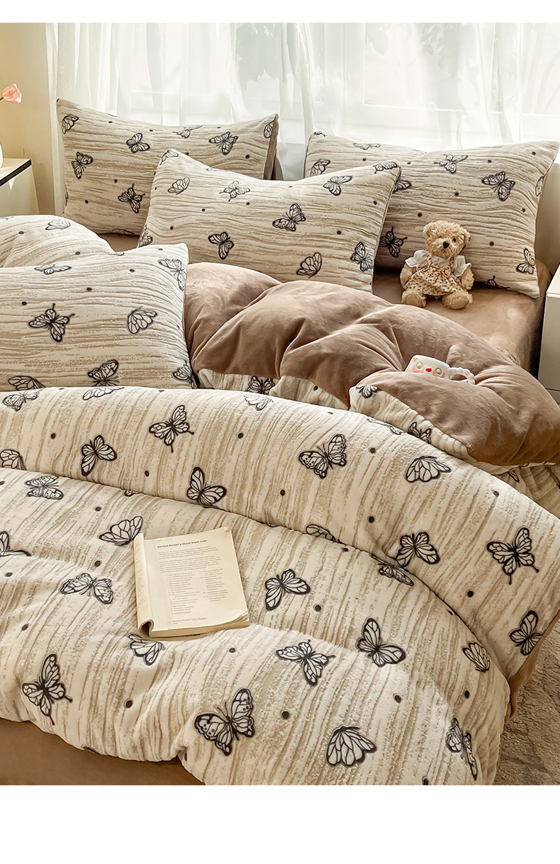 当前位置: 91家纺网 > 商品网购 > 床品套件 > 四件套 > 牛奶绒四件套 > 雅居纺家纺 2025新款雕花牛奶绒四件套-蝴蝶系列 蝶恋-咖