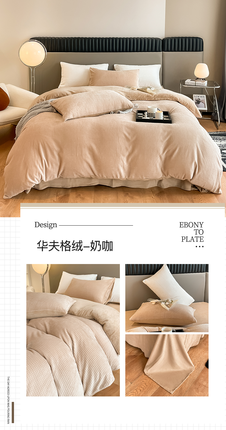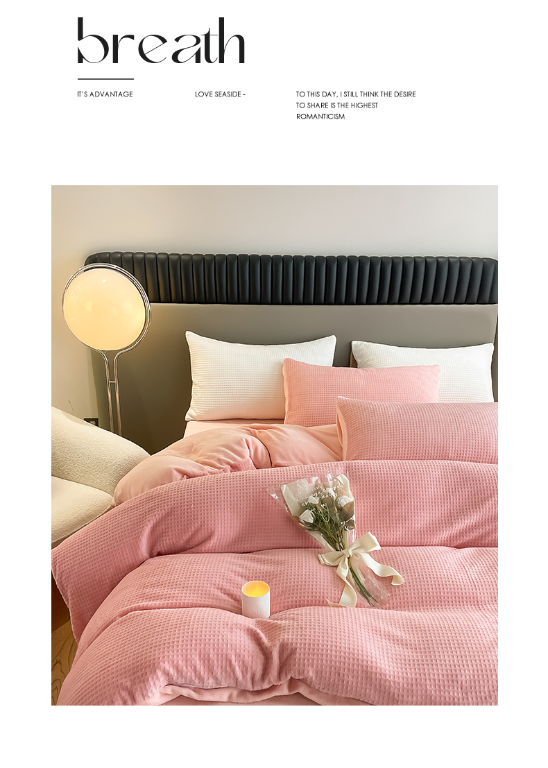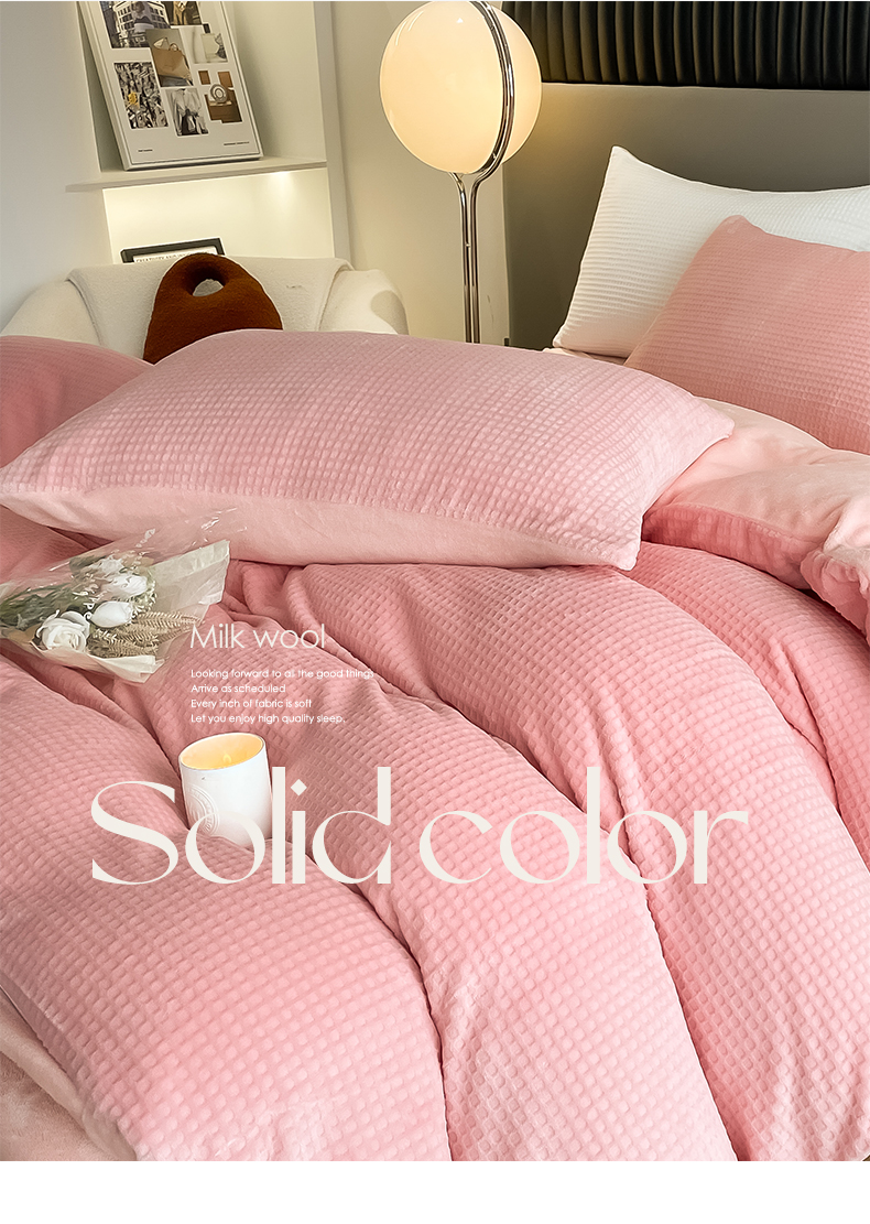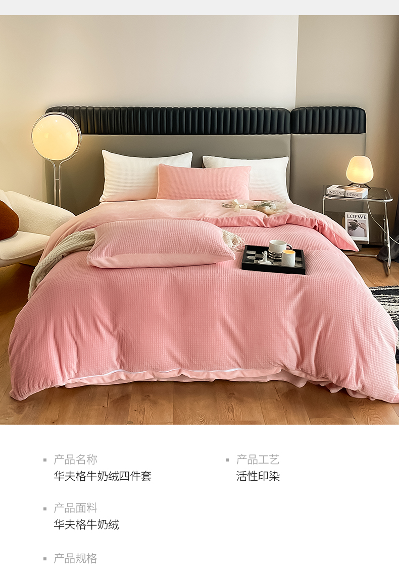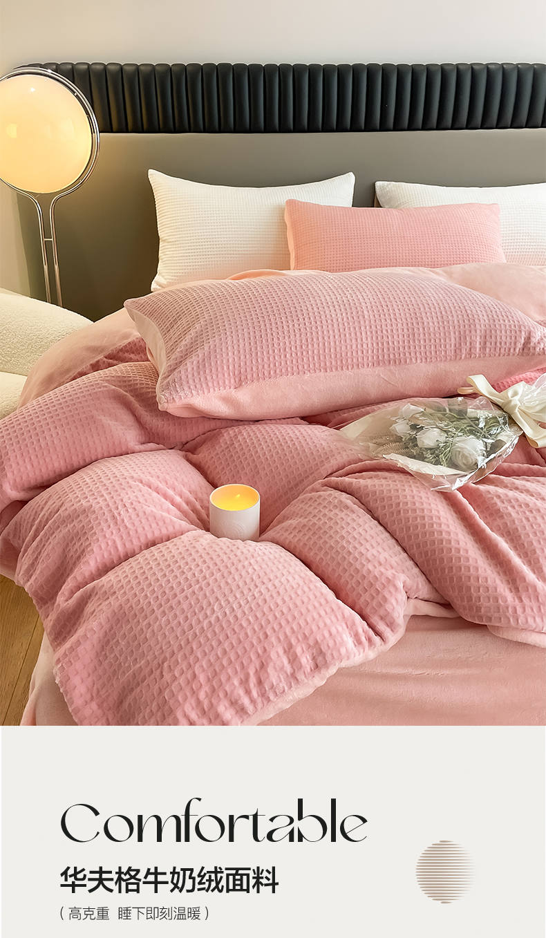 当前位置: 91家纺网 > 商品网购 > 床品套件 > 四件套 > 牛奶绒四件套 > 雅居纺家纺 2025新款雕花绒四件套-简约系列 华夫格绒-奶油粉