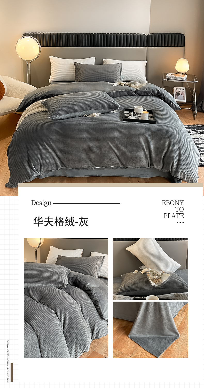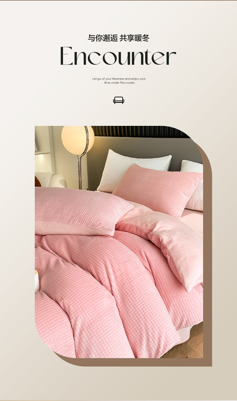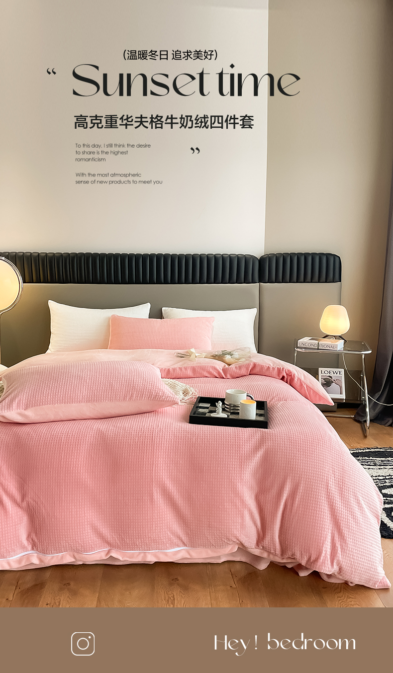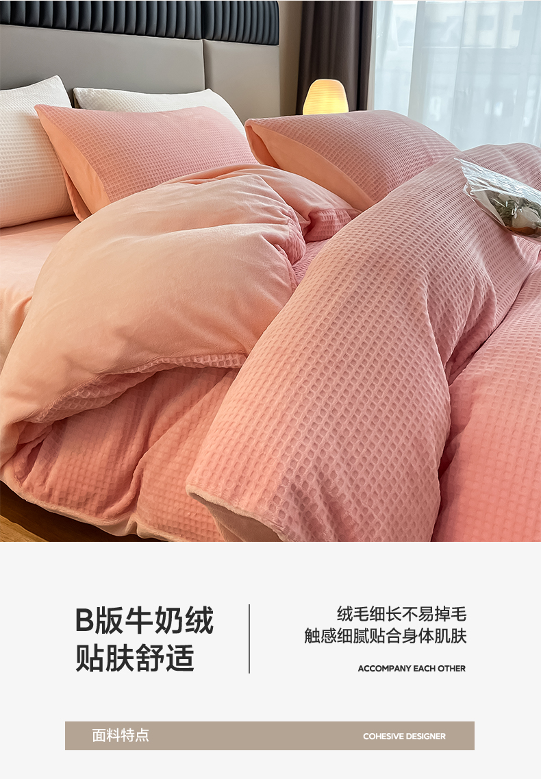 当前位置: 91家纺网 > 商品网购 > 床品套件 > 四件套 > 牛奶绒四件套 > 雅居纺家纺 2025新款雕花绒四件套-简约系列 华夫格绒-奶油粉