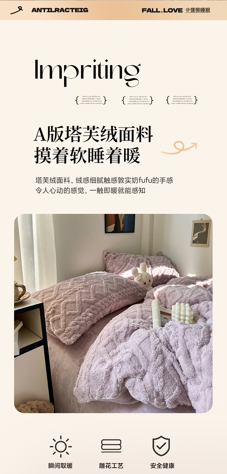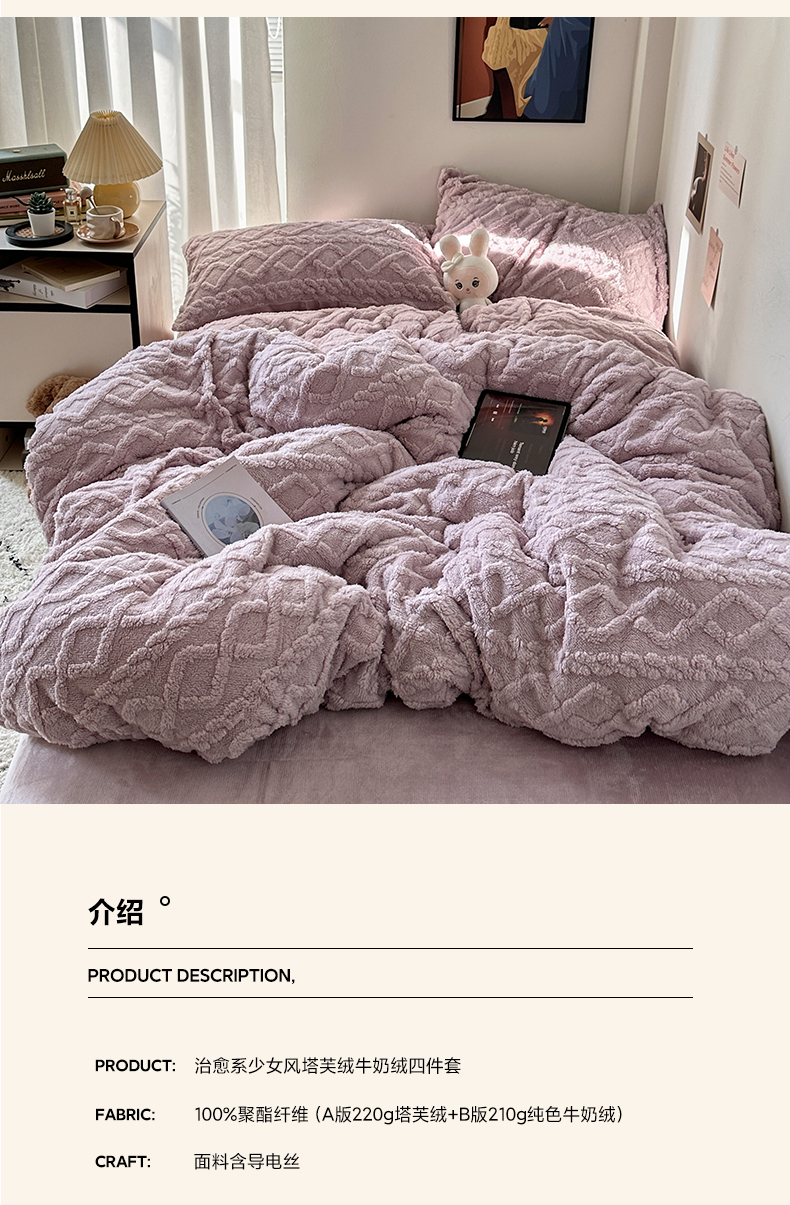 艾咪-Amy ntmy 2025新款治愈系少女风塔芙绒牛奶绒四件套 芋紫