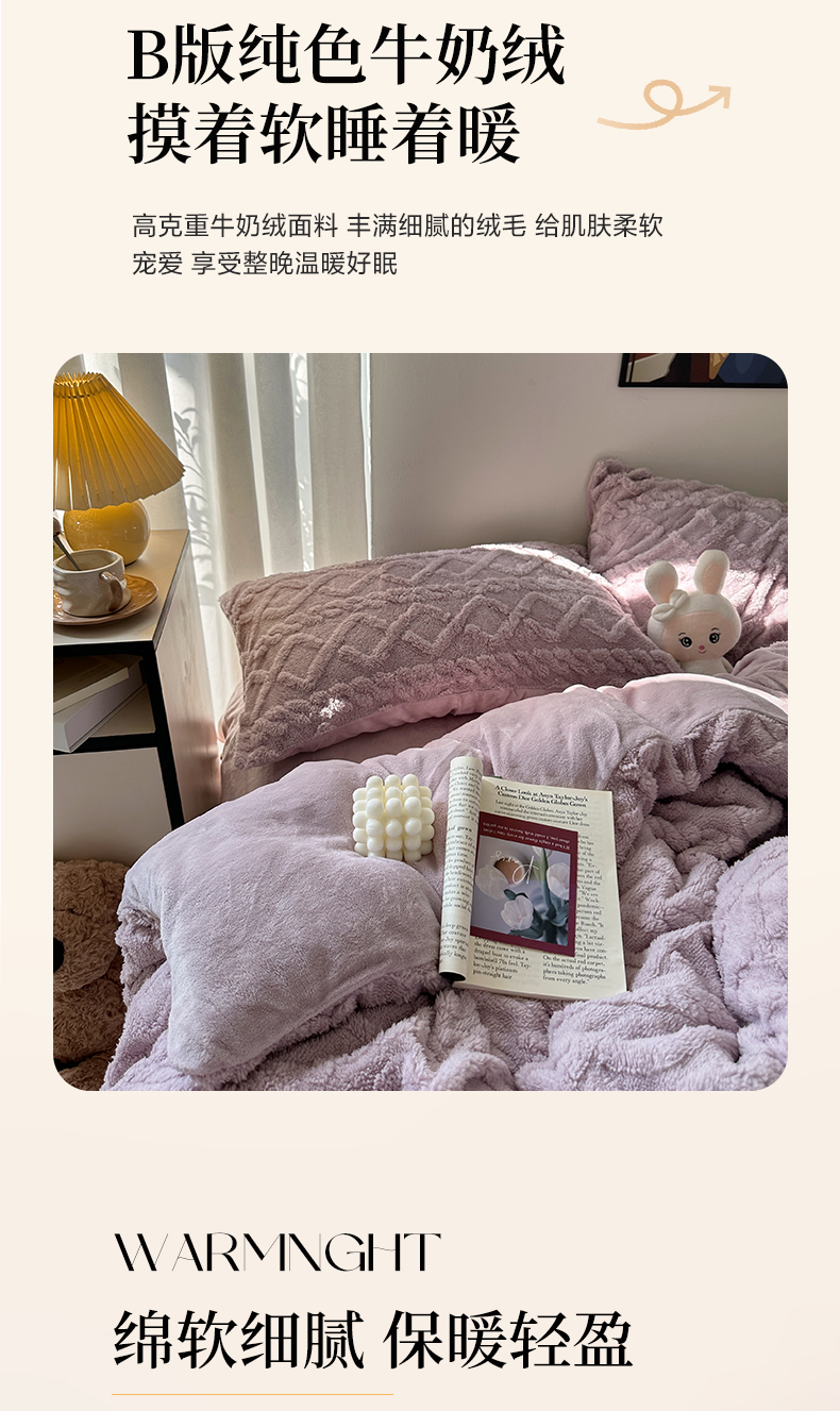 商品名称:艾咪-Amy ntmy 2025新款治愈系少女风塔芙绒牛奶绒四件套 芋紫