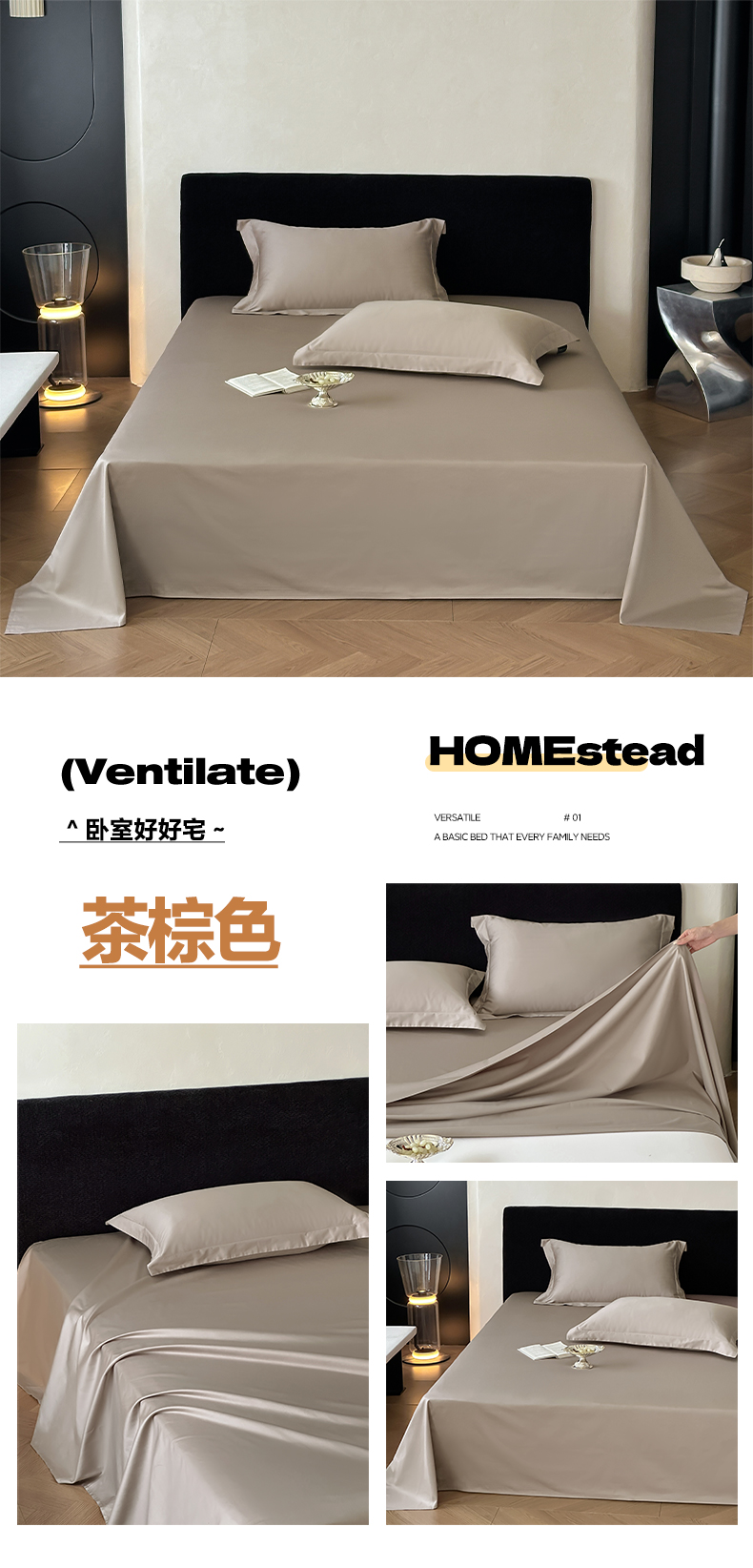 商品名称:三味舒屋 2025新款50s全棉纯棉纯色单床单床单单件-长期主义 长期主义-茶棕色