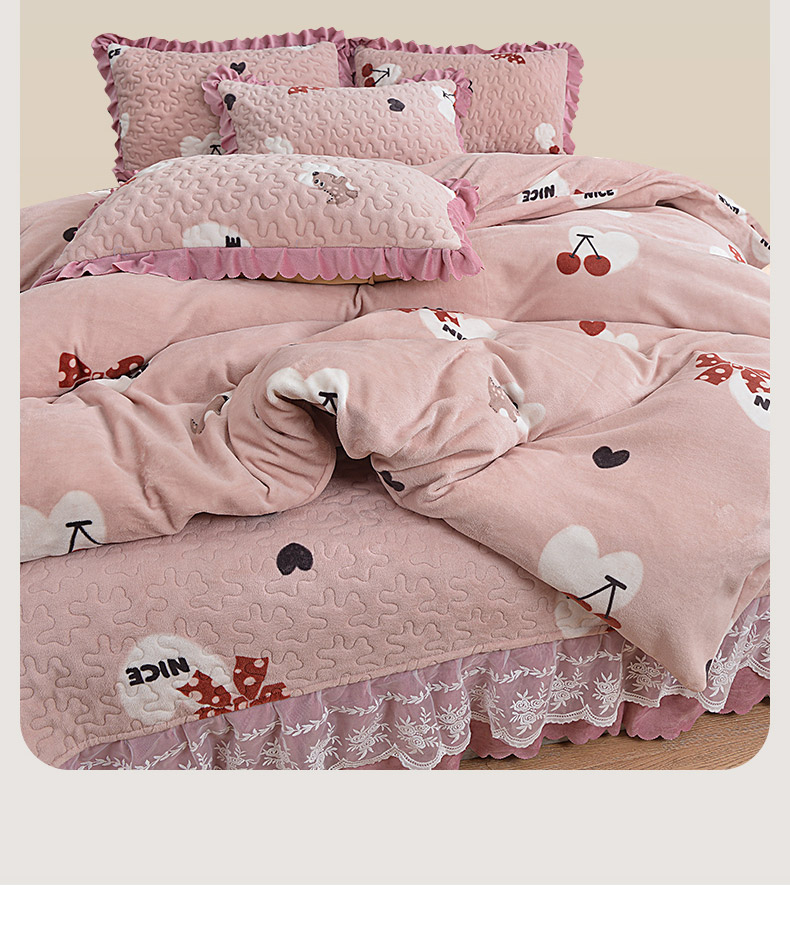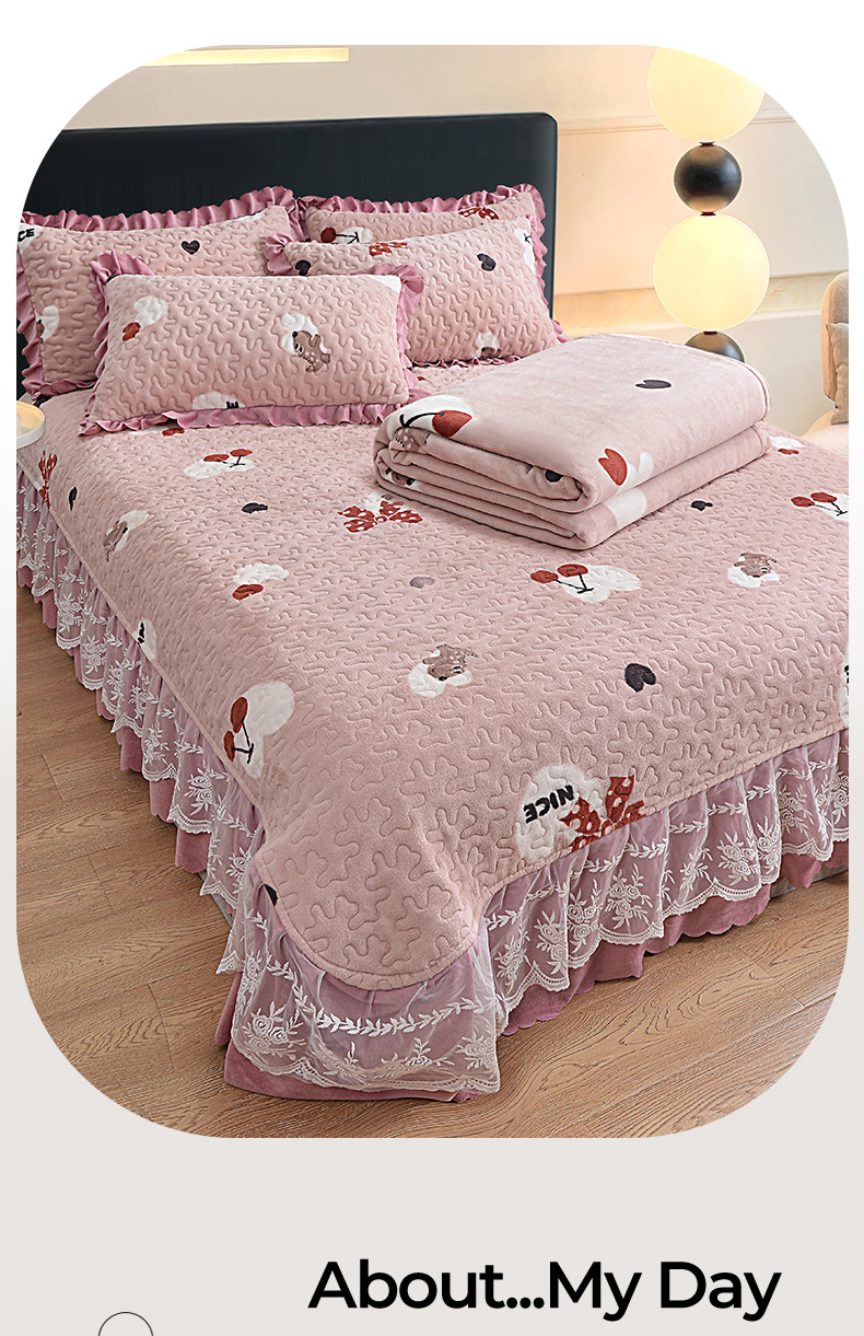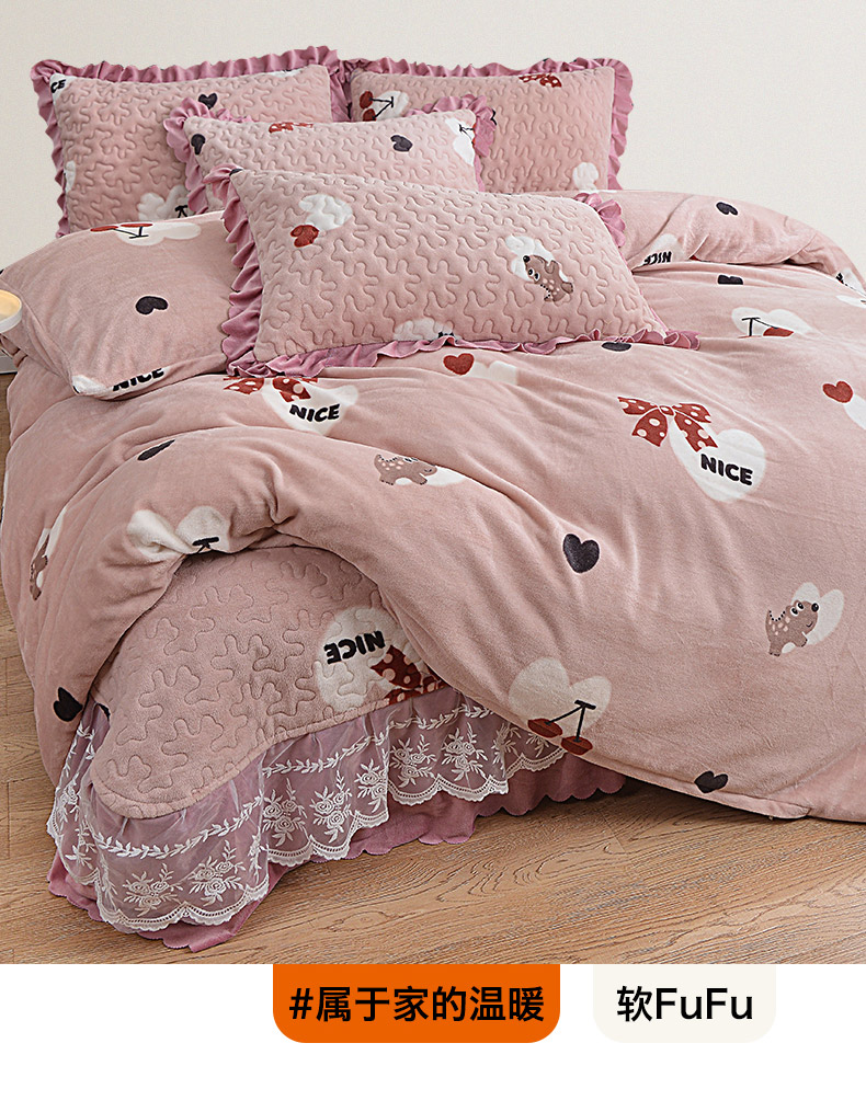 当前位置: 91家纺网 > 商品网购 > 床品套件 > 四件套 > 牛奶绒四件套 > 梦柏家纺 2025新款牛奶绒夹棉床盖四件套 甜心