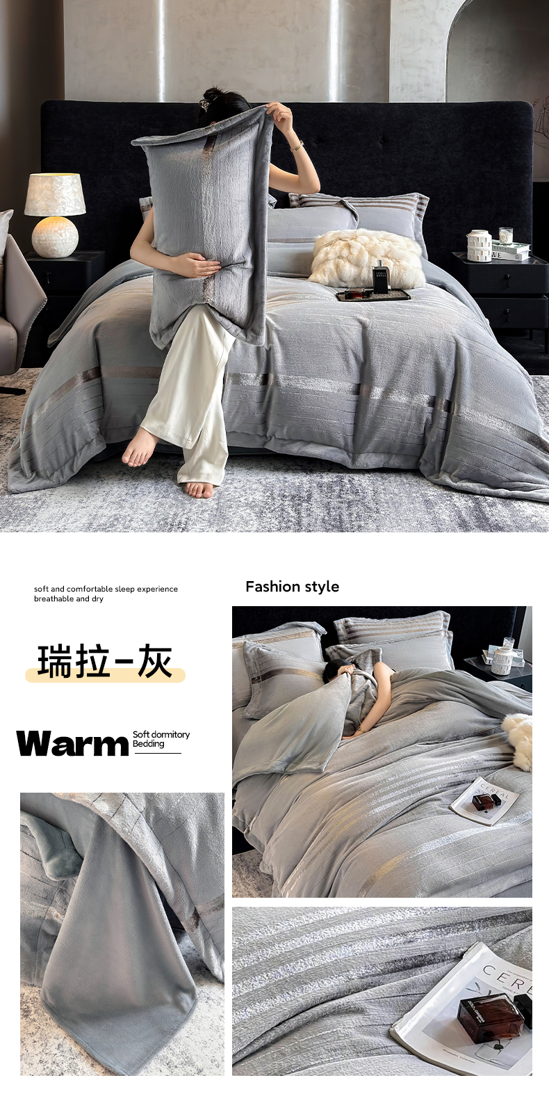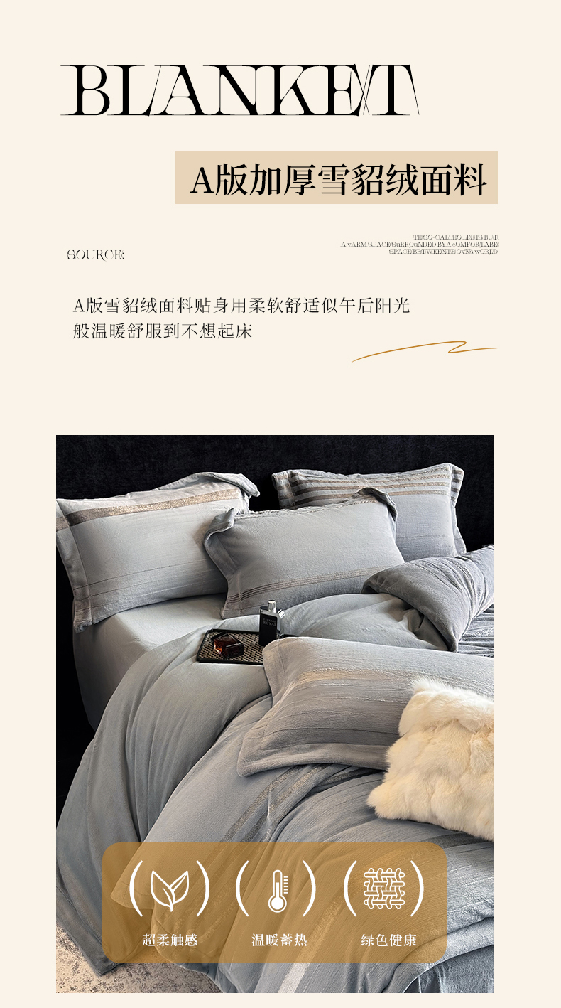 (总)奥汀洛家纺 2025新款高克重托卡斯雪貂绒牛奶绒四件套-瑞拉系列,瑞拉-灰,瑞拉-米,瑞拉-驼