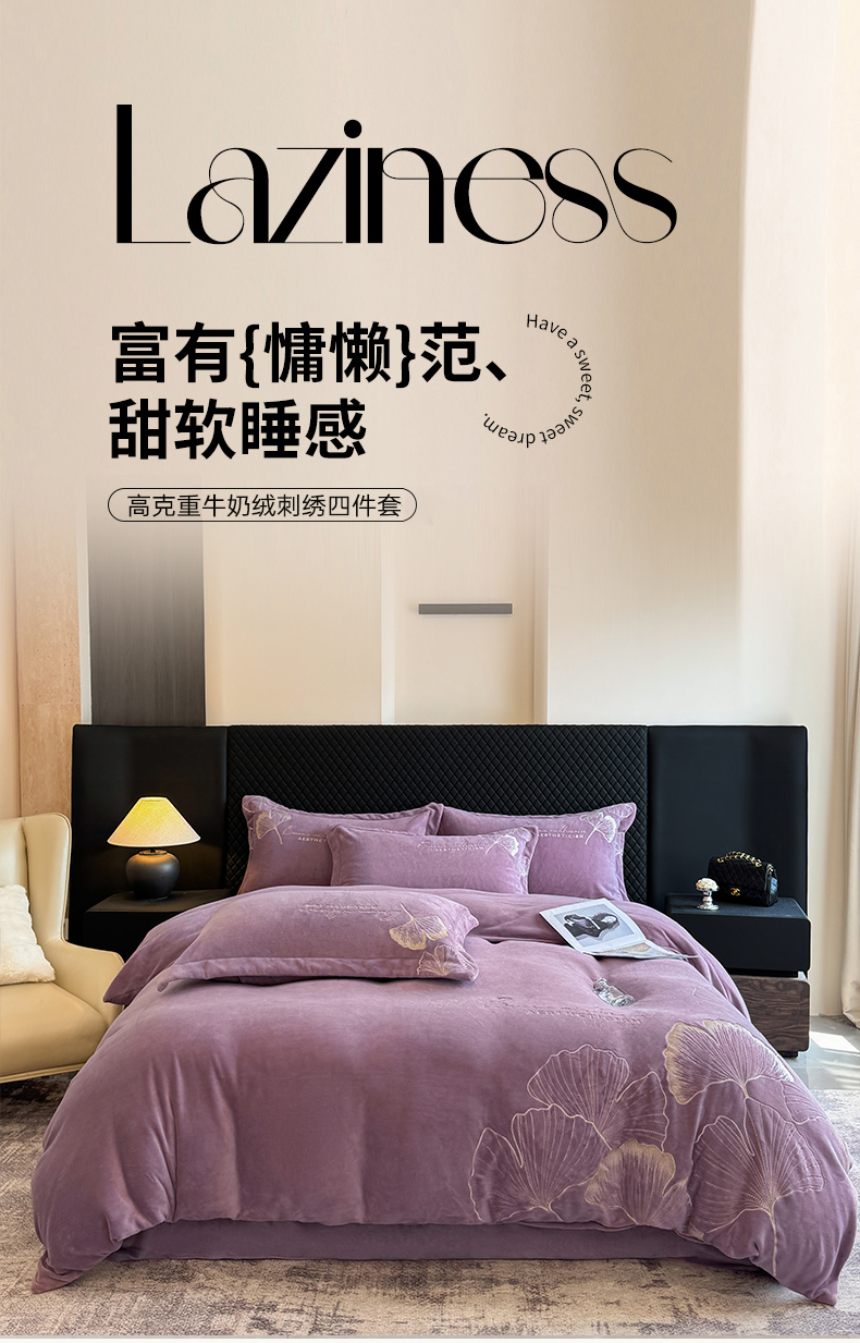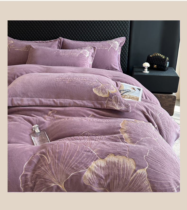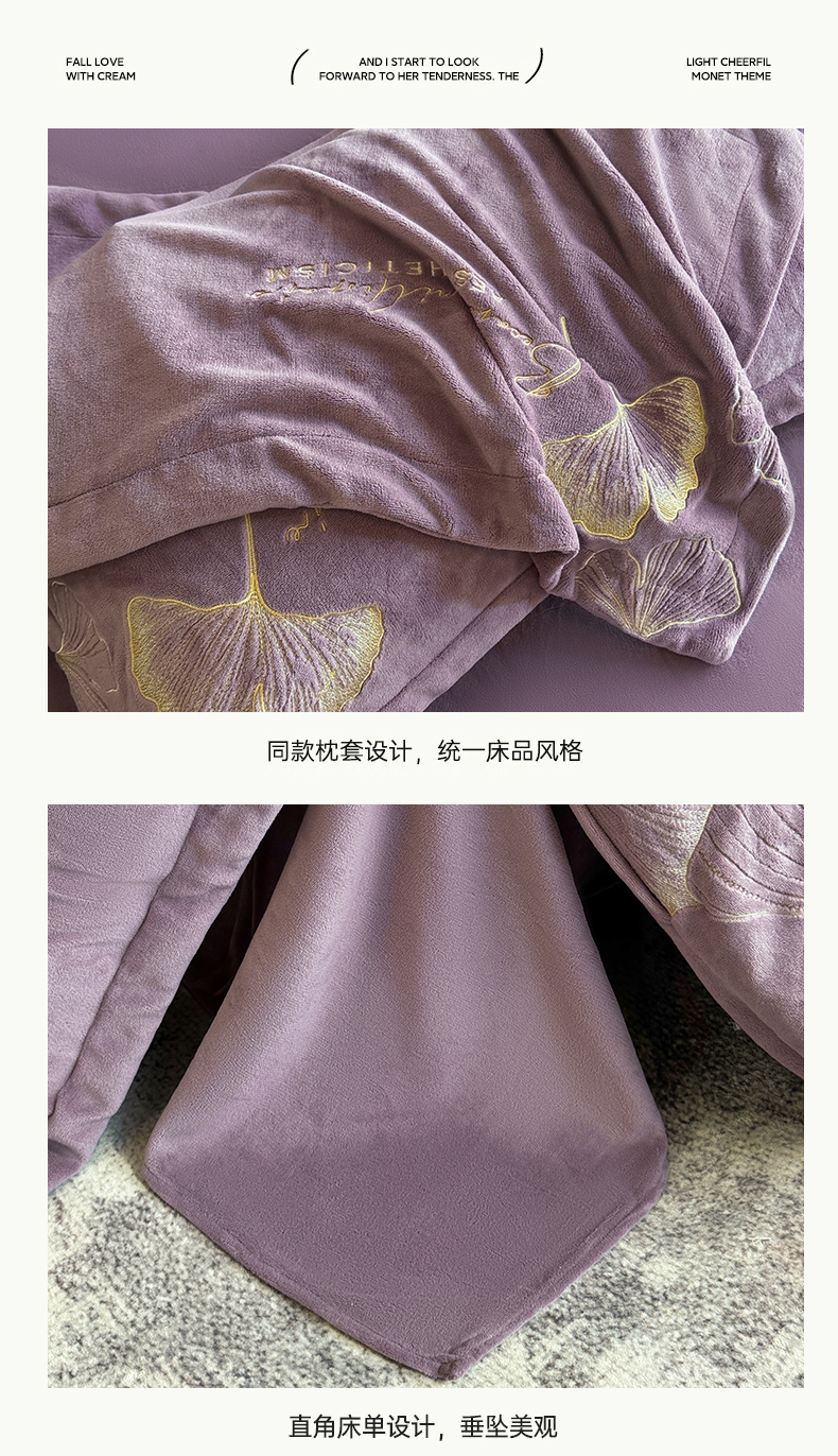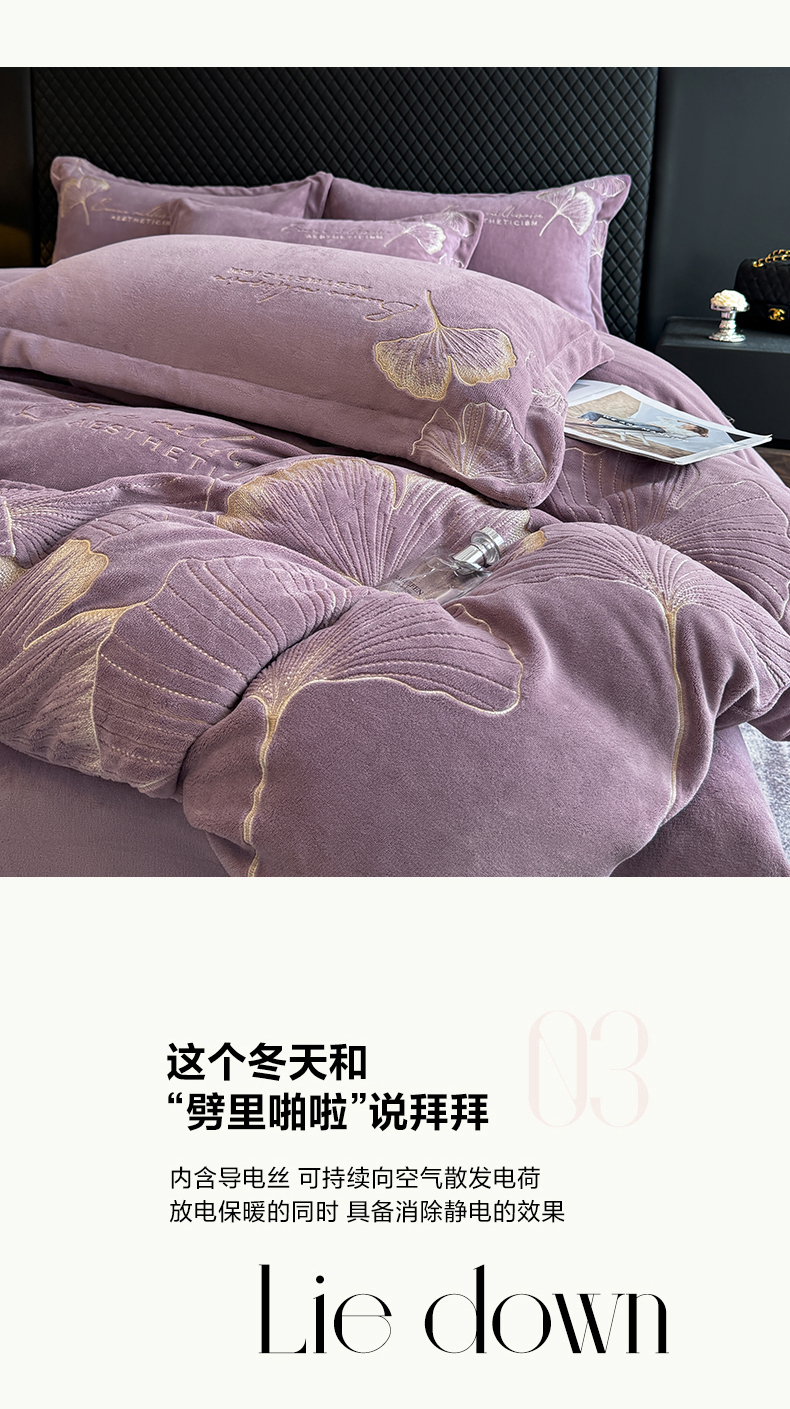 当前位置: 91家纺网 > 商品网购 > 床品套件 > 四件套 > 牛奶绒四件套 > 金牛座家纺 2025新款金牛座加厚轻奢牛奶绒刺绣四件套 杏福美满-暗紫