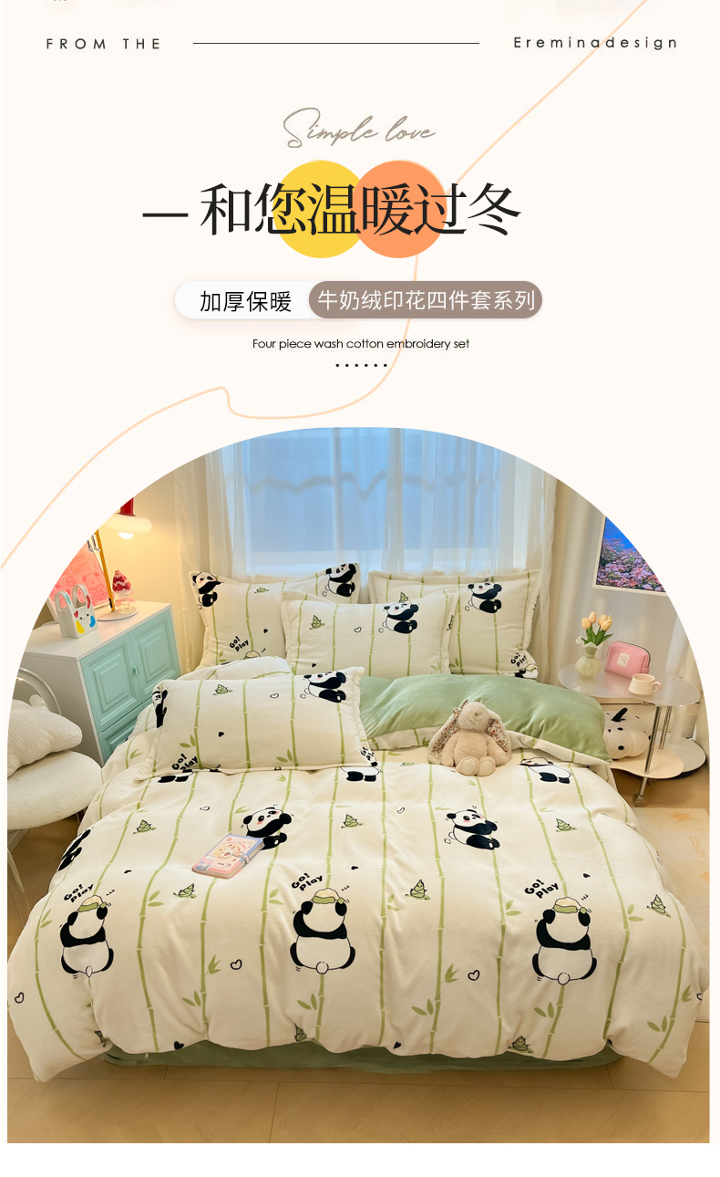 当前位置: 91家纺网 > 商品网购 > 床品套件 > 四件套 > 牛奶绒四件套 > 慕尚家纺 2025新款高克重田园花卉类加厚牛奶绒3.5kg四件套 快乐熊猫