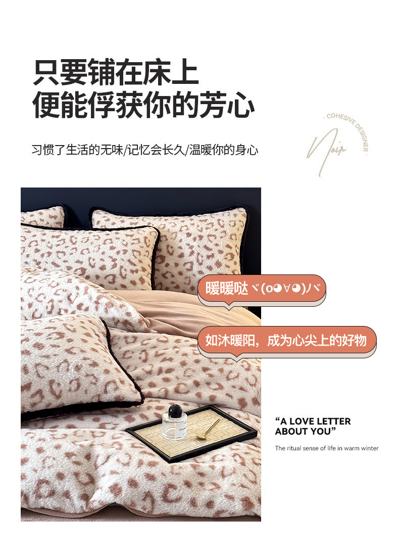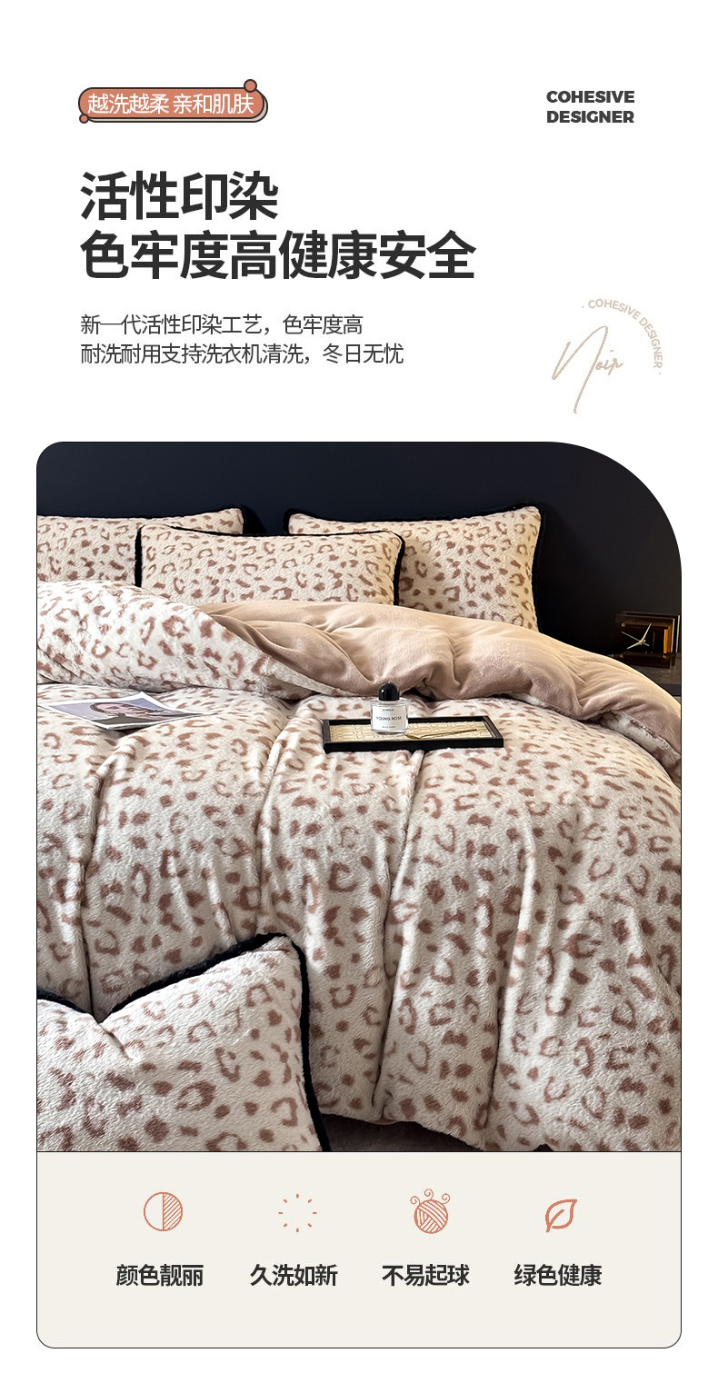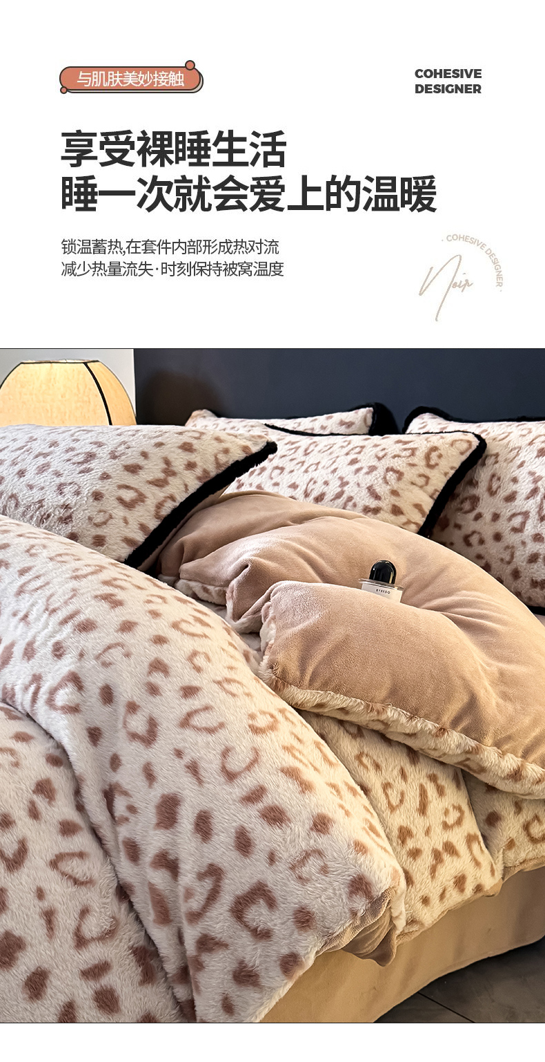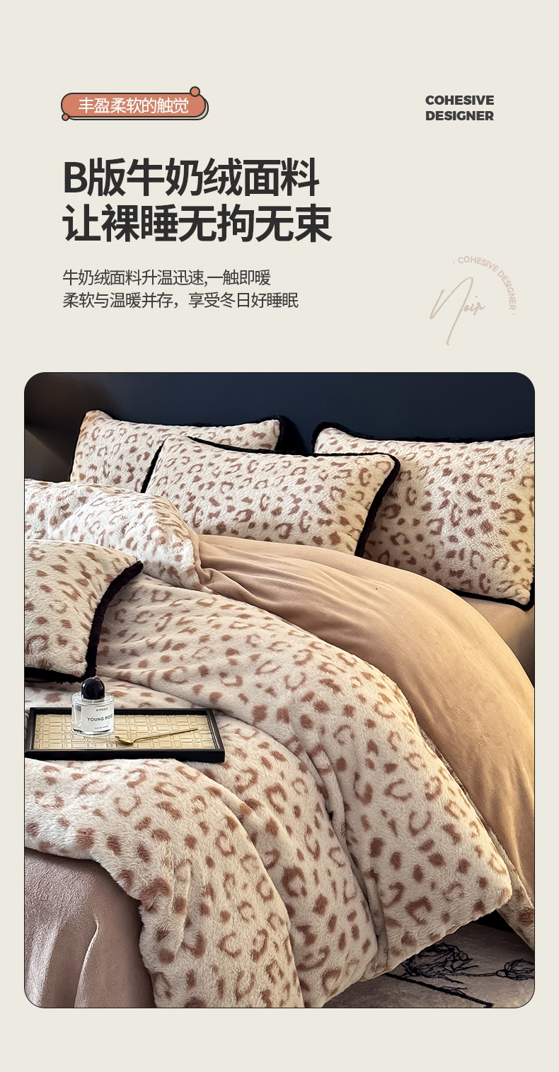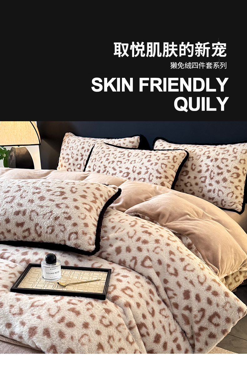 当前位置: 91家纺网 > 商品网购 > 床品套件 > 四件套 > 牛奶绒四件套 > KA家纺 2025新款秋冬兔毛边工艺款兔毛牛奶绒四件套 豹闪闪