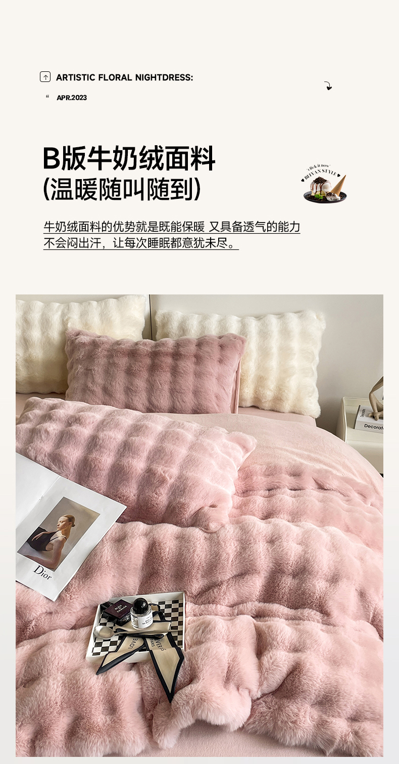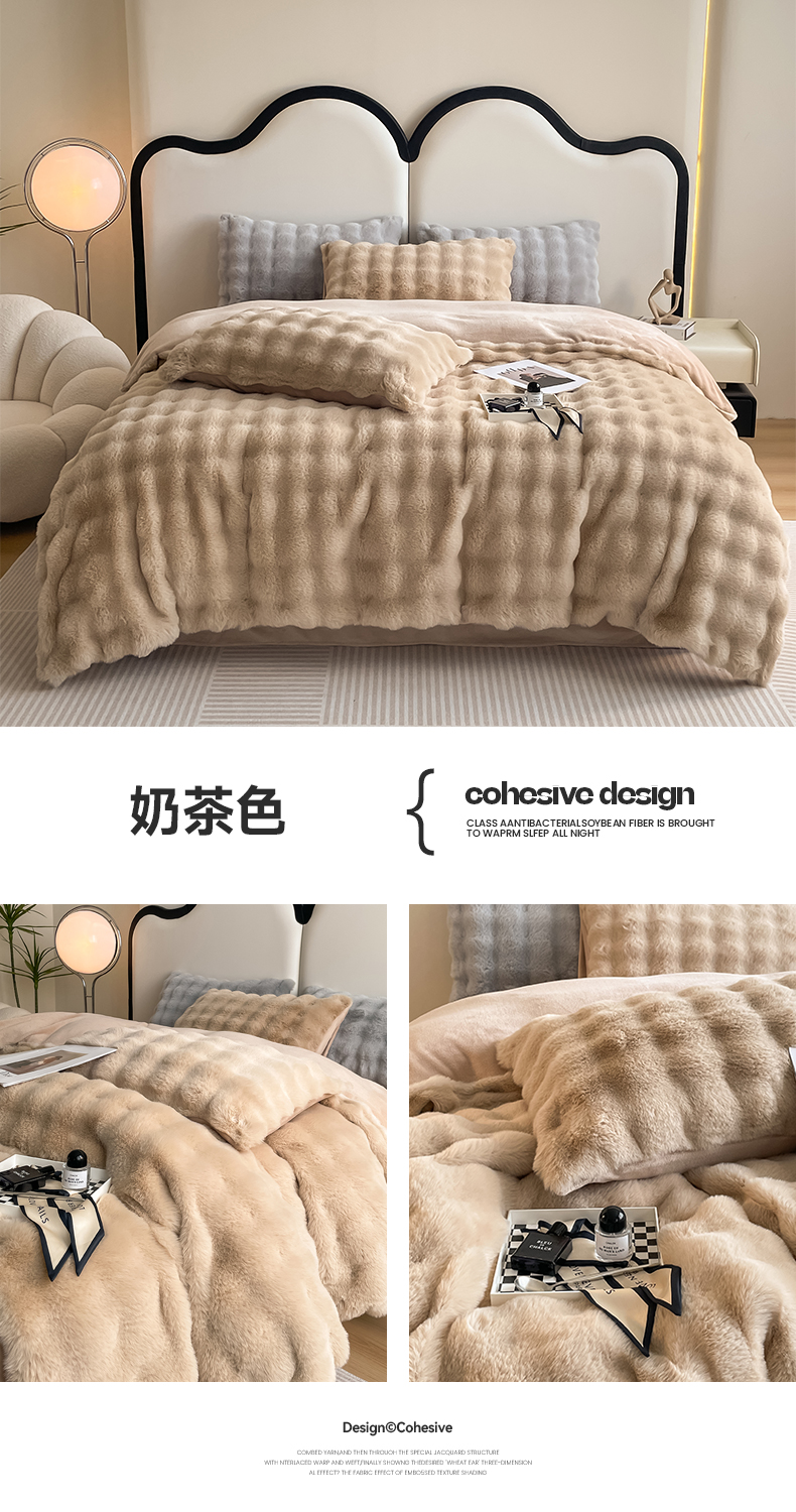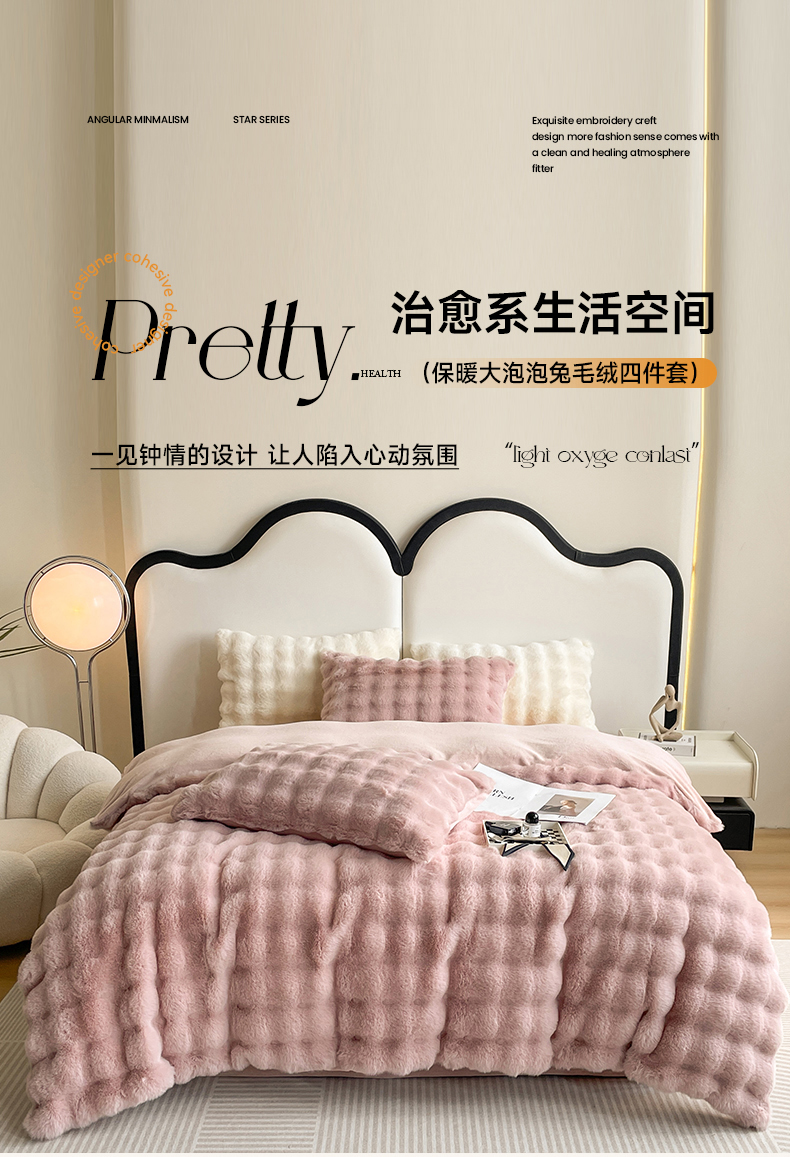 商品名称:大元 2025新款A类280g保暖大泡泡兔毛绒四件套 粉豆沙
