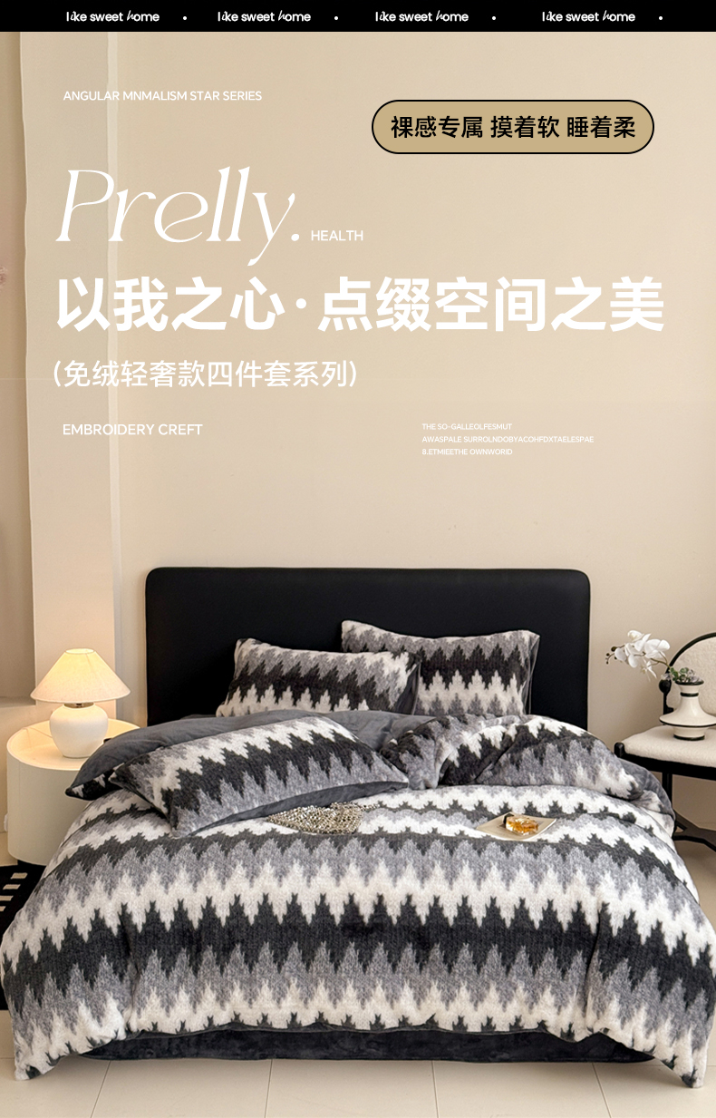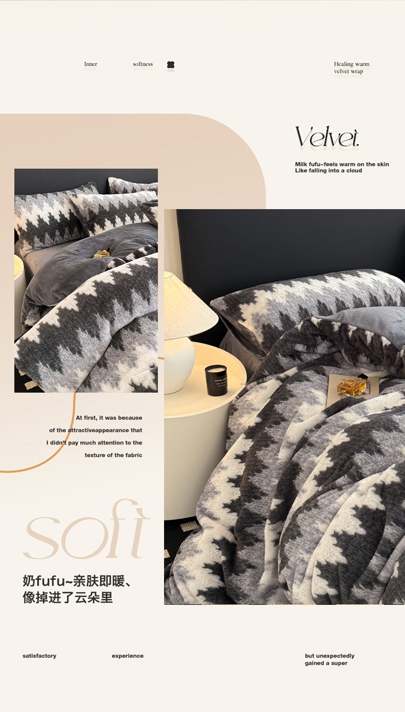 当前位置: 91家纺网 > 商品网购 > 床品套件 > 四件套 > 其它四件套 > 眠博士 2025新款轻奢款美拉德印花兔兔绒四件套 曲线深灰