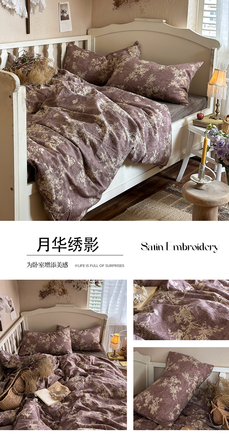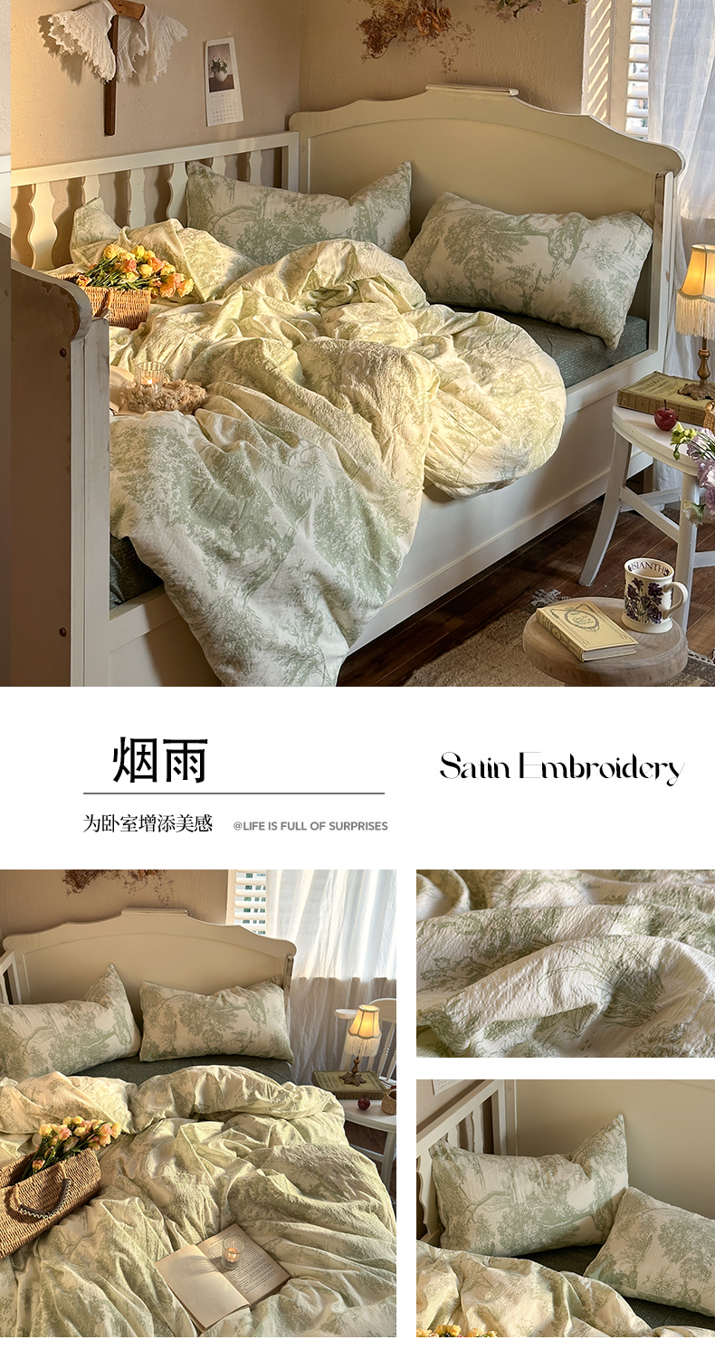 当前位置: 91家纺网 > 商品网购 > 床品套件 > 四件套 > 其它四件套 > 初念 2025新款1亚麻复古诧季风系列皱皱纱提花四件套(提供买家秀) 诧季风-烟雨