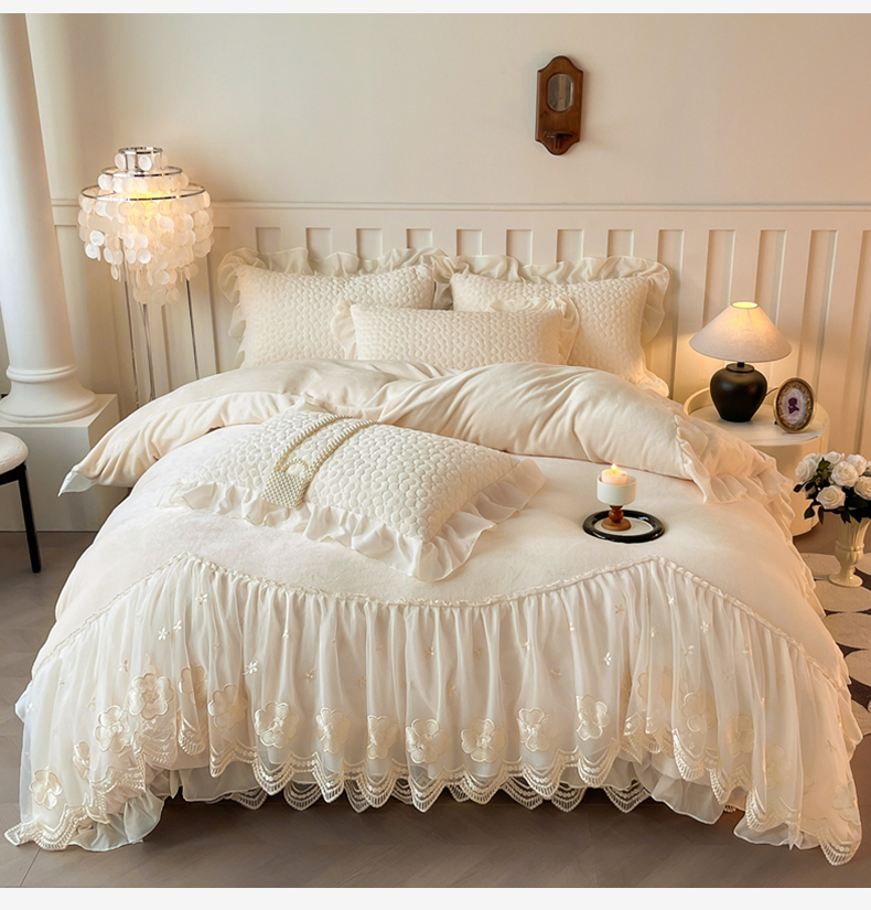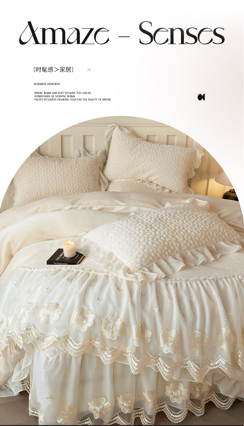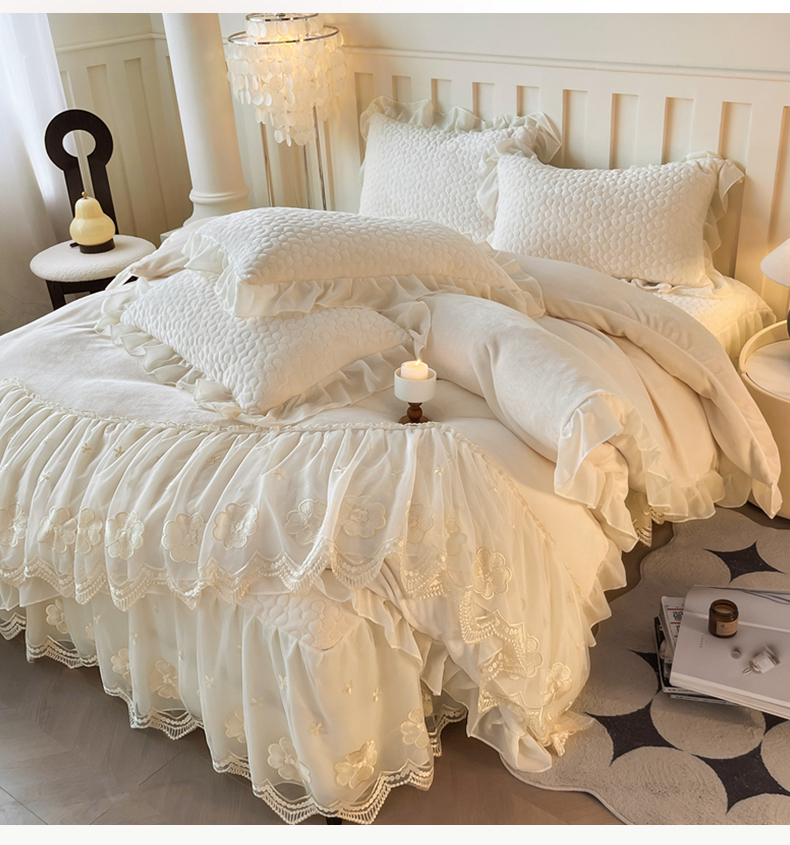 当前位置: 91家纺网 > 商品网购 > 床品套件 > 四件套 > 牛奶绒四件套 > 花香四季家纺 2025新款牛奶绒夹棉床裙款四件套-柏林小姐 柏林小姐-白