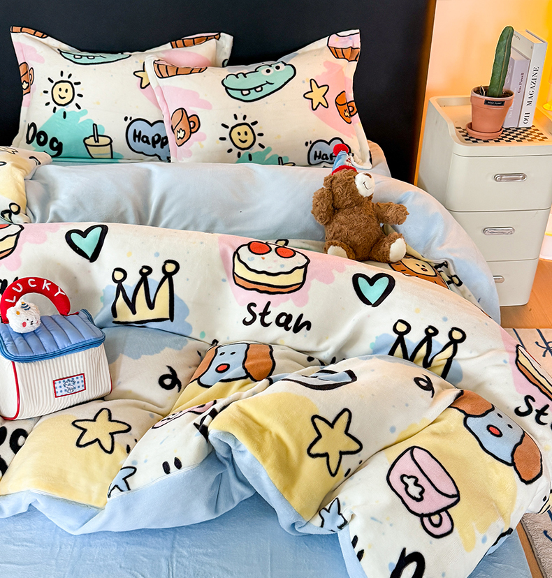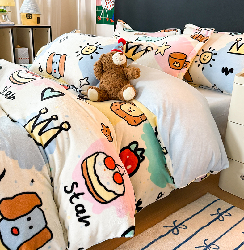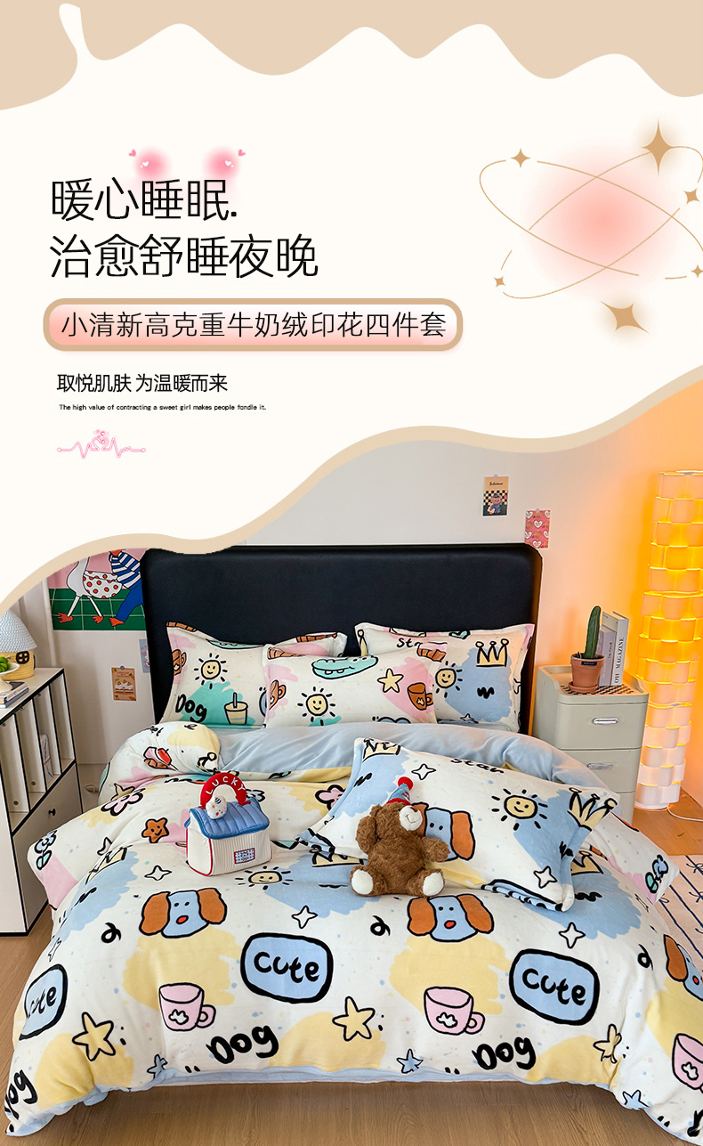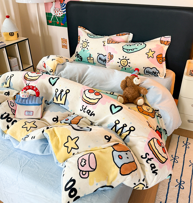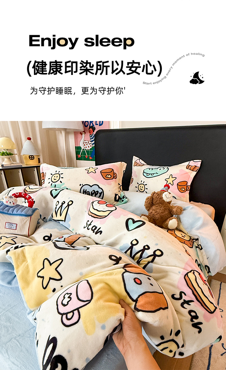 当前位置: 91家纺网 > 商品网购 > 床品套件 > 四件套 > 牛奶绒四件套 > 艾特你 2025新款小清新高克重牛奶绒印花四件套 七彩乐园