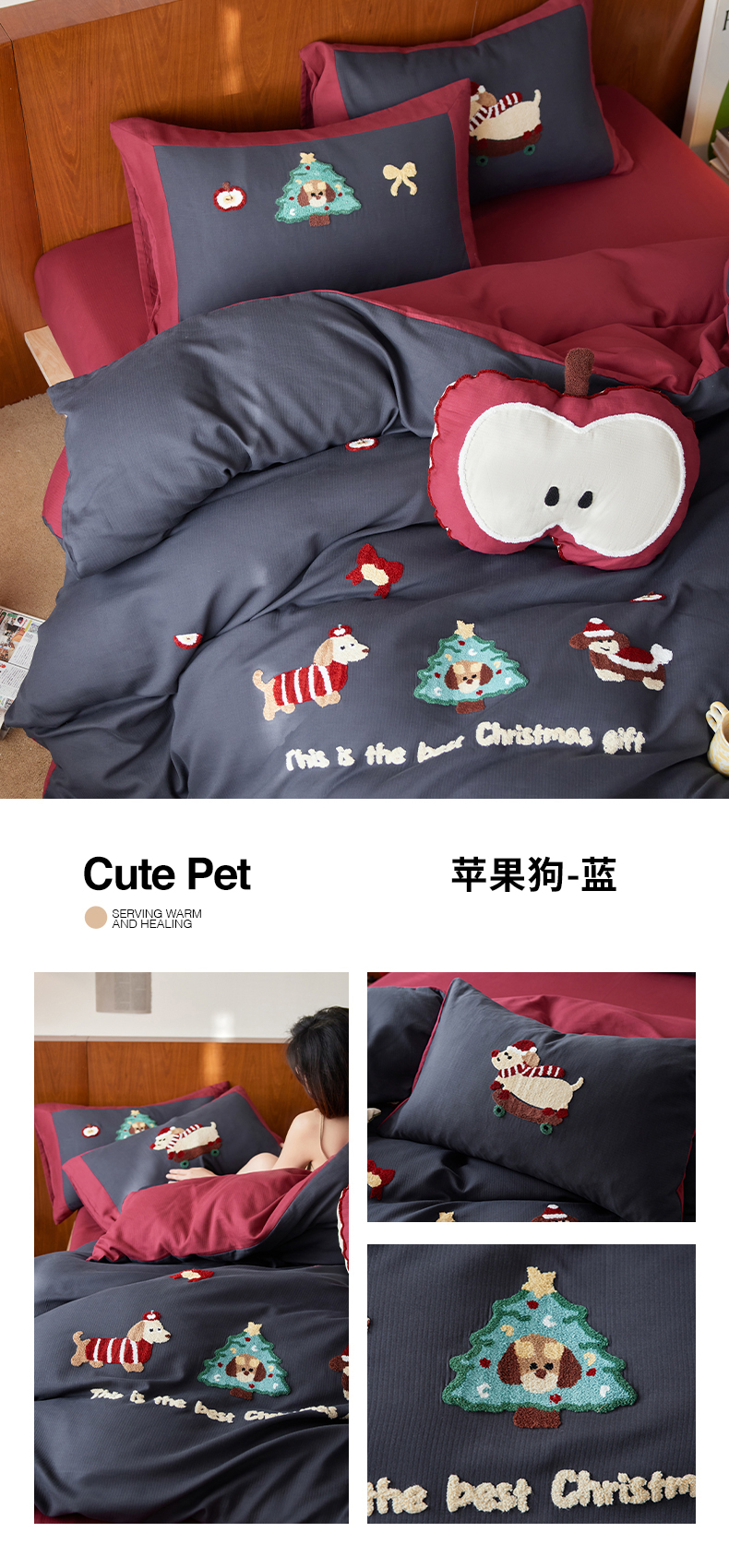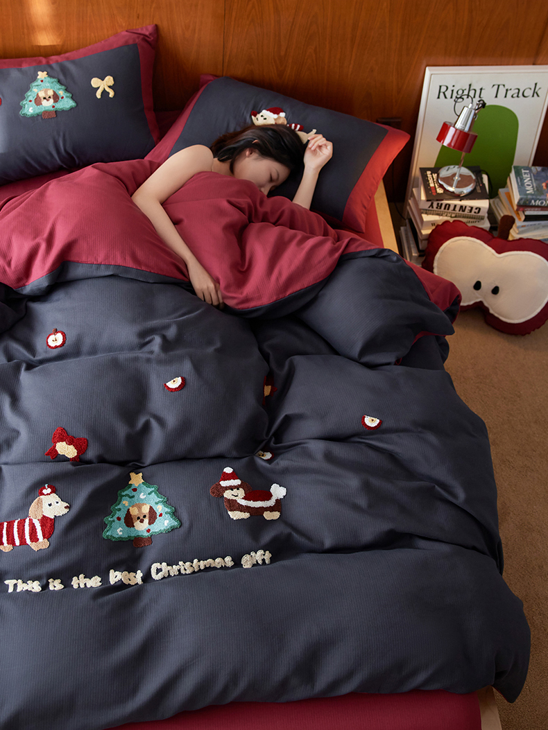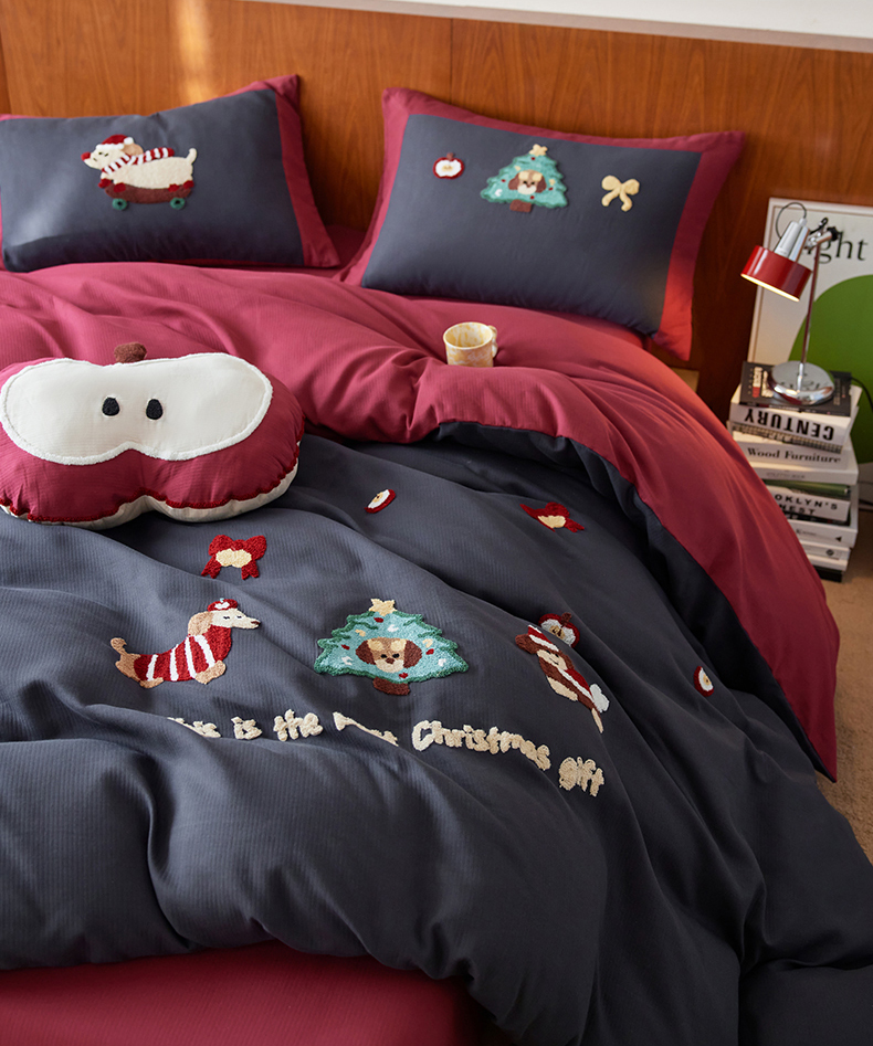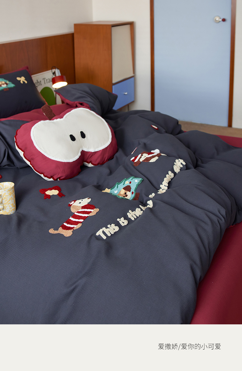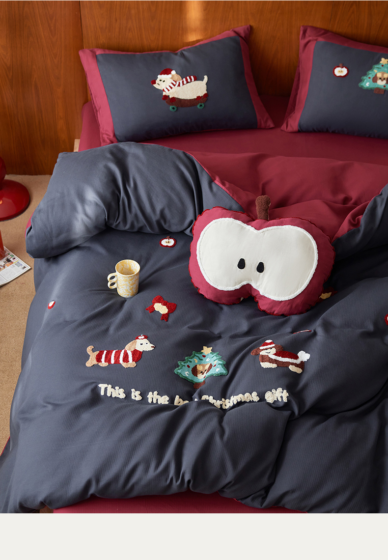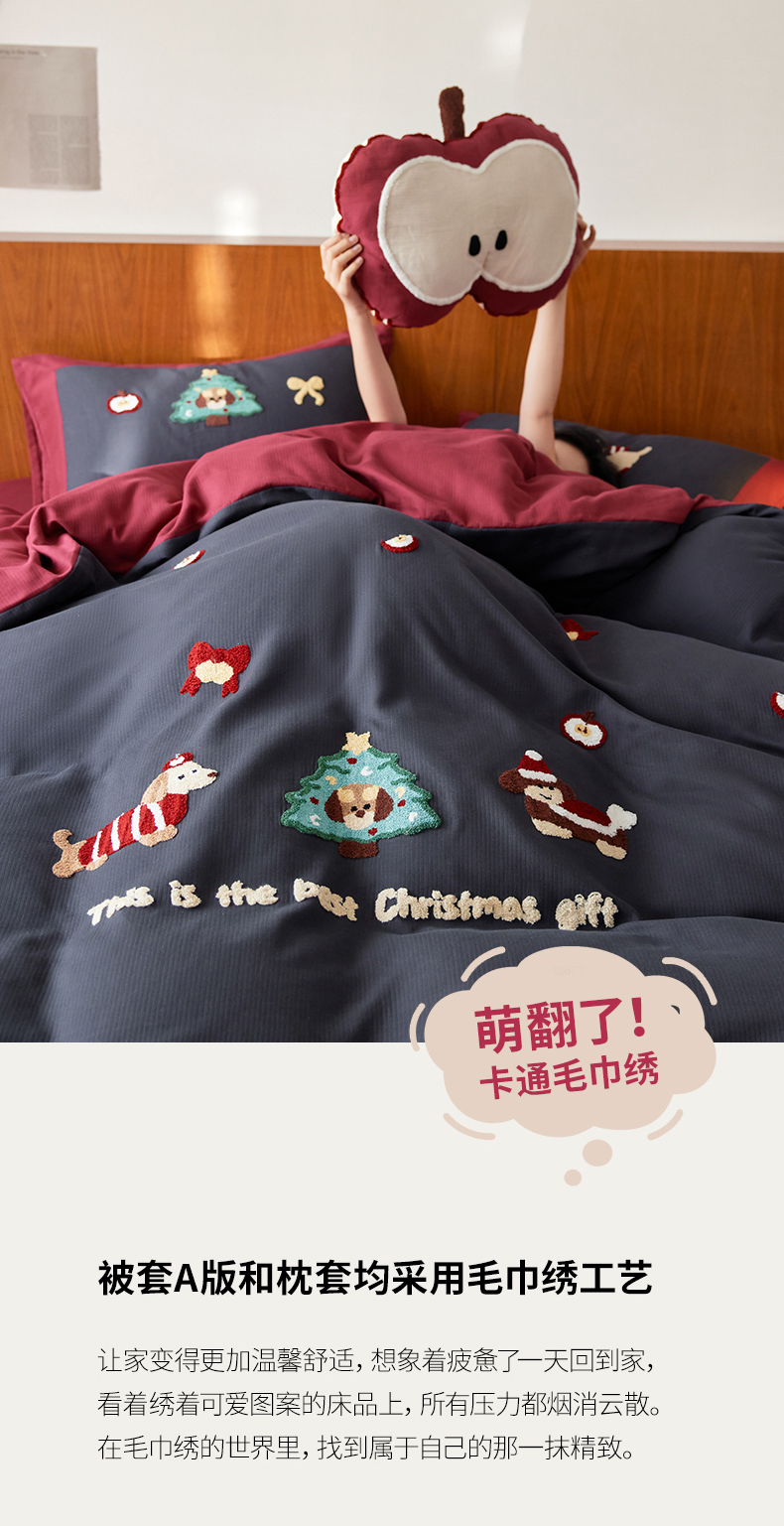 当前位置: 91家纺网 > 商品网购 > 床品套件 > 四件套 > 普通磨毛四件套 > 风向标家纺 2025新款透气软织提花磨毛卡通毛巾绣四件套-风格一 苹果狗-蓝