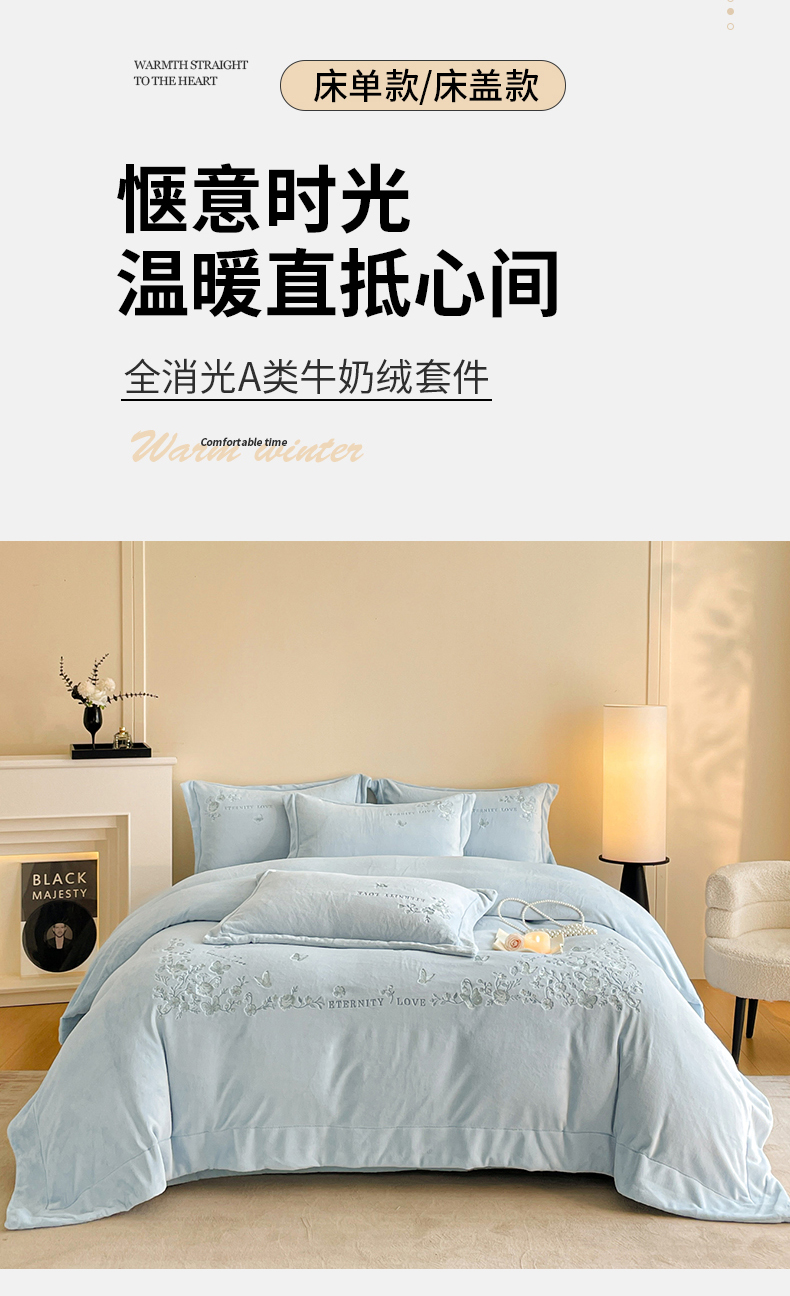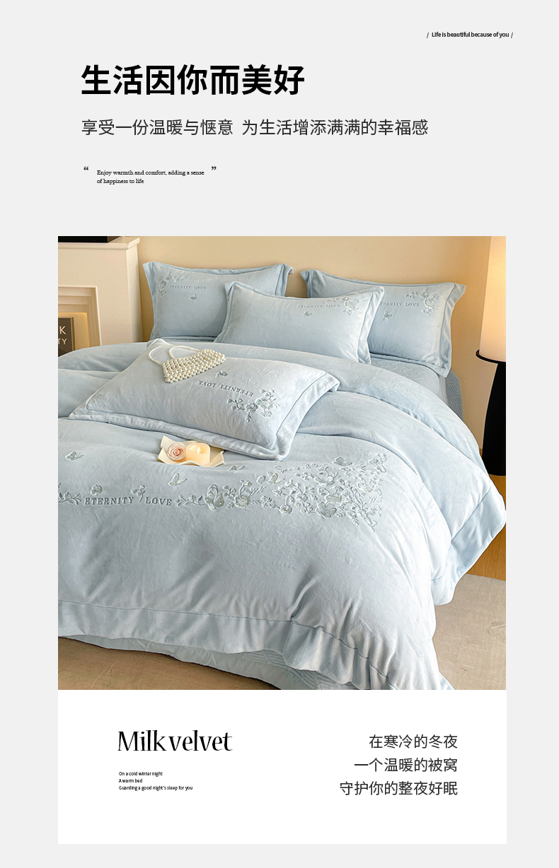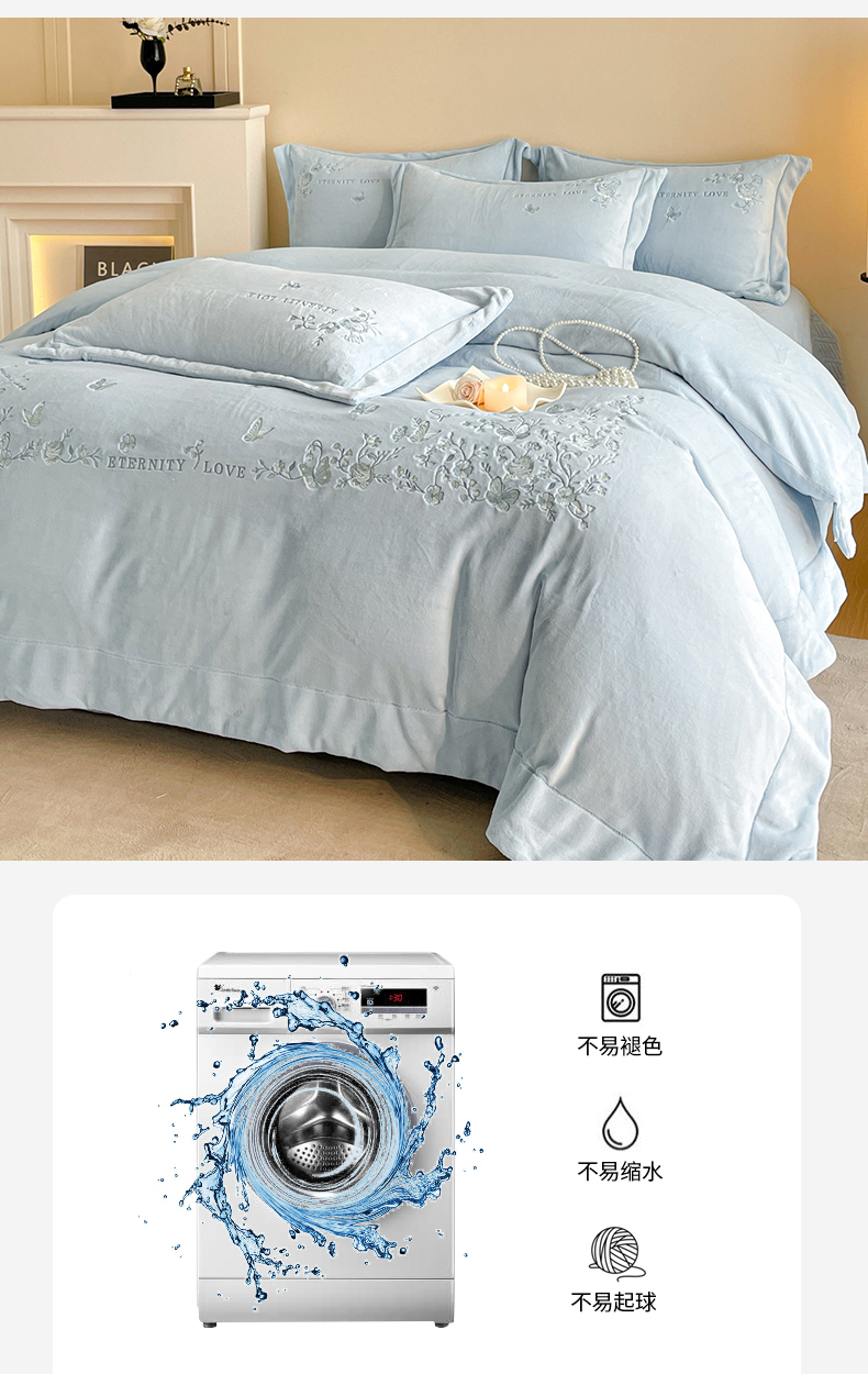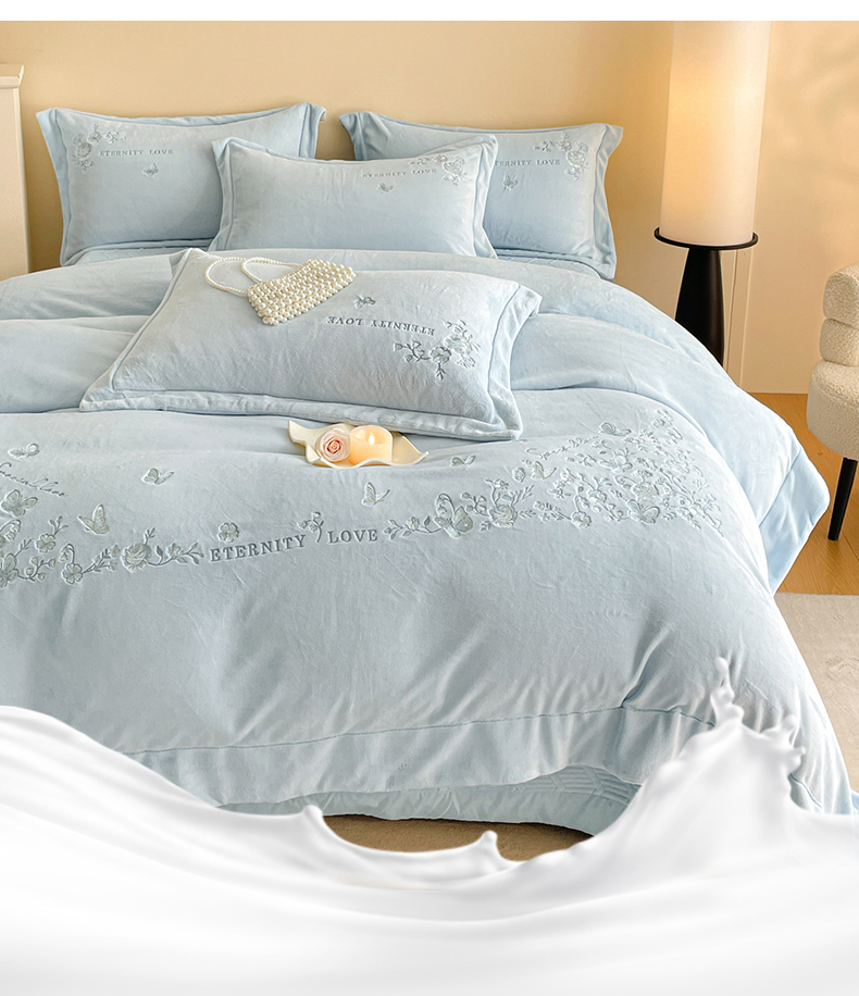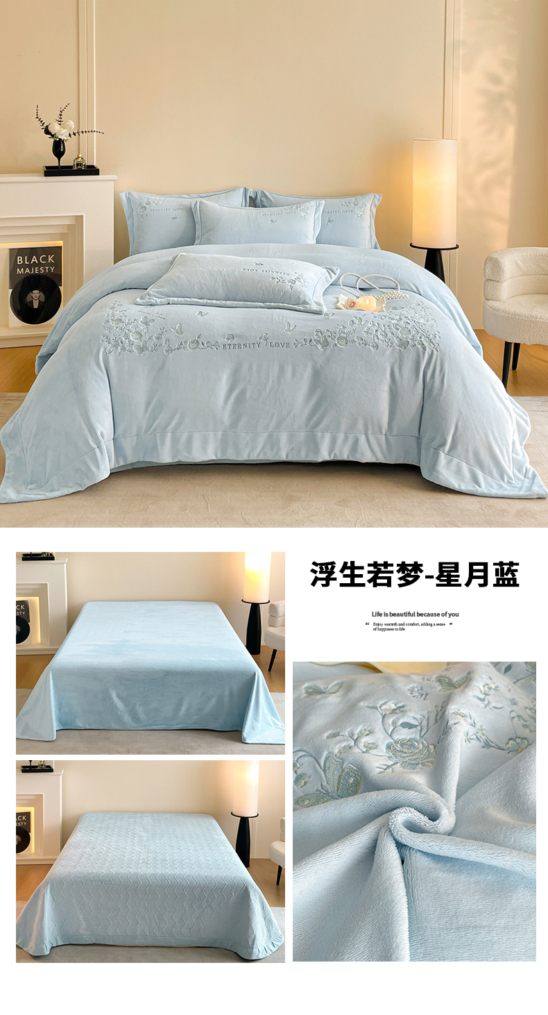 当前位置: 91家纺网 > 商品网购 > 床品套件 > 四件套 > 牛奶绒四件套 > 新方向 2025新款全消光A类刺绣牛奶绒四件套-浮生若梦 浮生若梦-星月蓝