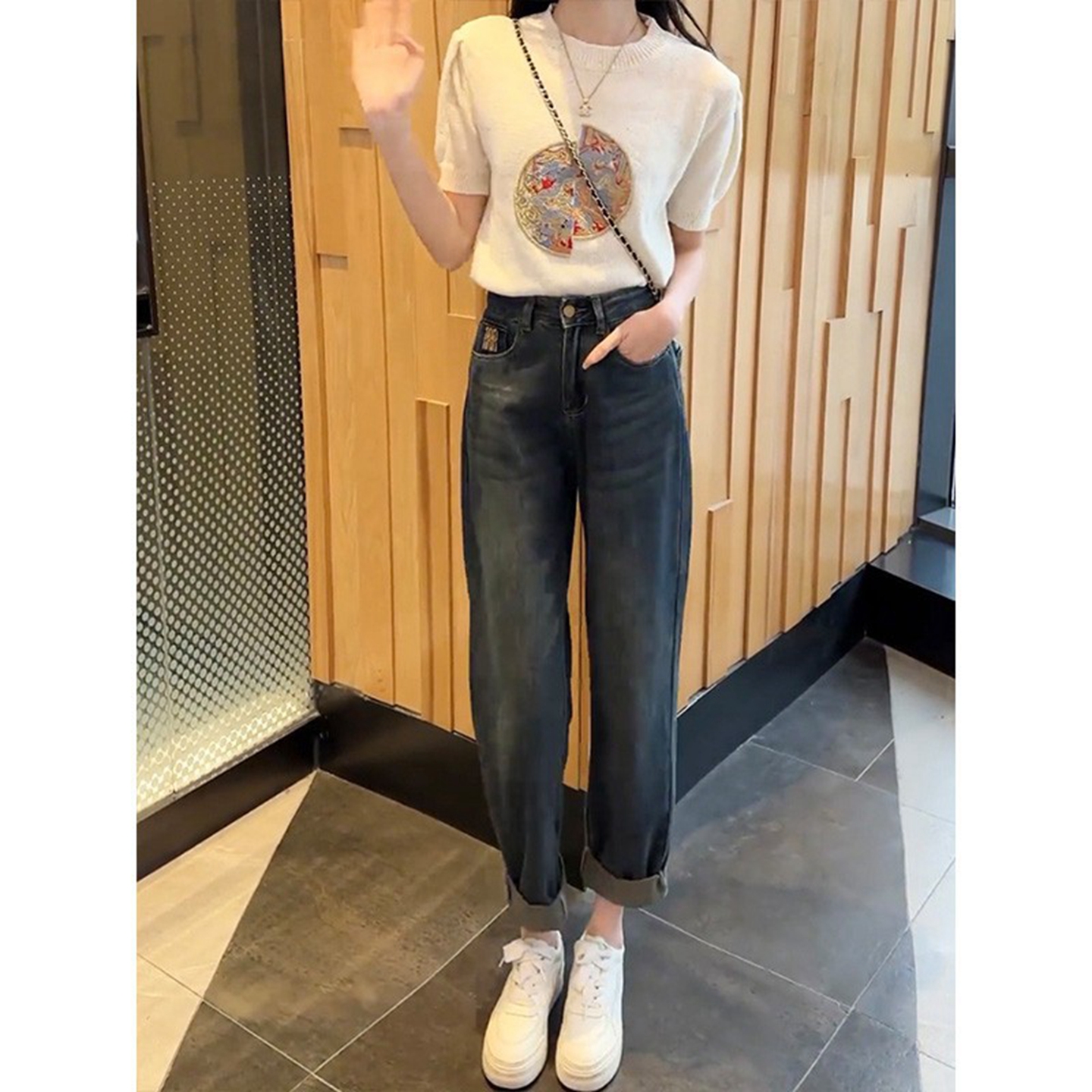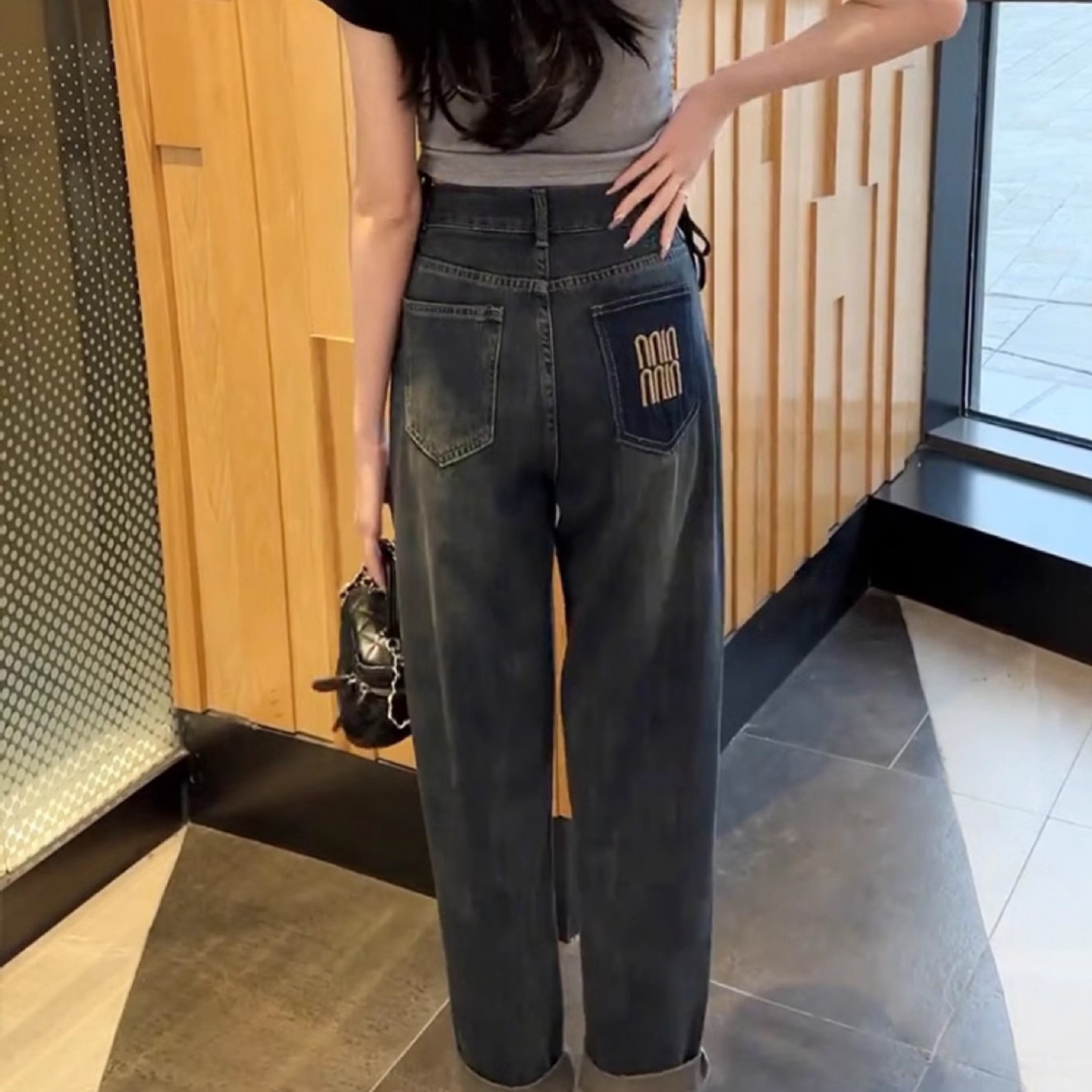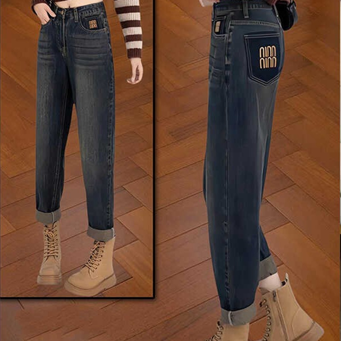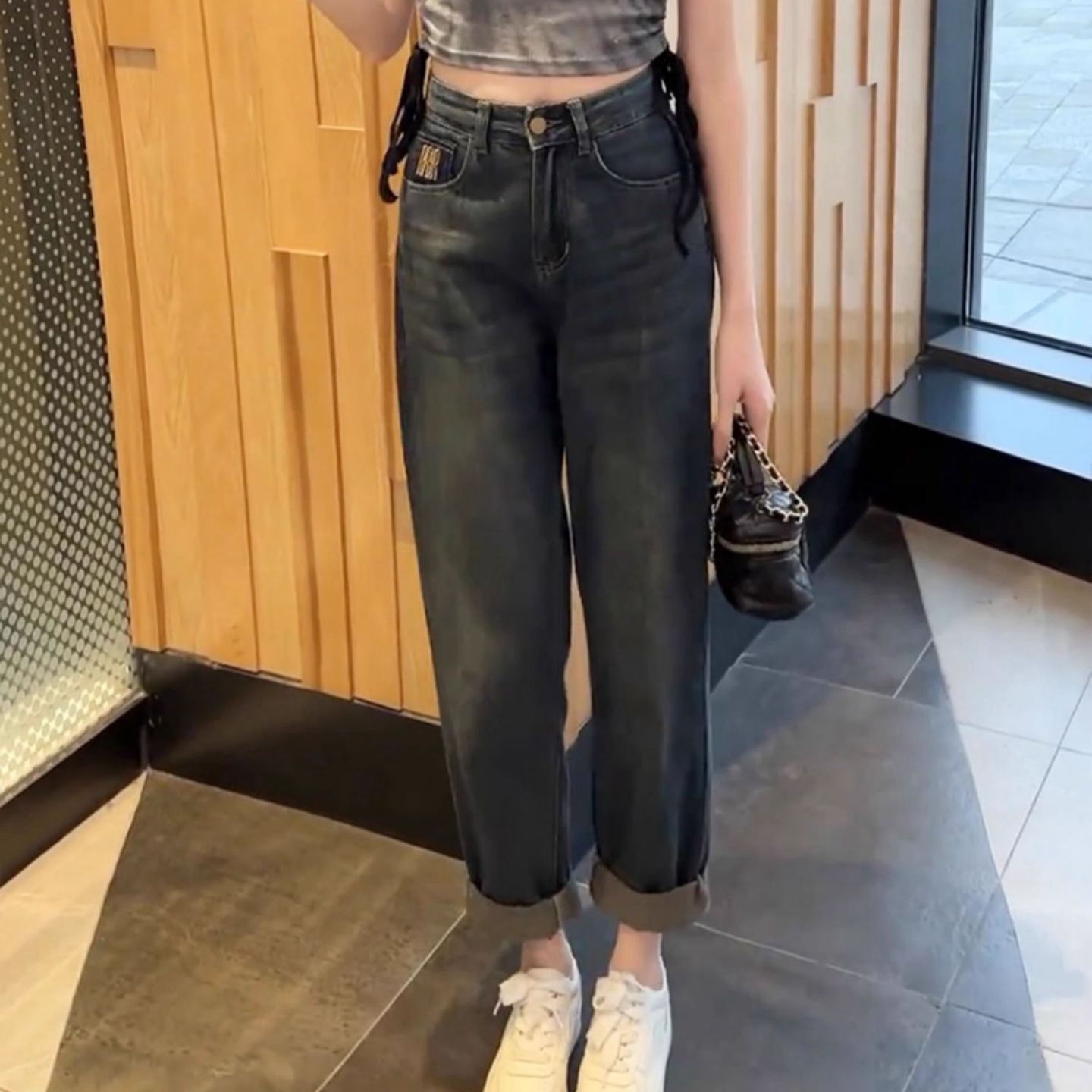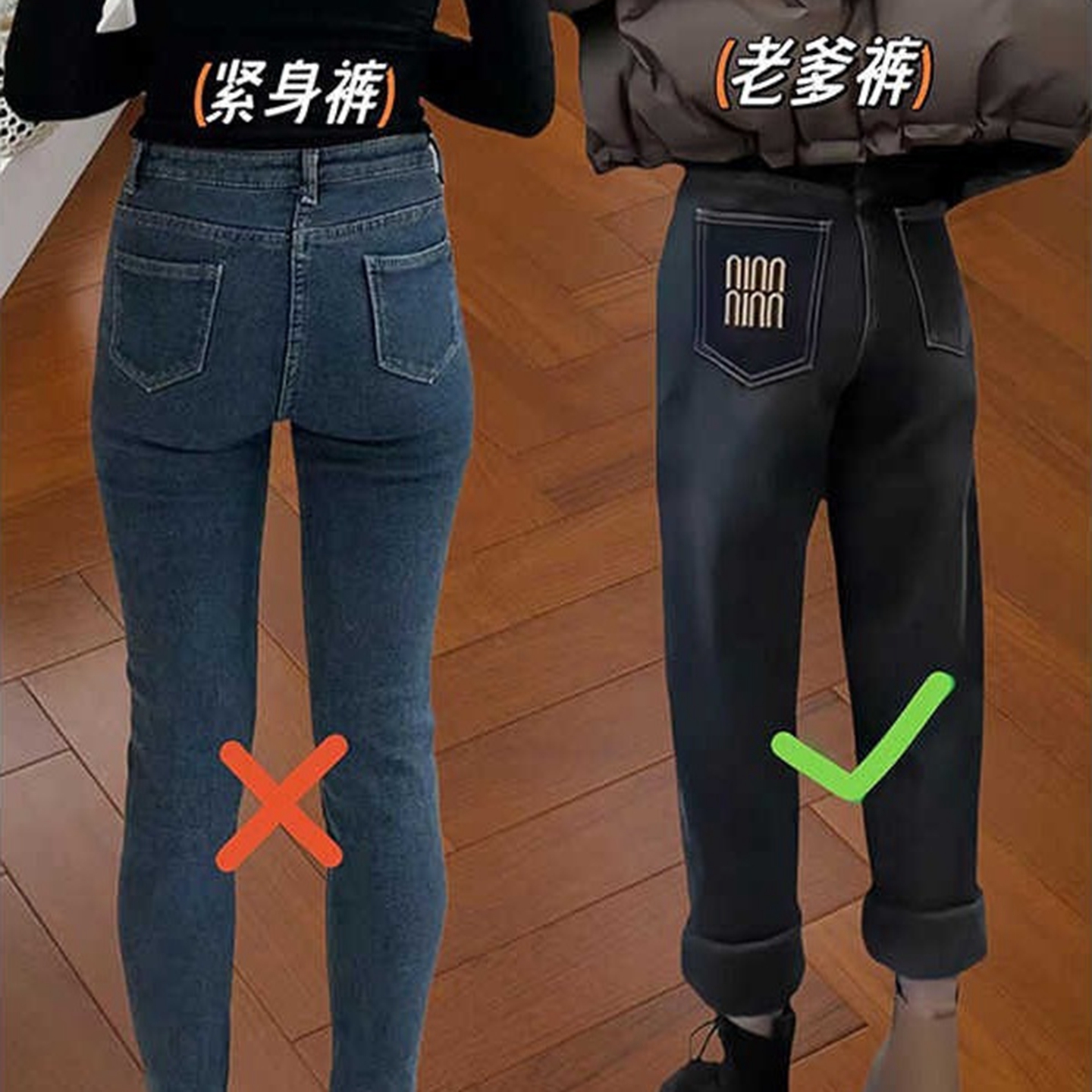 (总)洛兰沙家居馆【只代发】【只代发】 2025新款高腰显瘦显高大码老爹阔腿萝卜裤子牛仔裤1