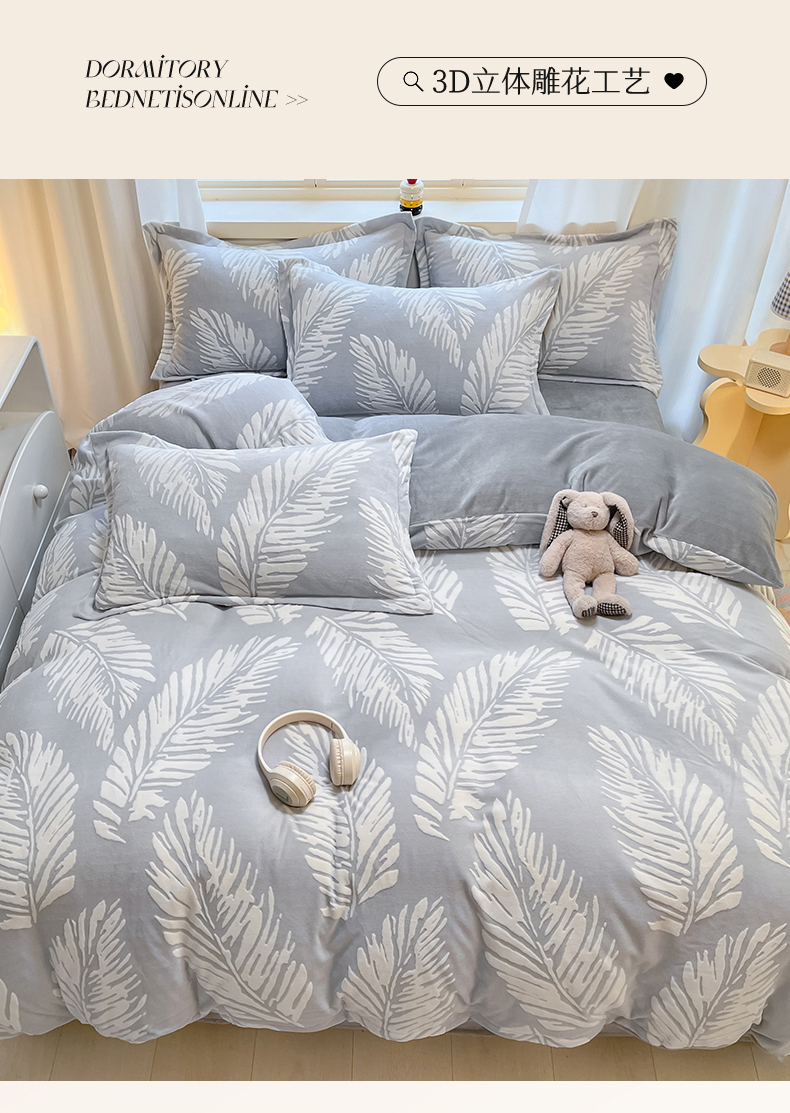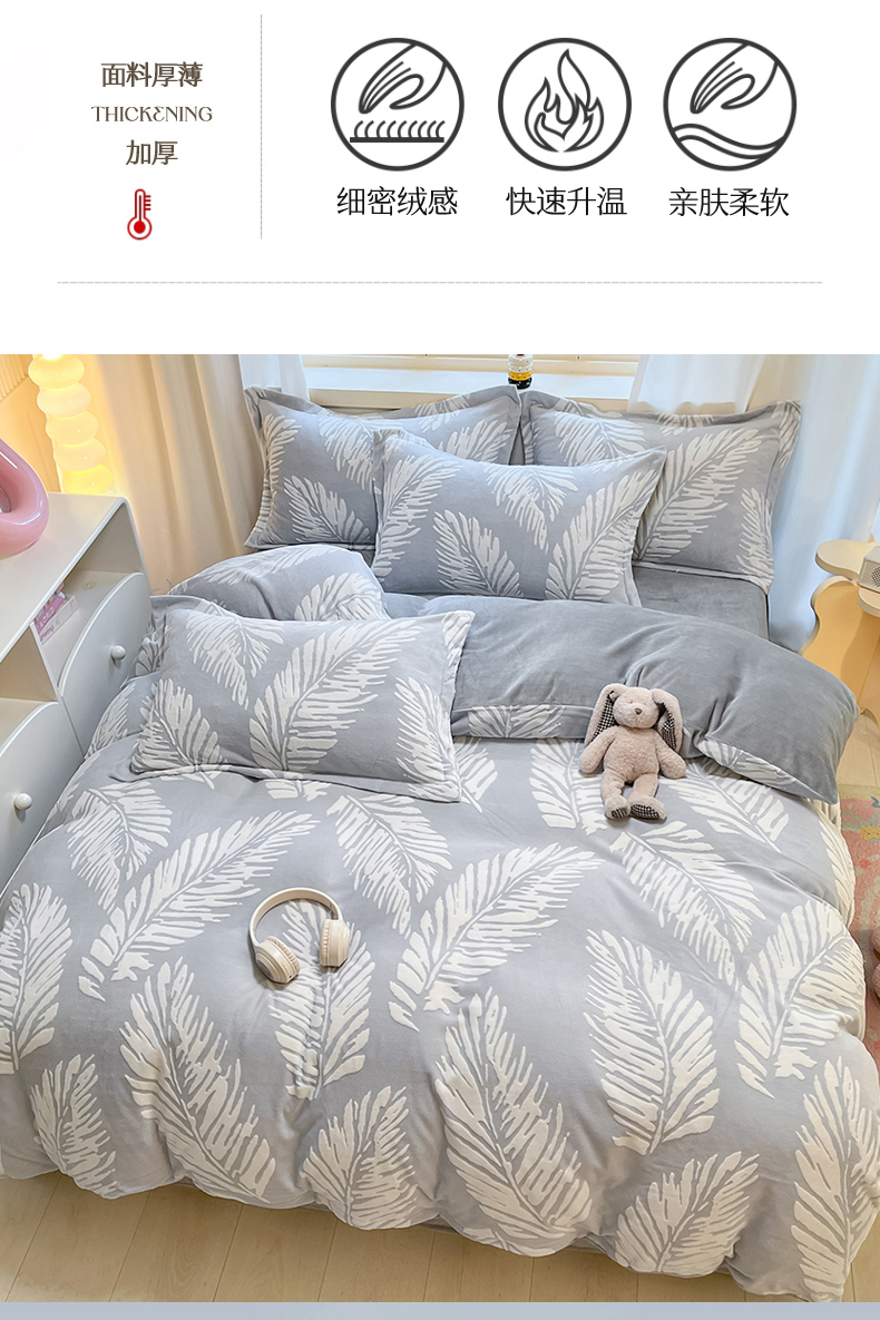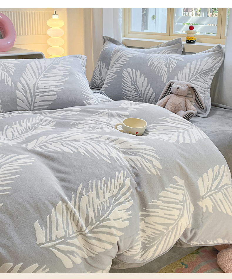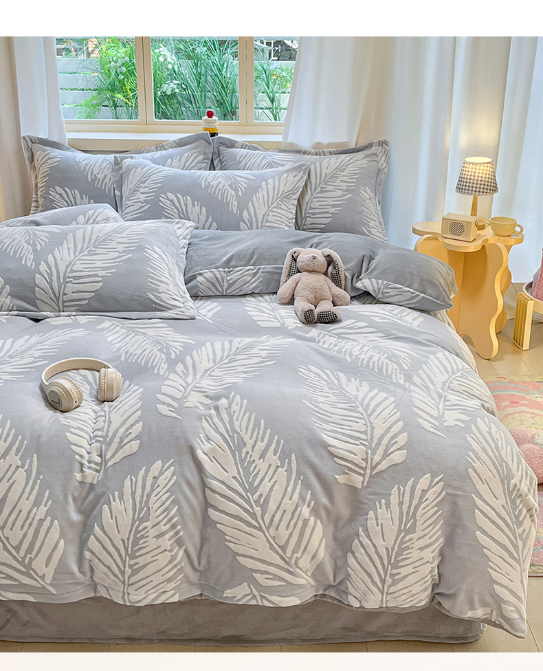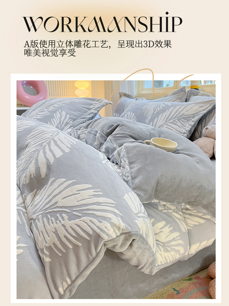 商品名称:名兮家居 2025新款立体加厚雕花绒单被套 羽毛-灰