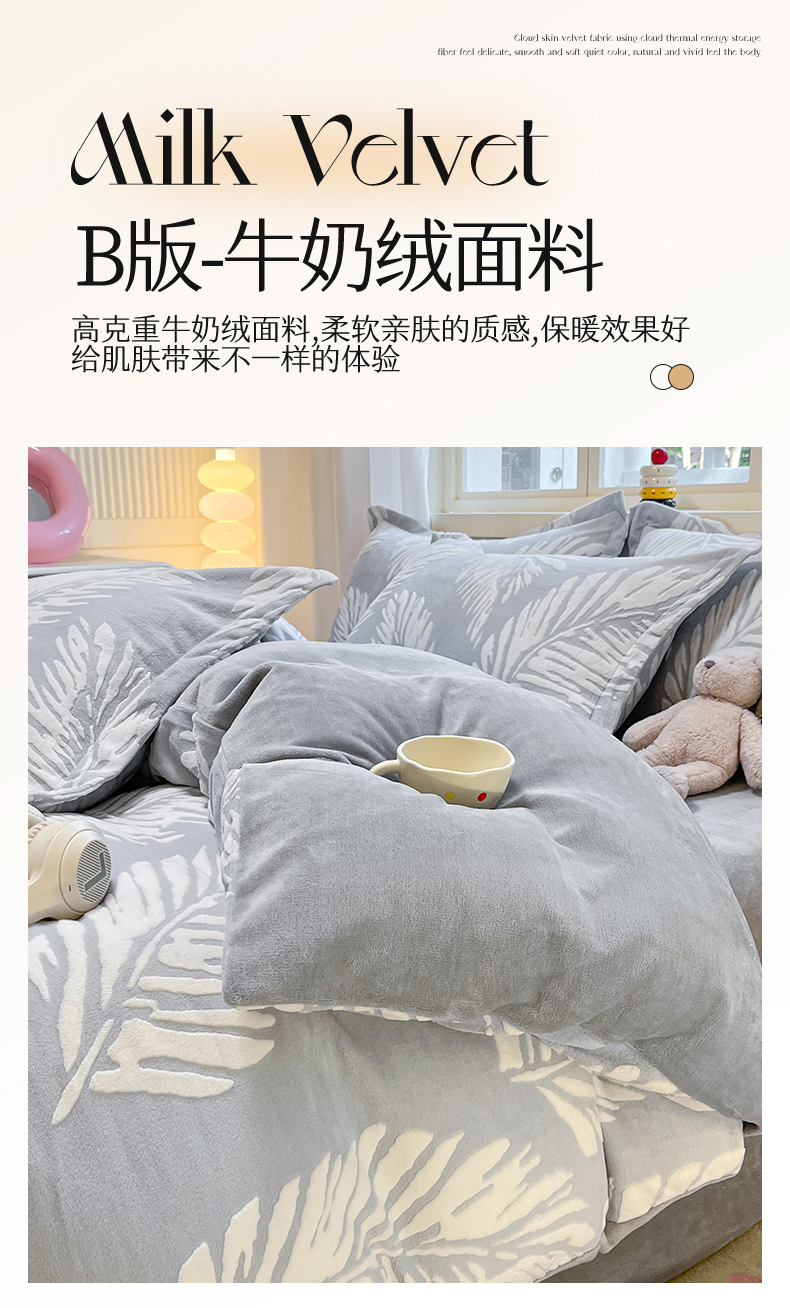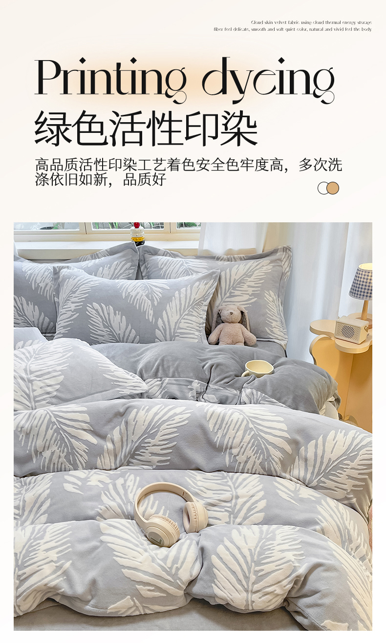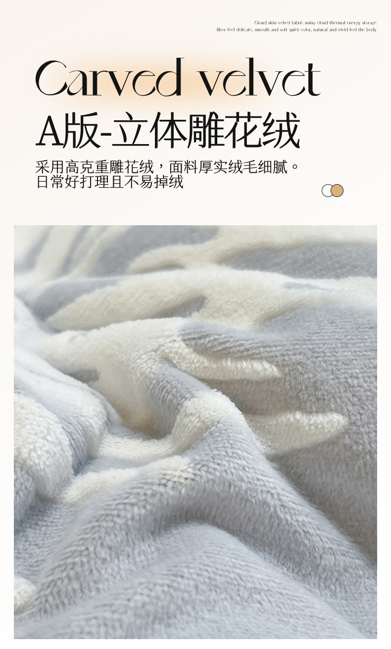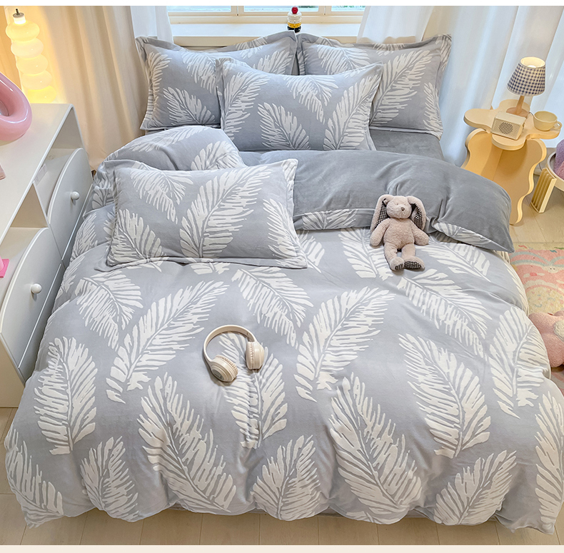 商品名称:名兮家居 2025新款立体加厚雕花绒单被套 羽毛-灰