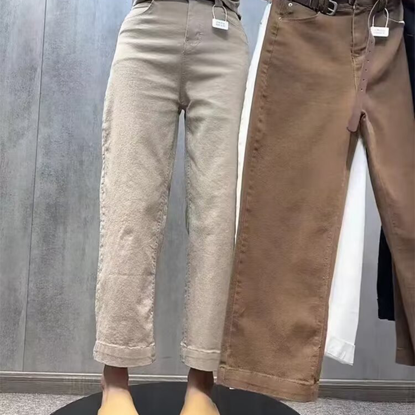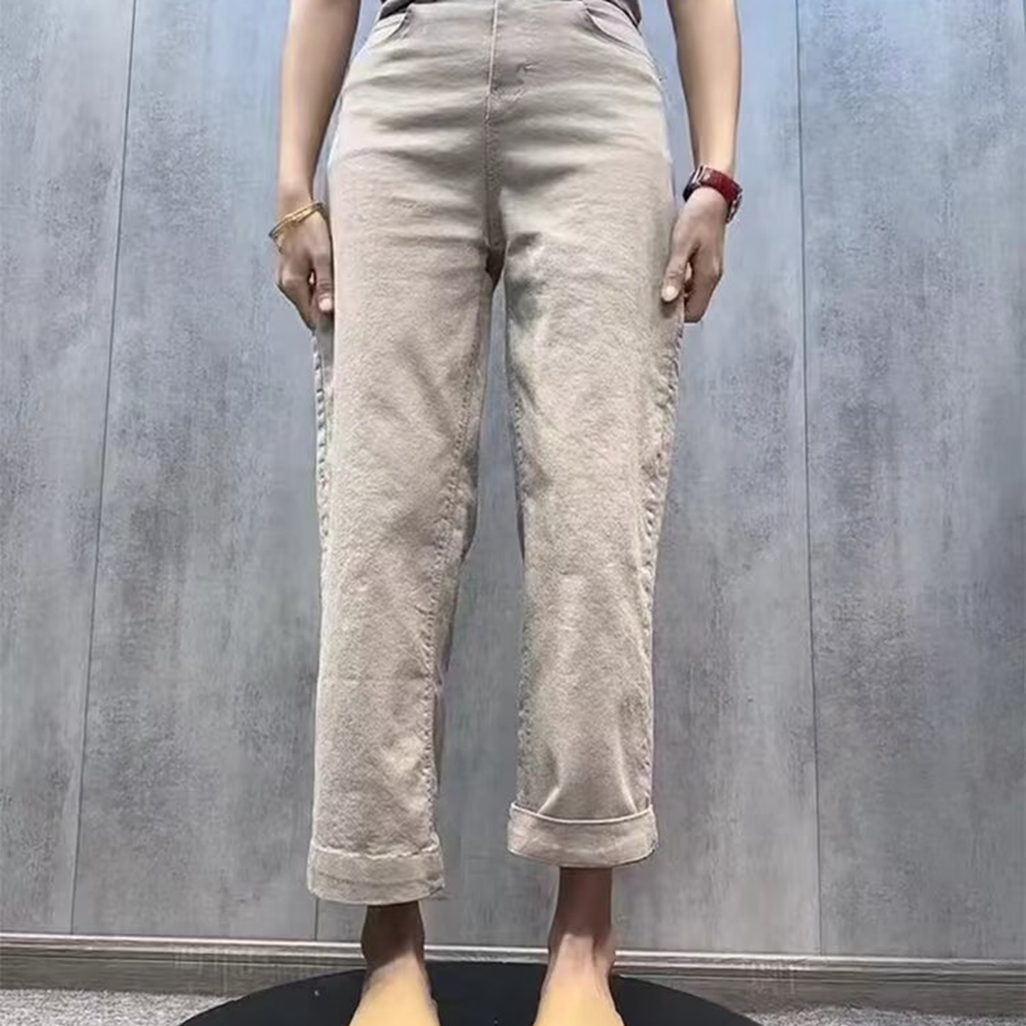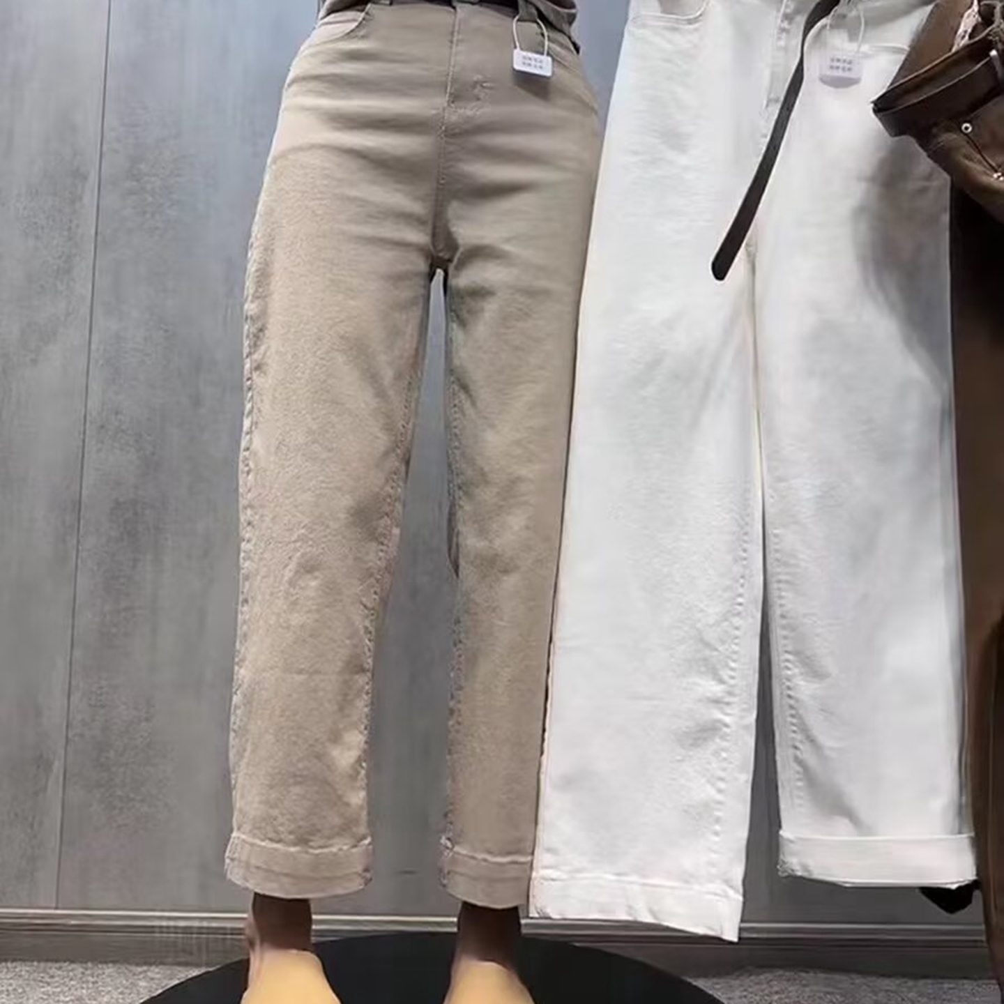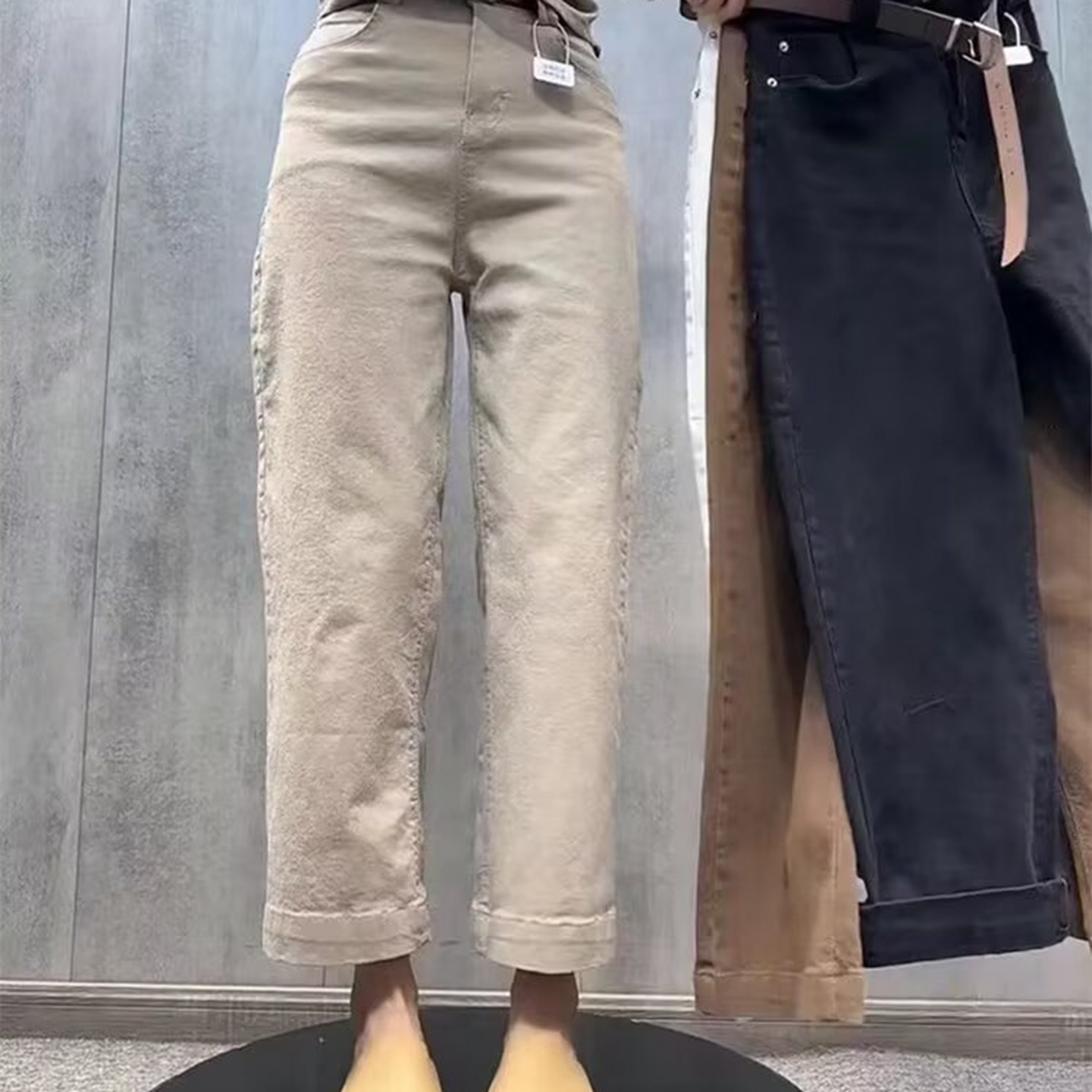 商品名称:洛兰沙家居馆【只代发】【只代发】 2025只代发欧货弹力牛仔裤女秋季2025新款高腰直筒宽松显瘦阔腿裤九分裤子32 黑色