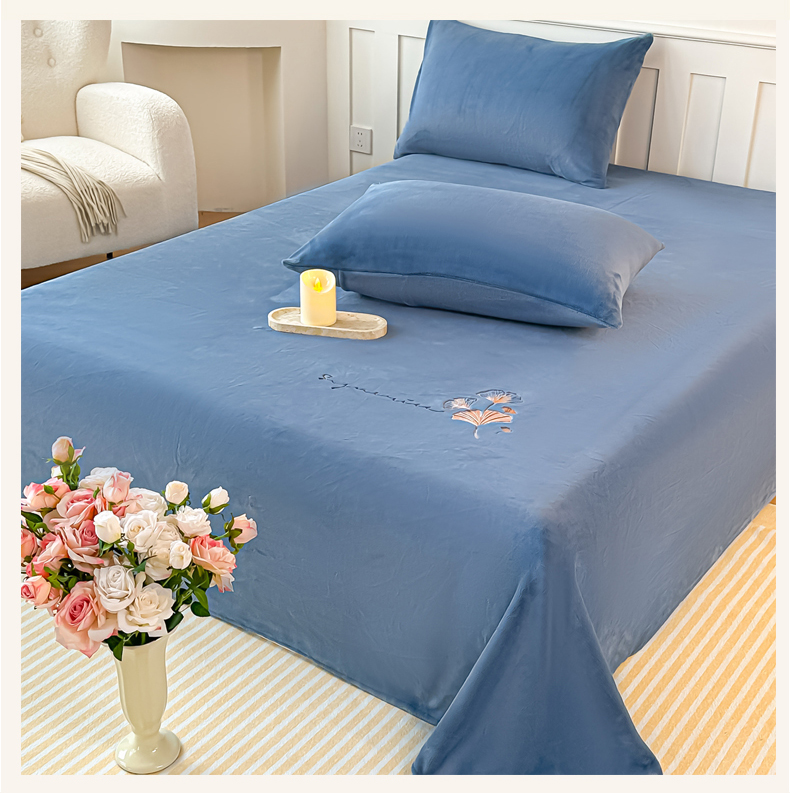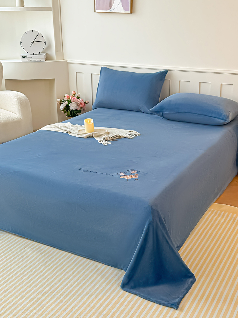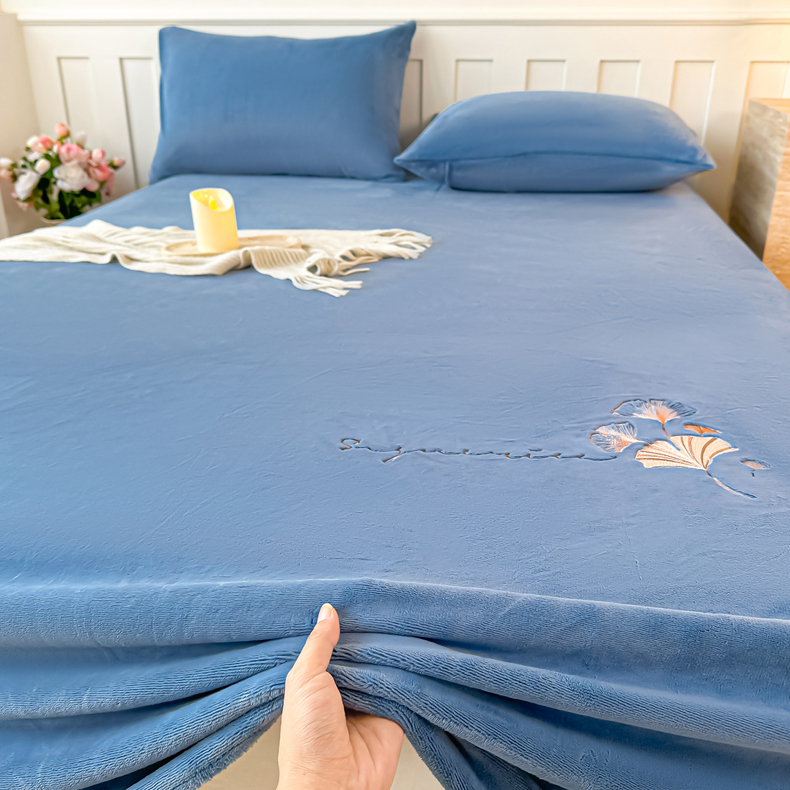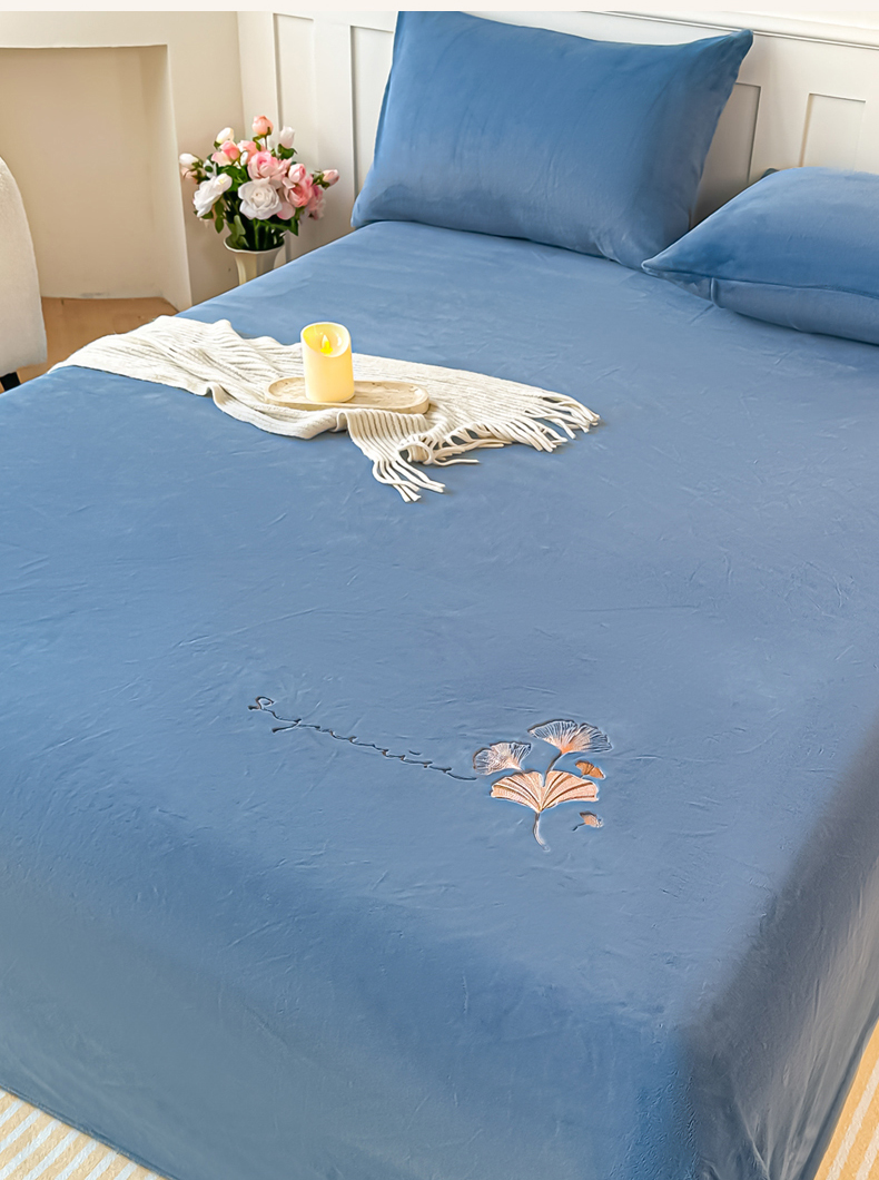 芙绣家纺 2025新款牛奶绒刺绣床单 宾利蓝