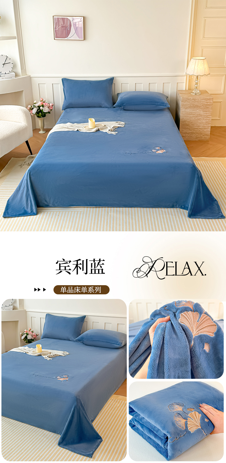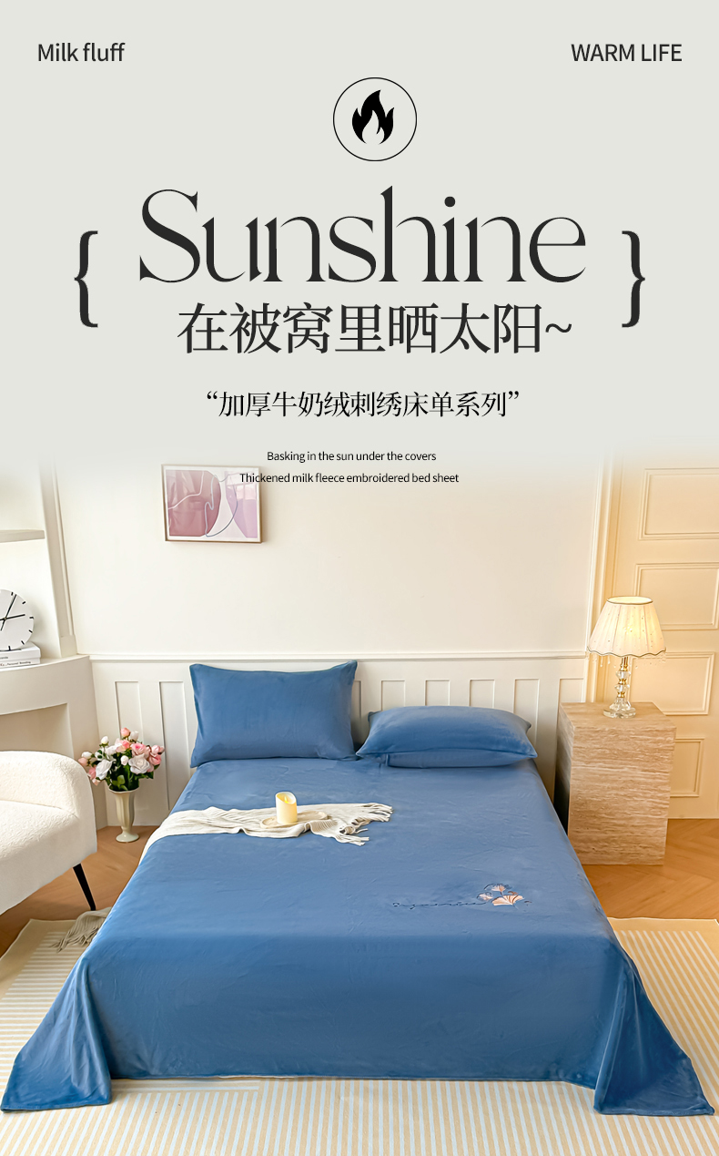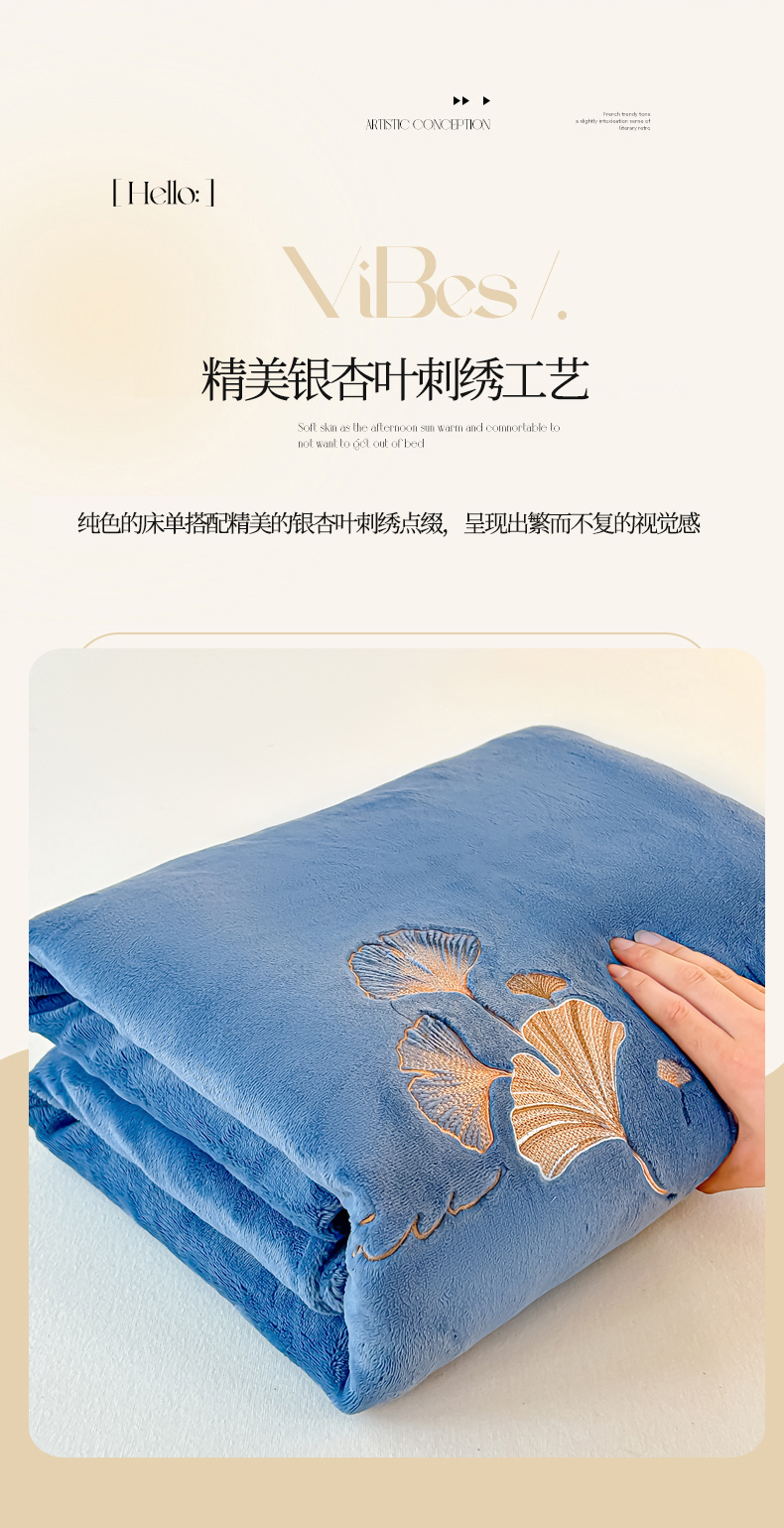 芙绣家纺 2025新款牛奶绒刺绣床单 宾利蓝