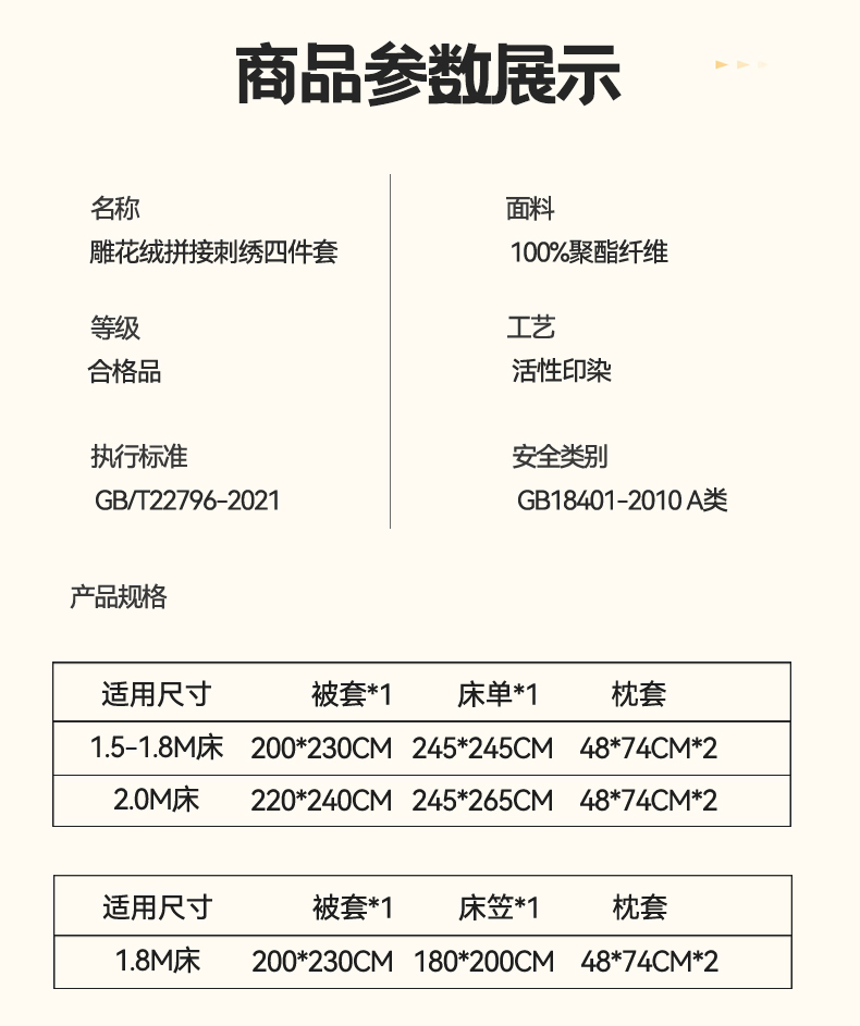 商品名称:(总)遇见家居生活馆 2025新款高克重雕花绒拼接刺绣四件套系列-艾菲妮