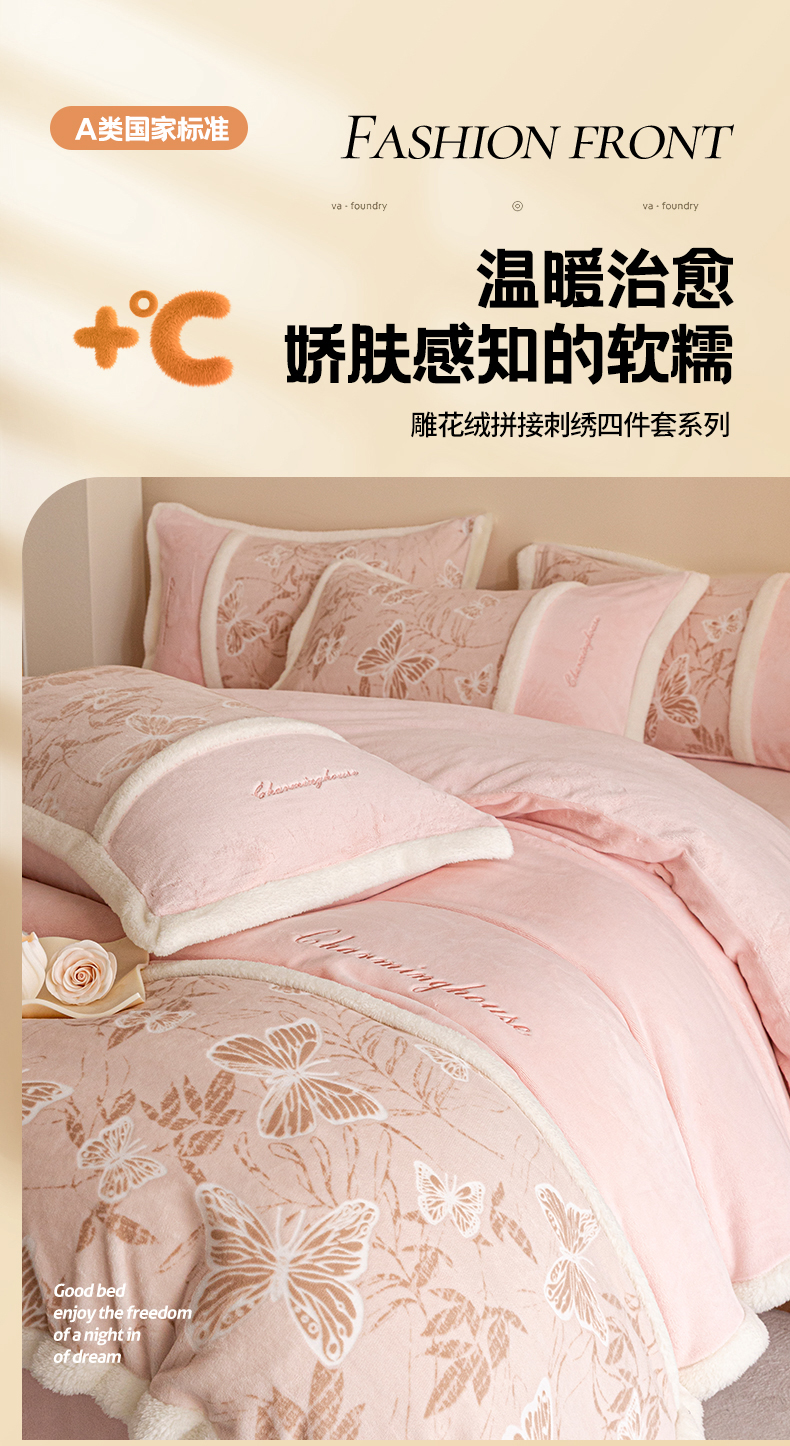 (总)遇见家居生活馆 2025新款高克重雕花绒拼接刺绣四件套系列-艾菲妮