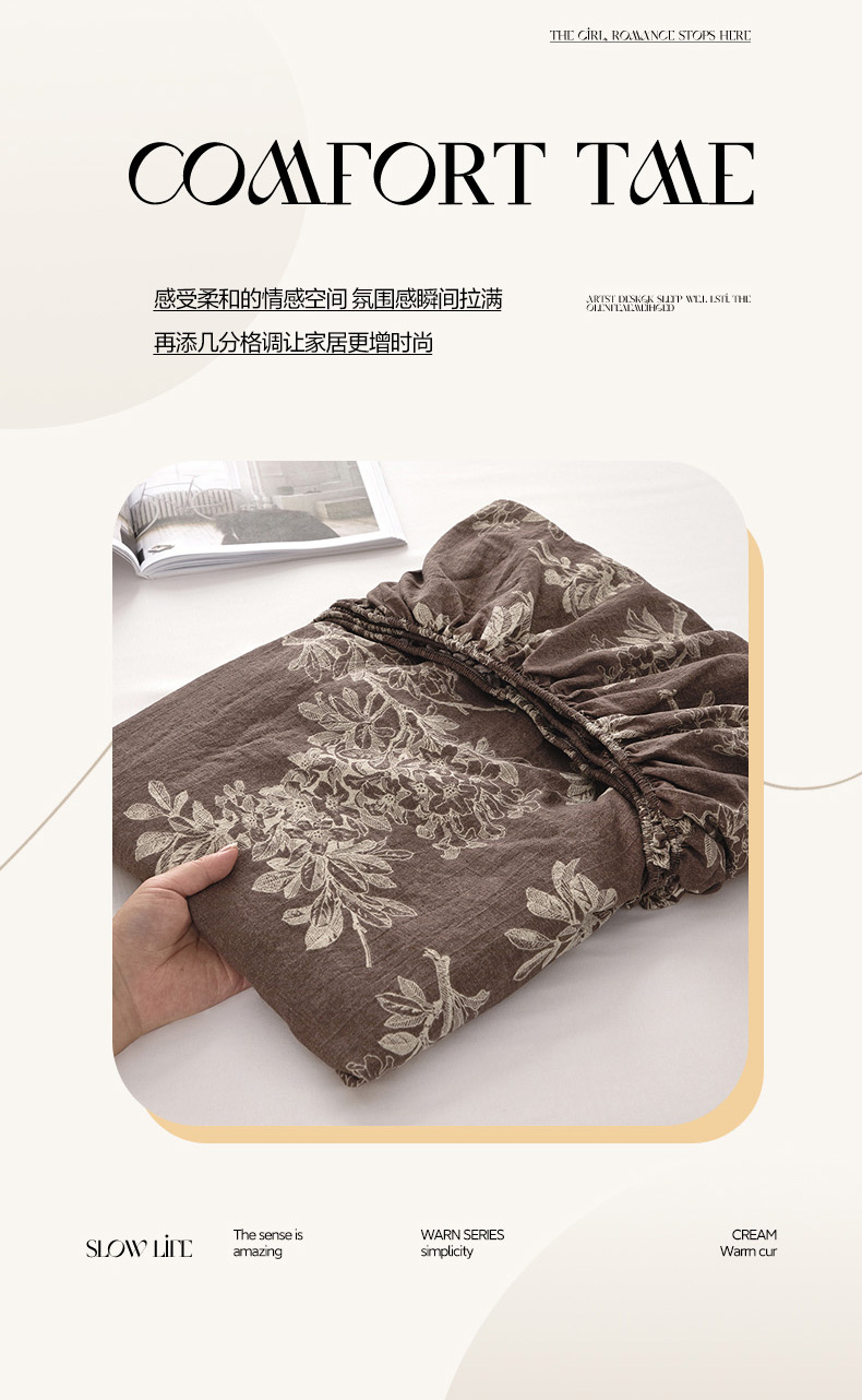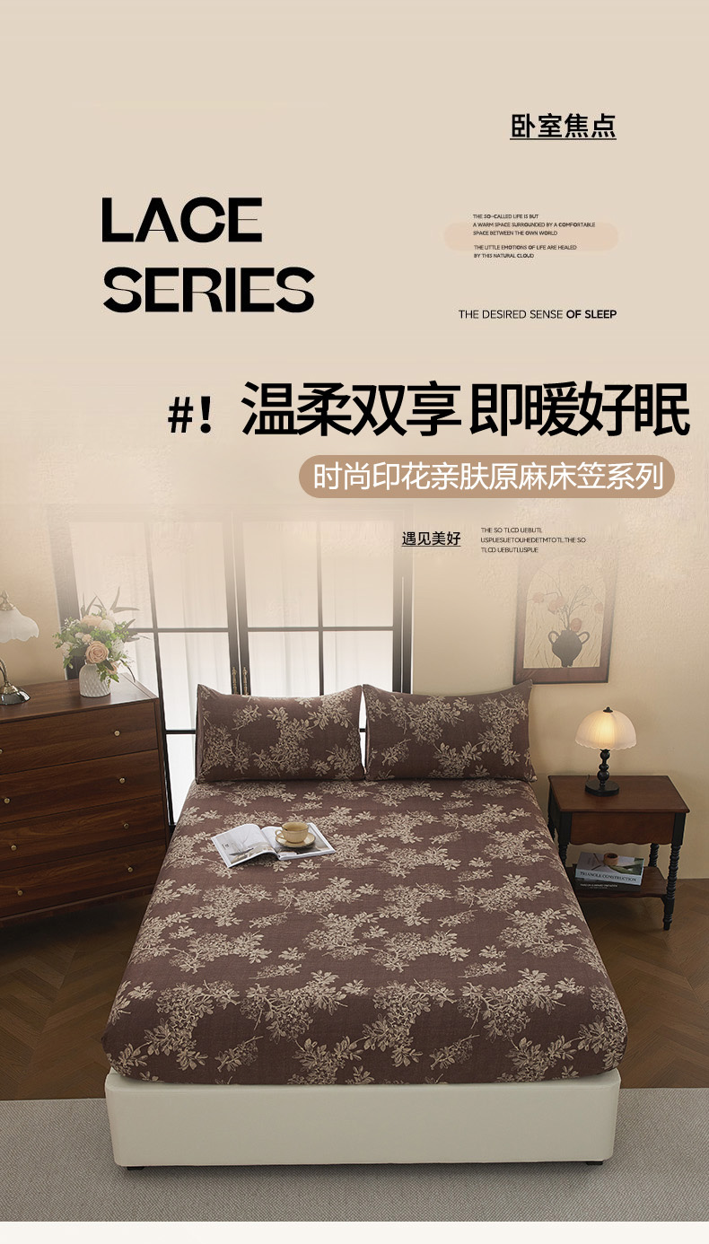 • 91家纺网 家纺一手货源 找家纺 卢赛尔 2025新款高克重皱皱复古原麻单床笠床笠三件套 疏影