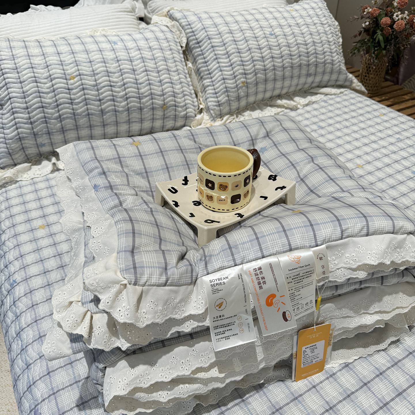 (总)奈萝家纺 2025春夏新款全棉纯棉蕾丝花边款夏被夏凉被空调被,呆呆熊,花语绿,花语紫,柠檬,蔷薇,西瓜兔,夏蓝,夏梦,夏之语,小花熊,樱花,组合图仅供展示