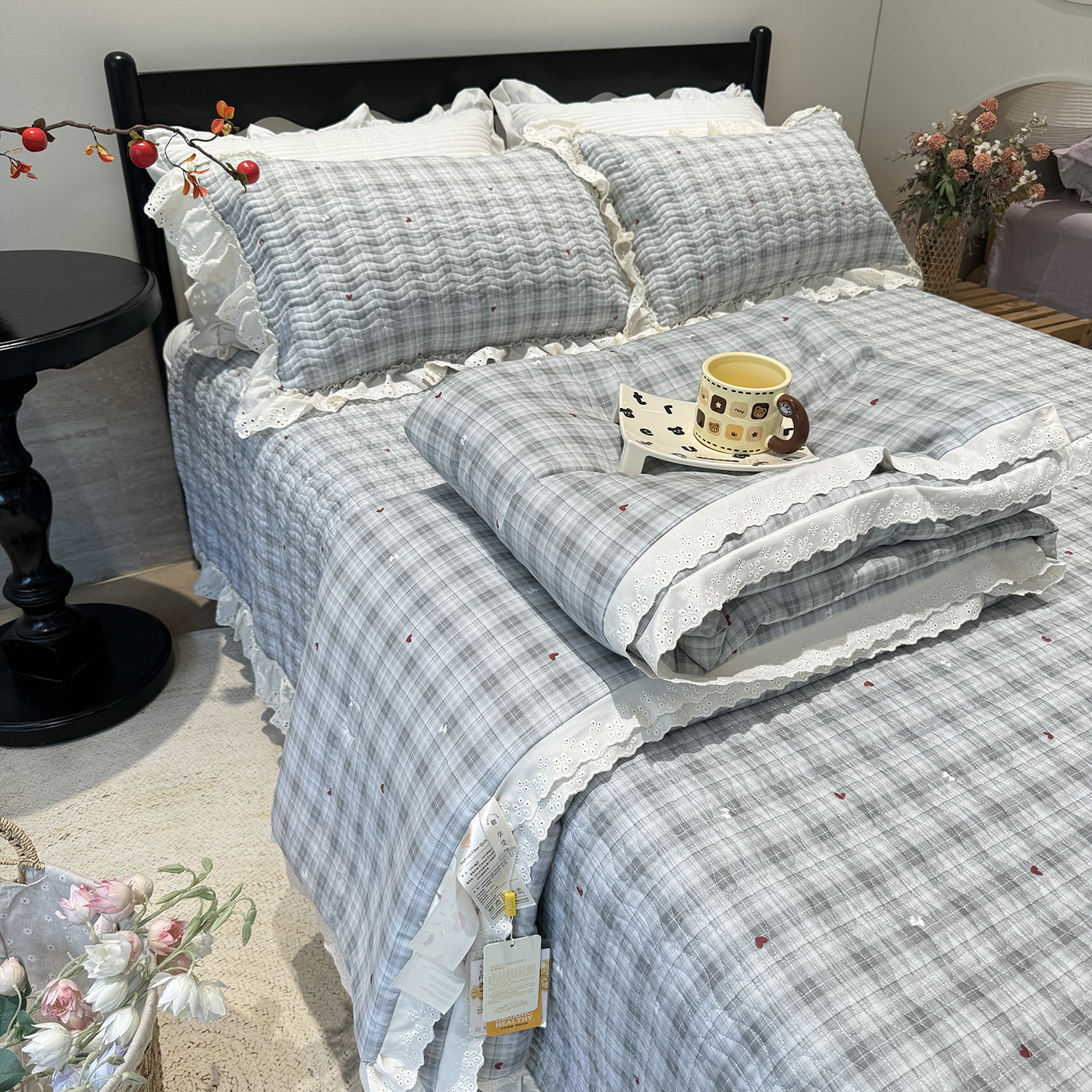 (总)奈萝家纺 2025新款全棉纯棉床盖三件套可配同款四季被同款被套,草莓酱,芳草恋,蝴蝶结,极光之星,沫婉,沐辰花灰,沐辰花绿,千野绿,千野紫,清幽粉,薇语梦,夏梦,小小爱心,小小花园,心悦,樱桃可可,稚嫩蔷薇,紫悦