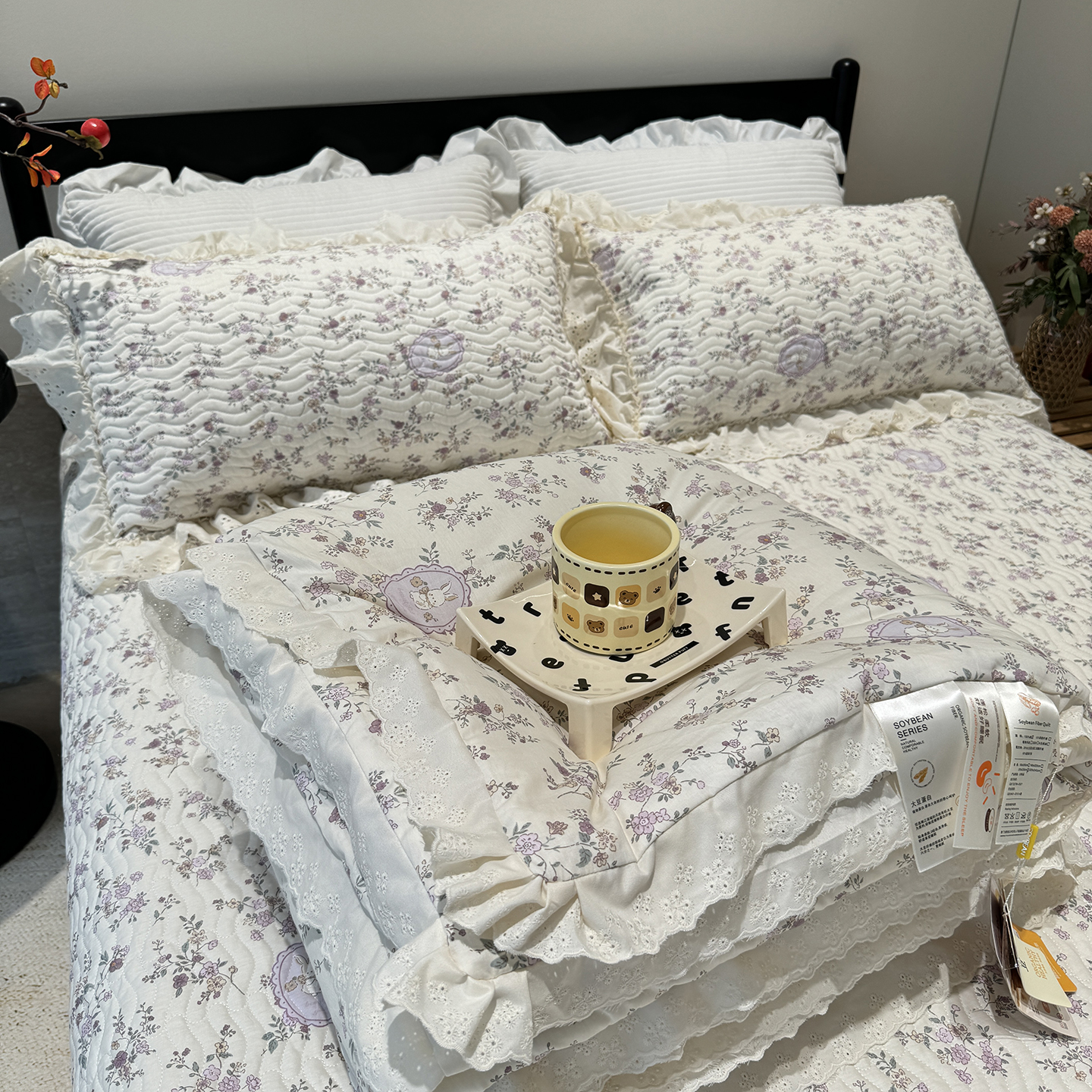 (总)奈萝家纺 2025新款全棉蕾丝花边床盖三件套四件套纯棉花边夏被,呆呆熊,花语绿,花语紫,柠檬,蔷薇,西瓜兔,夏蓝,夏梦,夏之语,小花熊,樱花