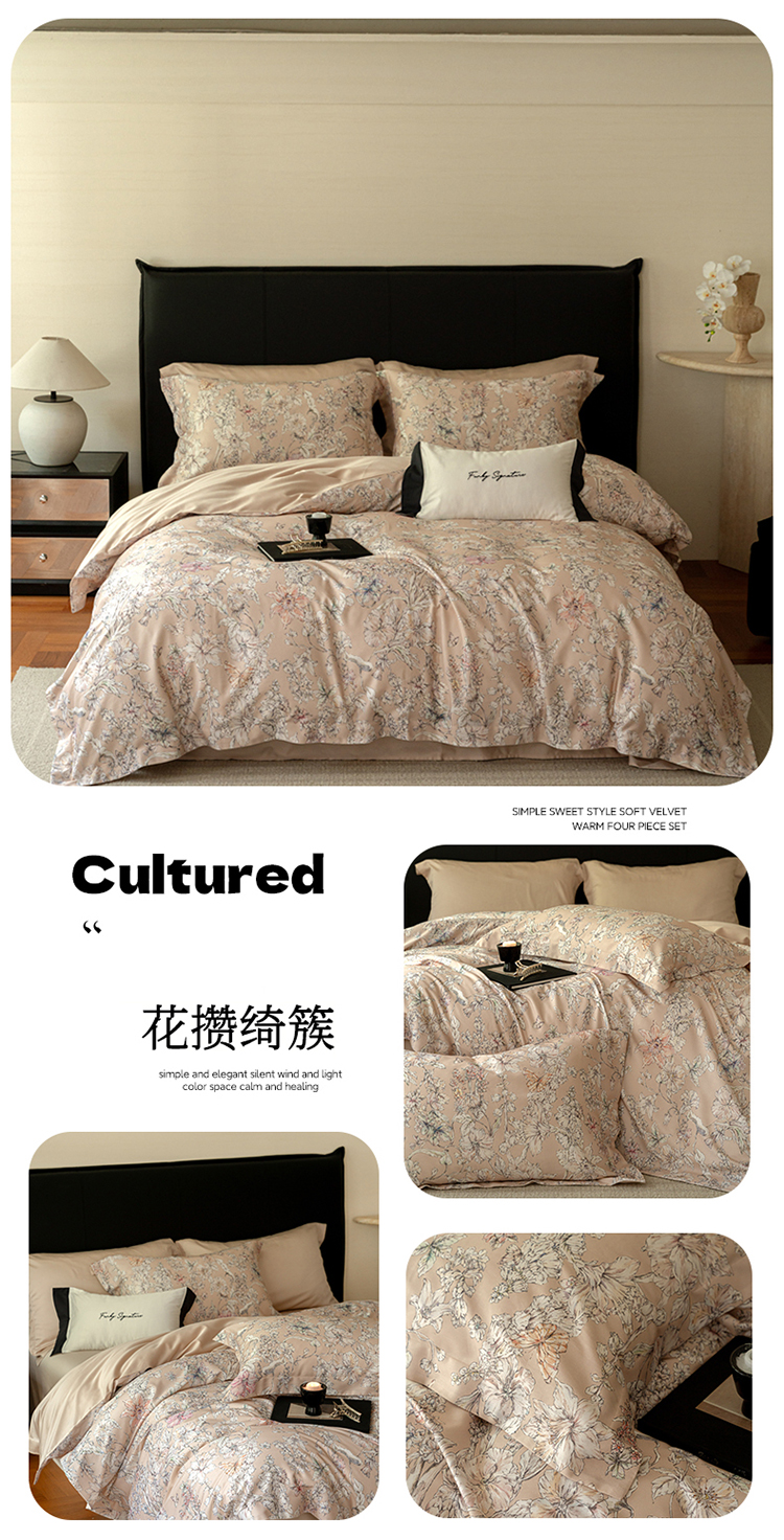 黛舒家居 2025新款天丝棉磨毛花卉四件套 花攒绮簇