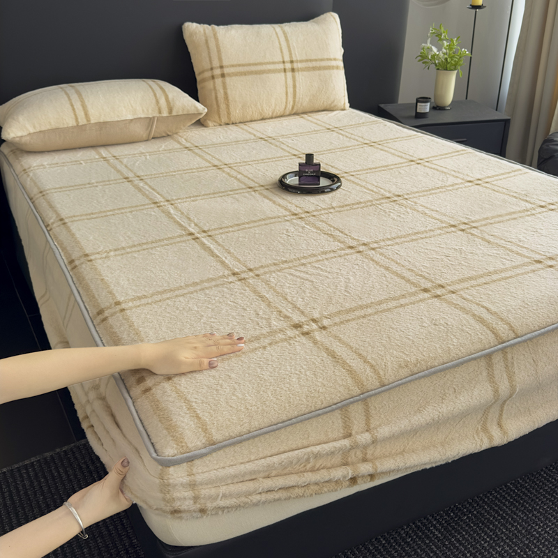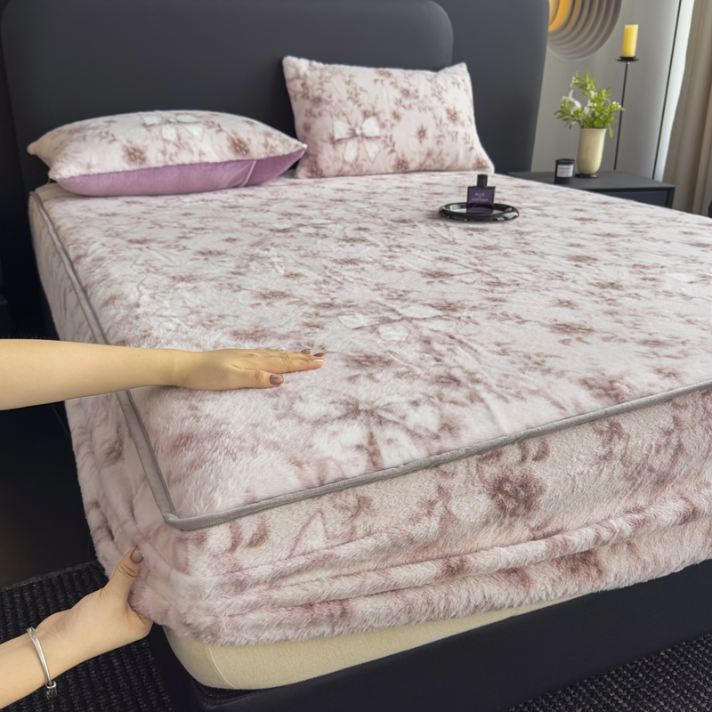 家之硕家纺 2025新款高克重兔毛绒轻奢风床笠系列 波浪灰