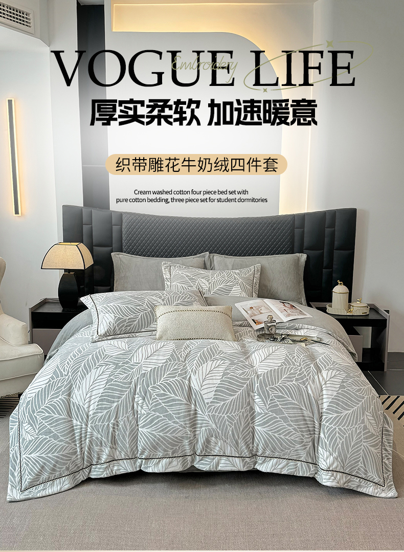 (总)好阁家纺 2025新款轻奢织带雕花牛奶绒四件套,蝴蝶飞飞-粉,蝴蝶飞飞-灰,玫瑰庄园-粉,玫瑰庄园-灰,秘境-粉,秘境-灰,叶叶情深-灰,叶叶情深-卡其