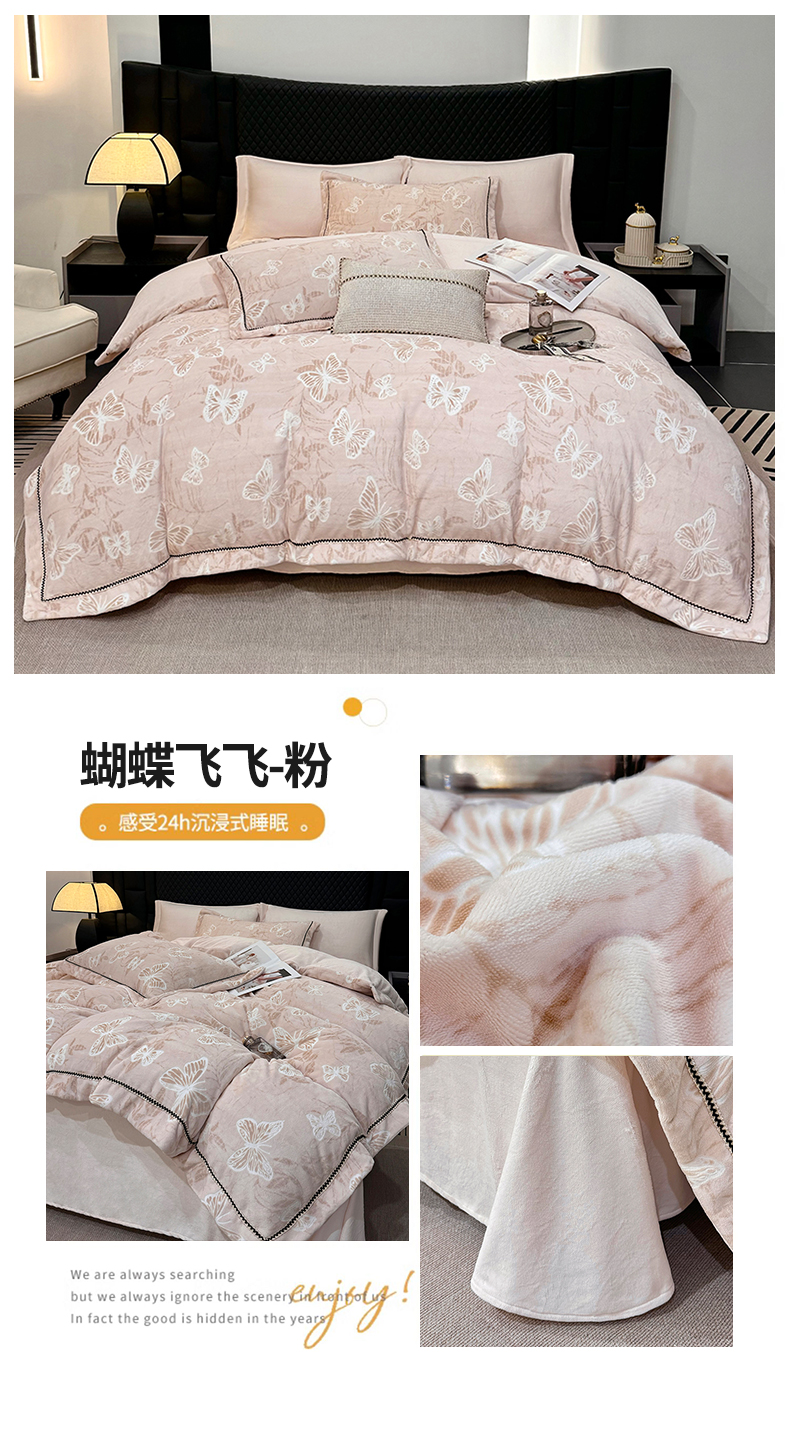 商品名称:好阁家纺 2025新款轻奢织带雕花牛奶绒四件套 蝴蝶飞飞-粉