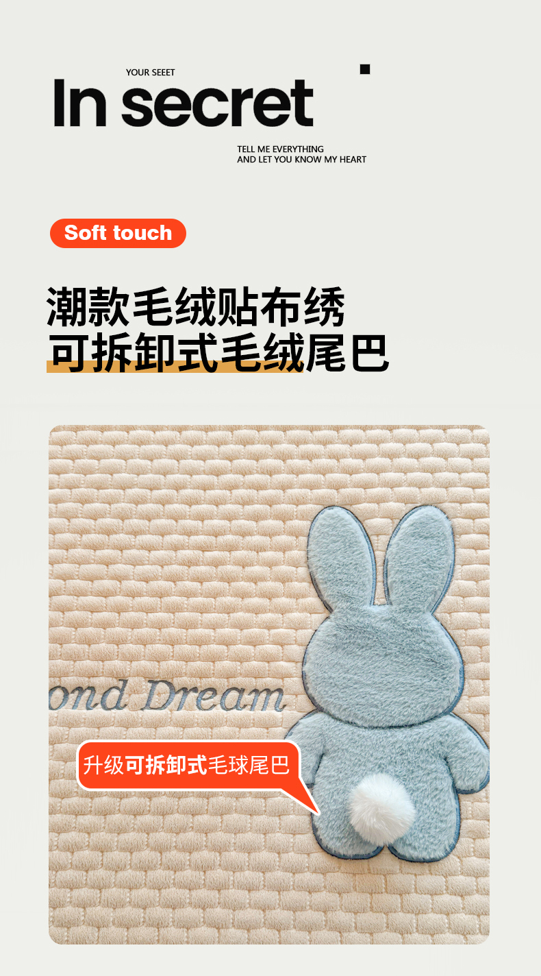 商品名称:(总)爱思凯家纺 2025新款新棉绒床褥-许愿兔(学生款)