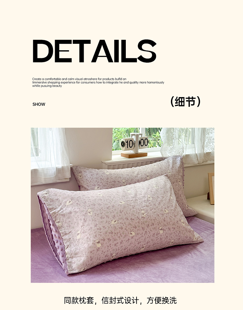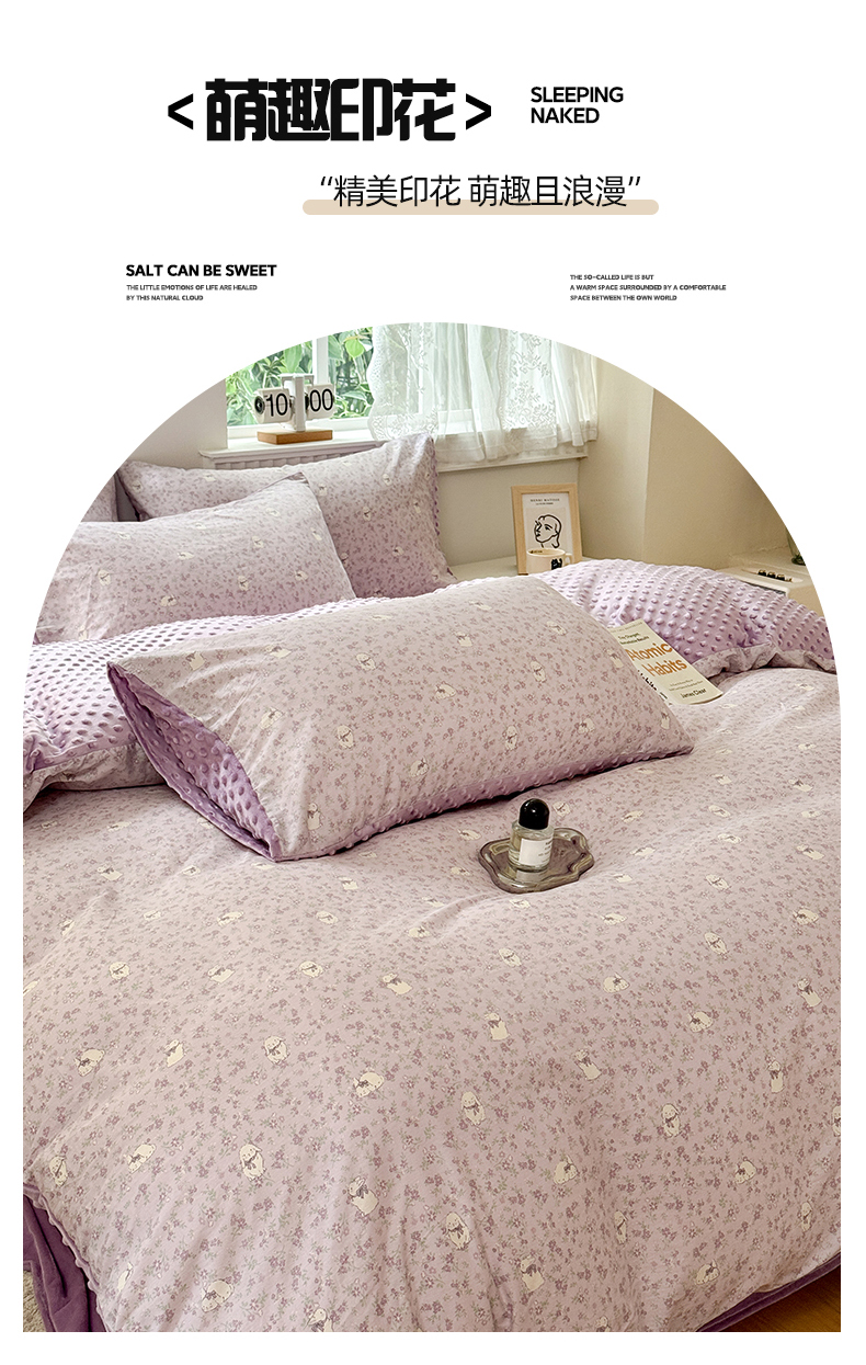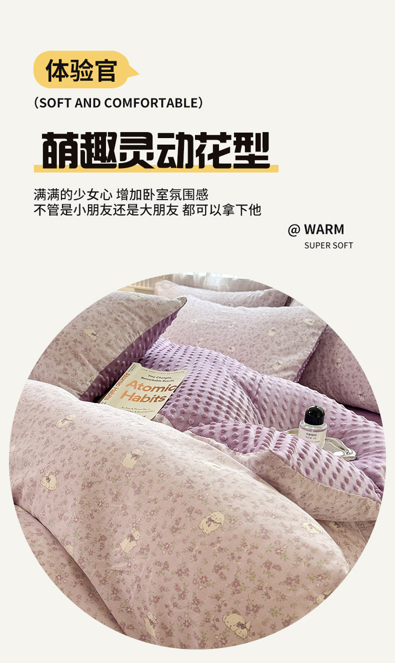 当前位置: 91家纺网 > 商品网购 > 床品套件 > 四件套 > 牛奶绒四件套 > 雯雨家纺 2025新款ab版全棉豆豆绒婴儿绒牛奶绒四件套 摩伊