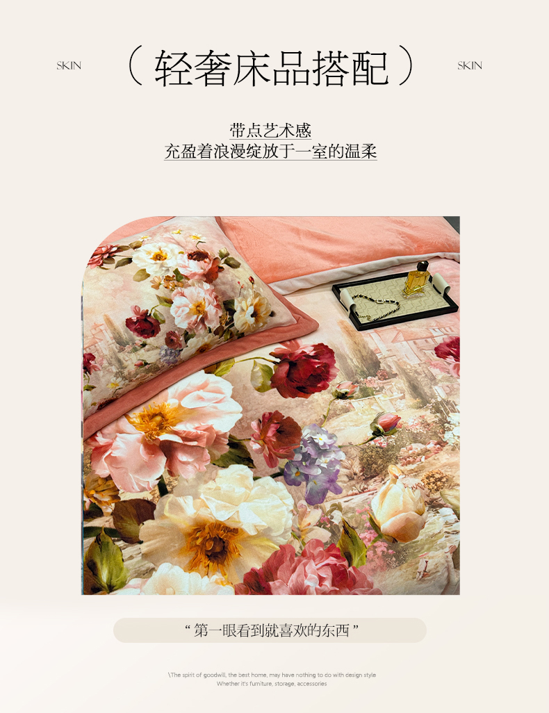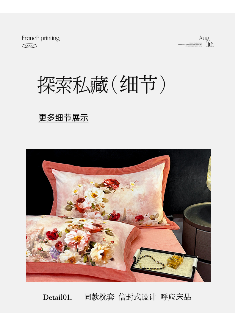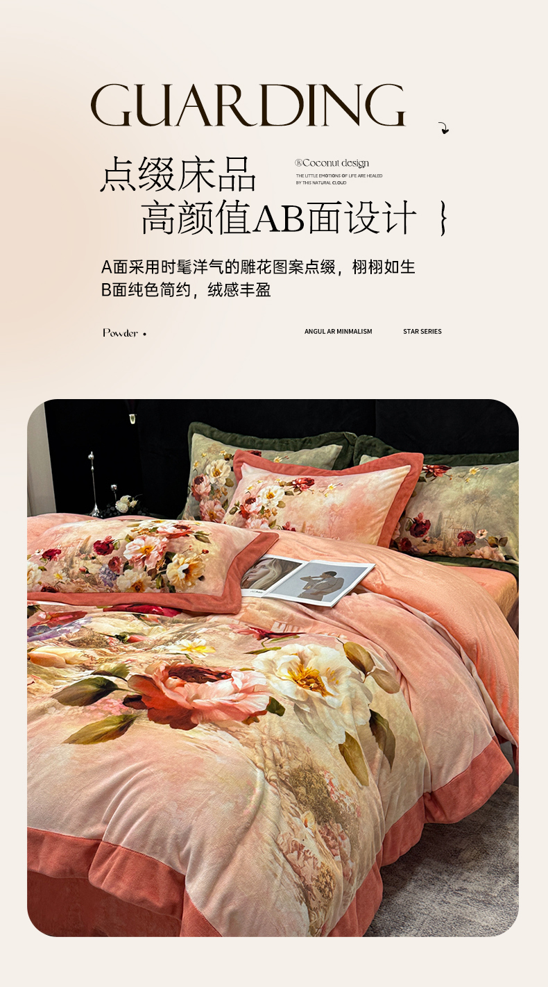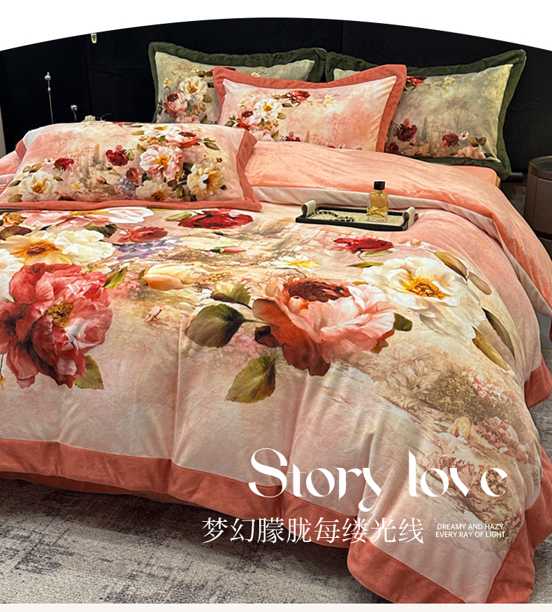 诺梵家纺 2025新款数码印花牛奶绒四件套(控价:159) 玫瑰花园-粉