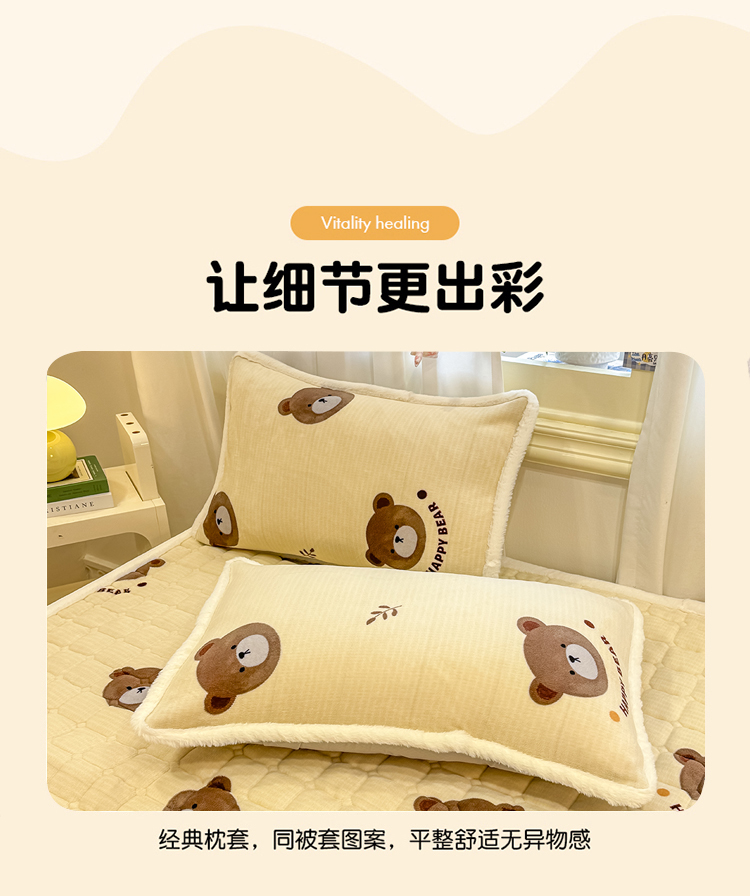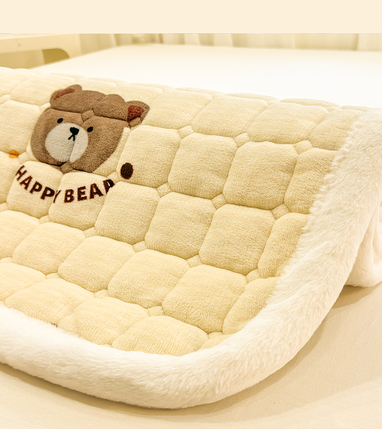 商品名称:梦初语 2025新款牛奶绒印花夹棉加厚款床护垫褥子大床场景-直播爆款(夹棉200克) 唯美小熊