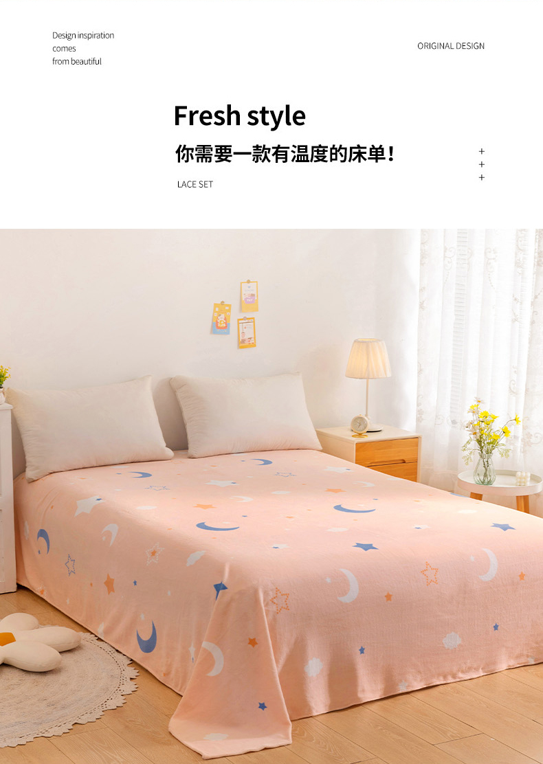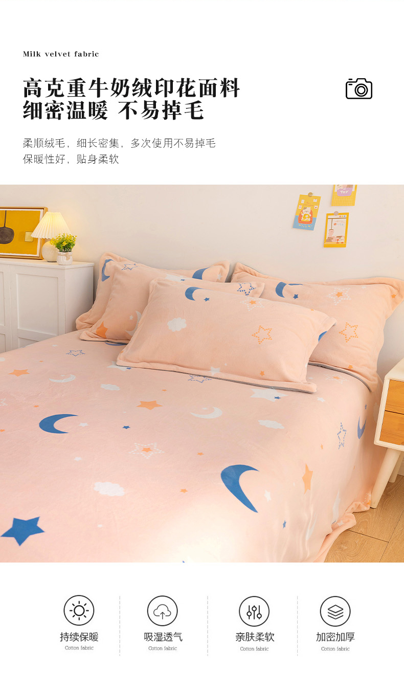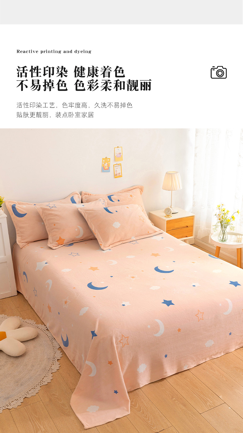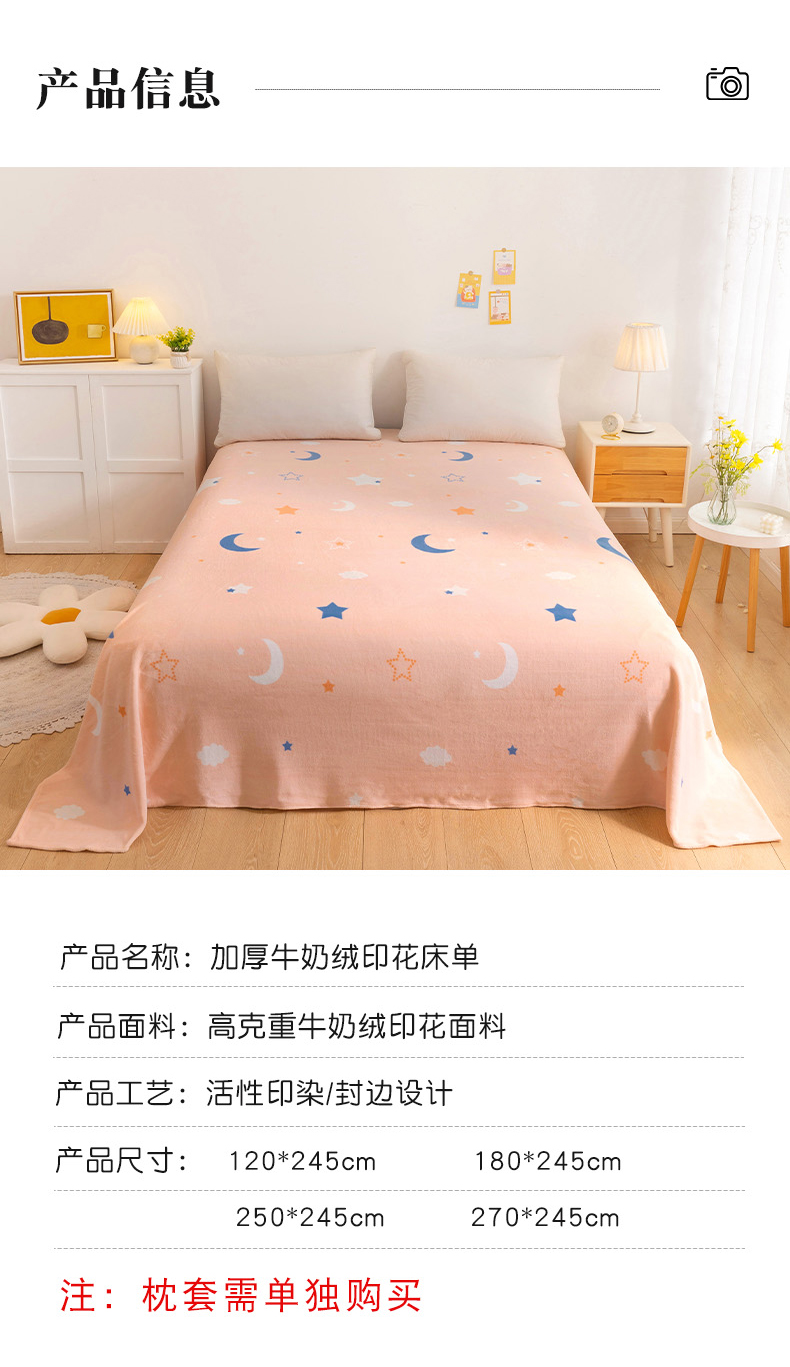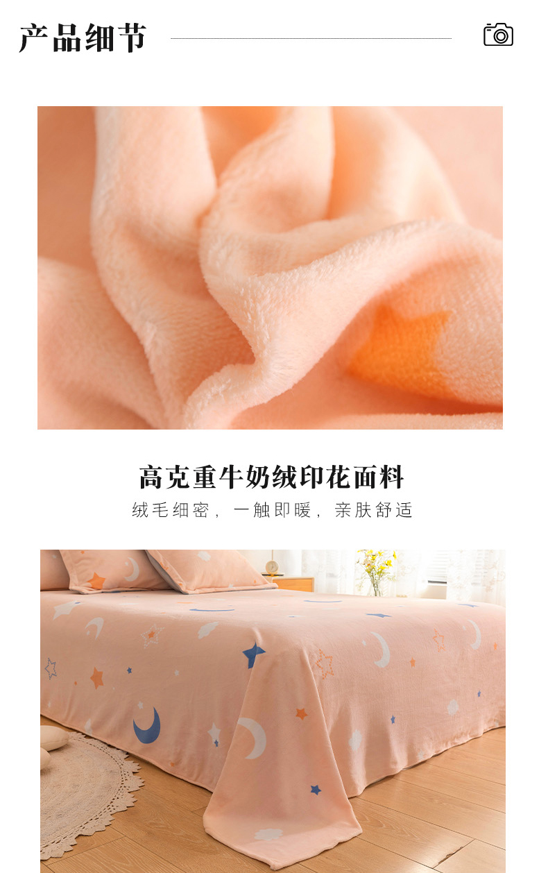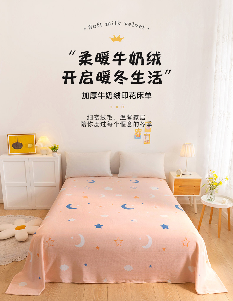 商品名称:金盛纺 2025新款高克重牛奶绒印花系列单床单(可定制) 梦幻星空(粉)