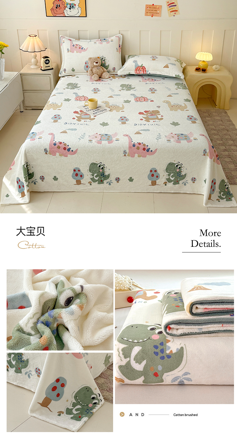 商品名称:金盛纺 2025新款高克重牛奶绒印花系列单床单(可定制) 大宝贝