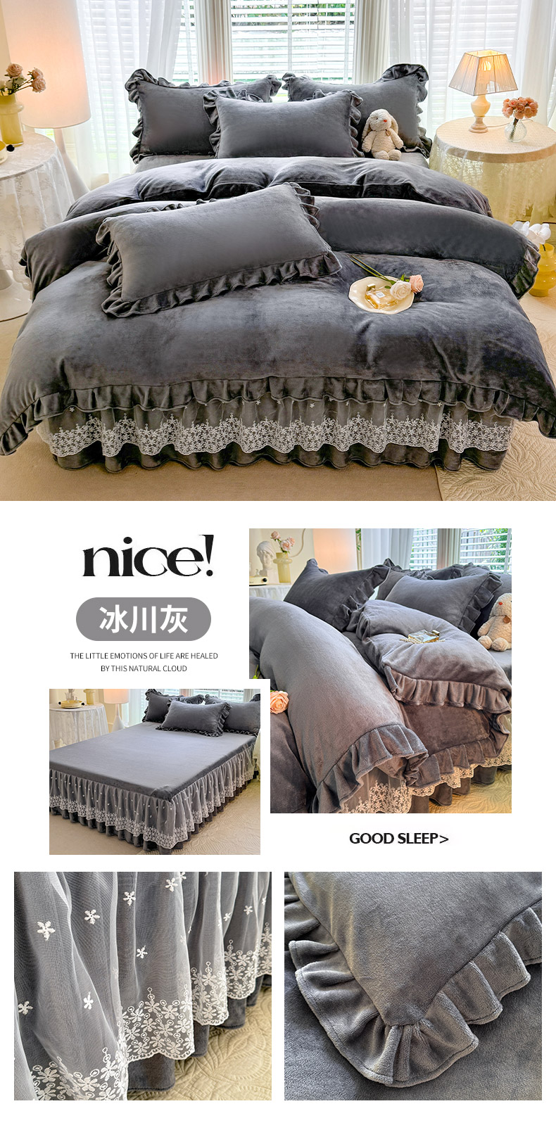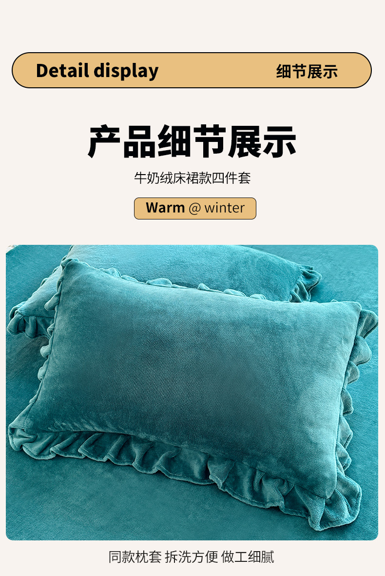 当前位置: 91家纺网 > 商品网购 > 床品套件 > 四件套 > 牛奶绒四件套 > 优家居 2025秋冬高克重牛奶绒床裙款四件套纯色蕾丝边花边刺绣法式公主风床裙款被套 灰湖绿