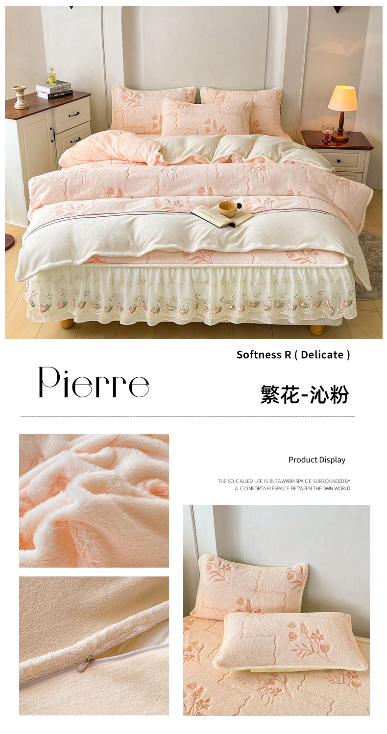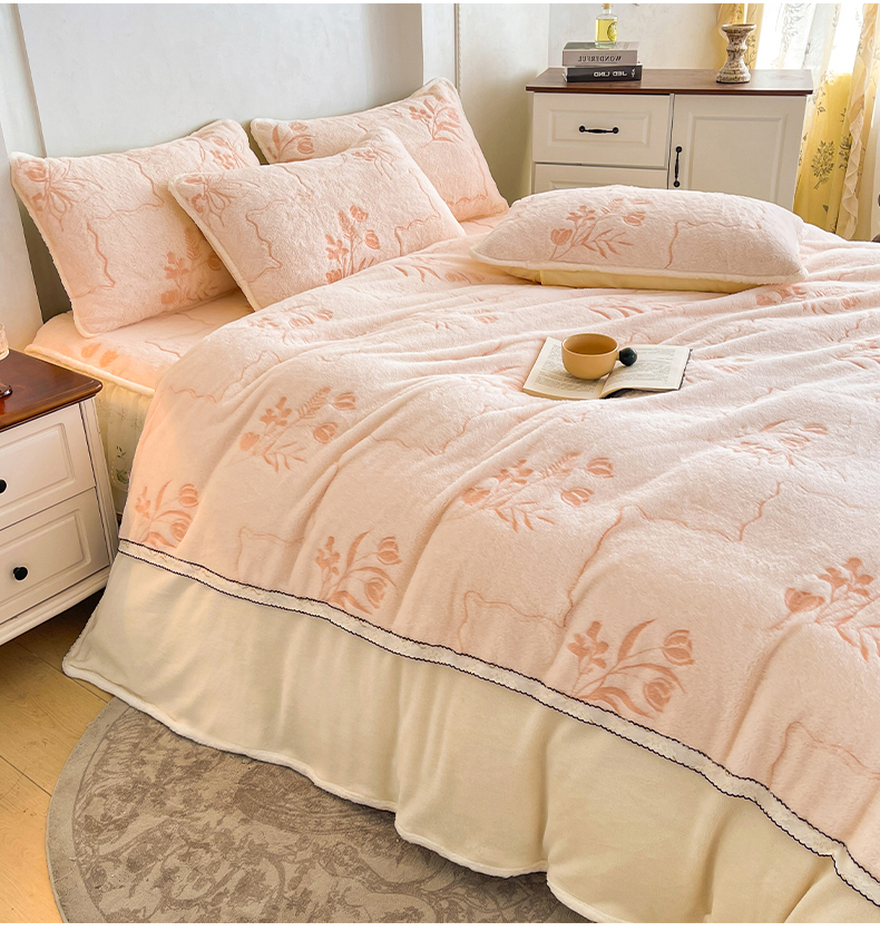 当前位置: 91家纺网 > 商品网购 > 床品套件 > 四件套 > 其它四件套 > 眠势力 2025新款兔毛绒雕花四件套冬季兔兔绒加绒被套床裙款床笠套件带刺绣花边 繁花-霜兰